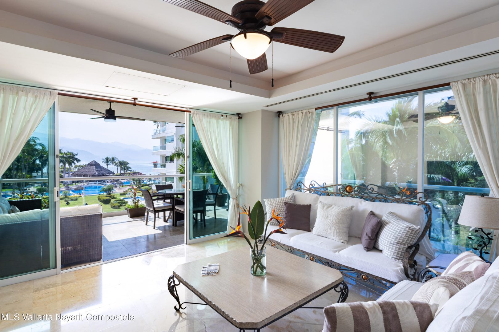 Shangri-La Condominium. Experience luxury coastal living in one of Puerto Vallarta’s most exclusive communities � Shangri-La. This rare 3-bed, 3-bath corner residence offers 237 m� of living-space with spectacular ocean and pool views from its 3rd-floor position. Access the home directly through the private pre-programmed elevator into a beautifully furnished and fully turnkey living area. Resort-style amenities include a huge infinity pool, beachfront gym, tennis & pickleball courts, and a full-service on-site restaurant and bar available to residents and guests. A premier lifestyle property for those seeking comfort, privacy, and exceptional value in Puerto Vallarta.