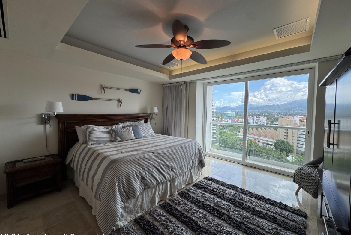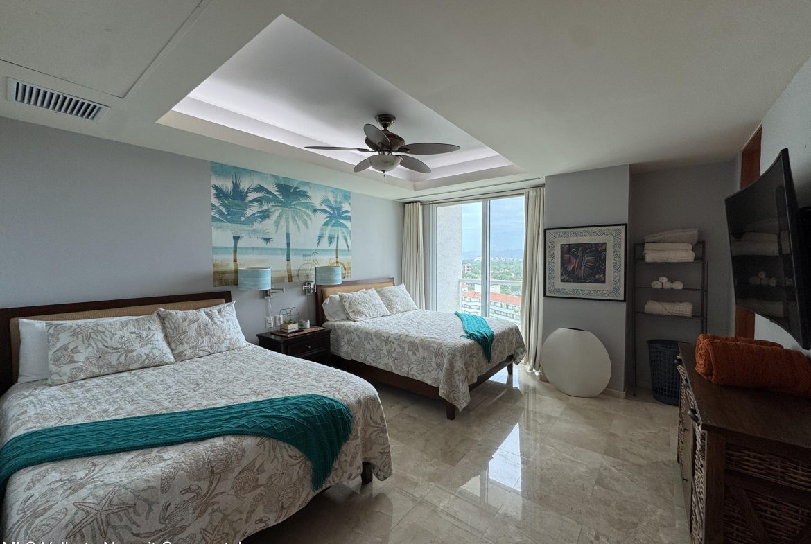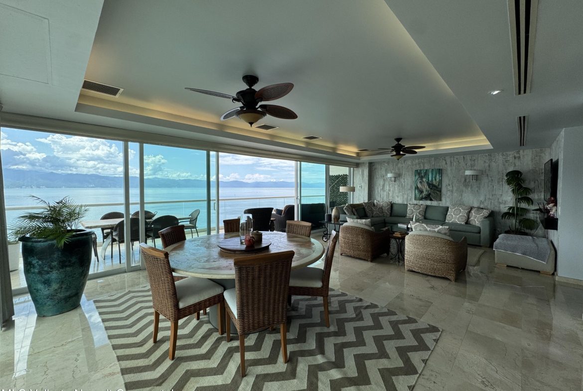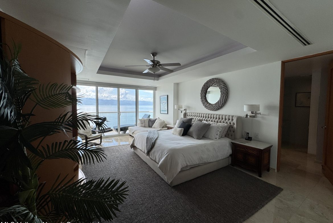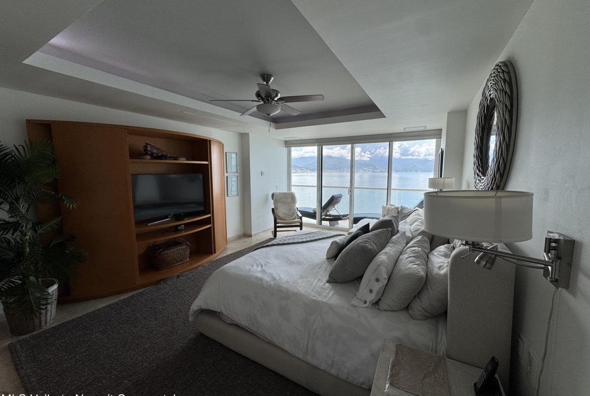 Stunning 4 bed, 4 bath oceanfront condo on the 13th floor of the exclusive Shangri-La development in Puerto Vallarta. Enjoy panoramic views of Banderas Bay from the spacious terrace and floor-to-ceiling windows. This fully furnished unit features a large open living area, modern kitchen, marble floors, and private elevator access. Each bedroom has its own en-suite bath. Resort-style amenities include a beach club, pool, gym, spa, and 24/7 security. Prime location in Marina Vallarta, just minutes from restaurants, shops, golf, and the airport.