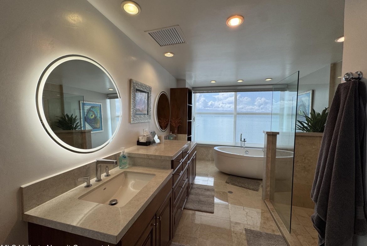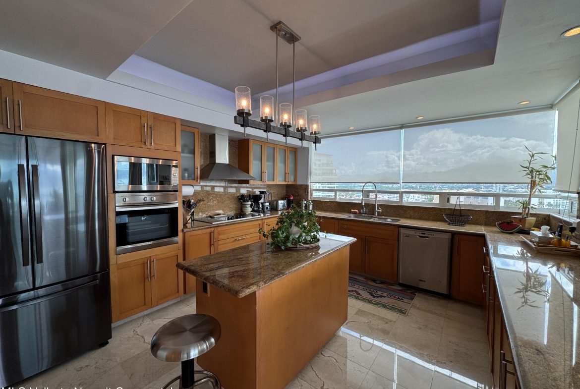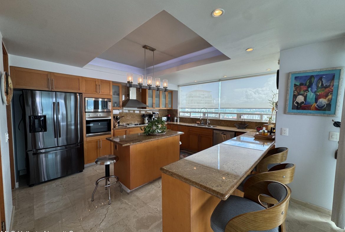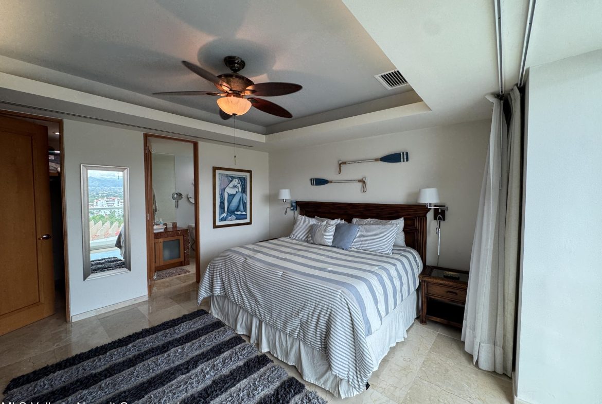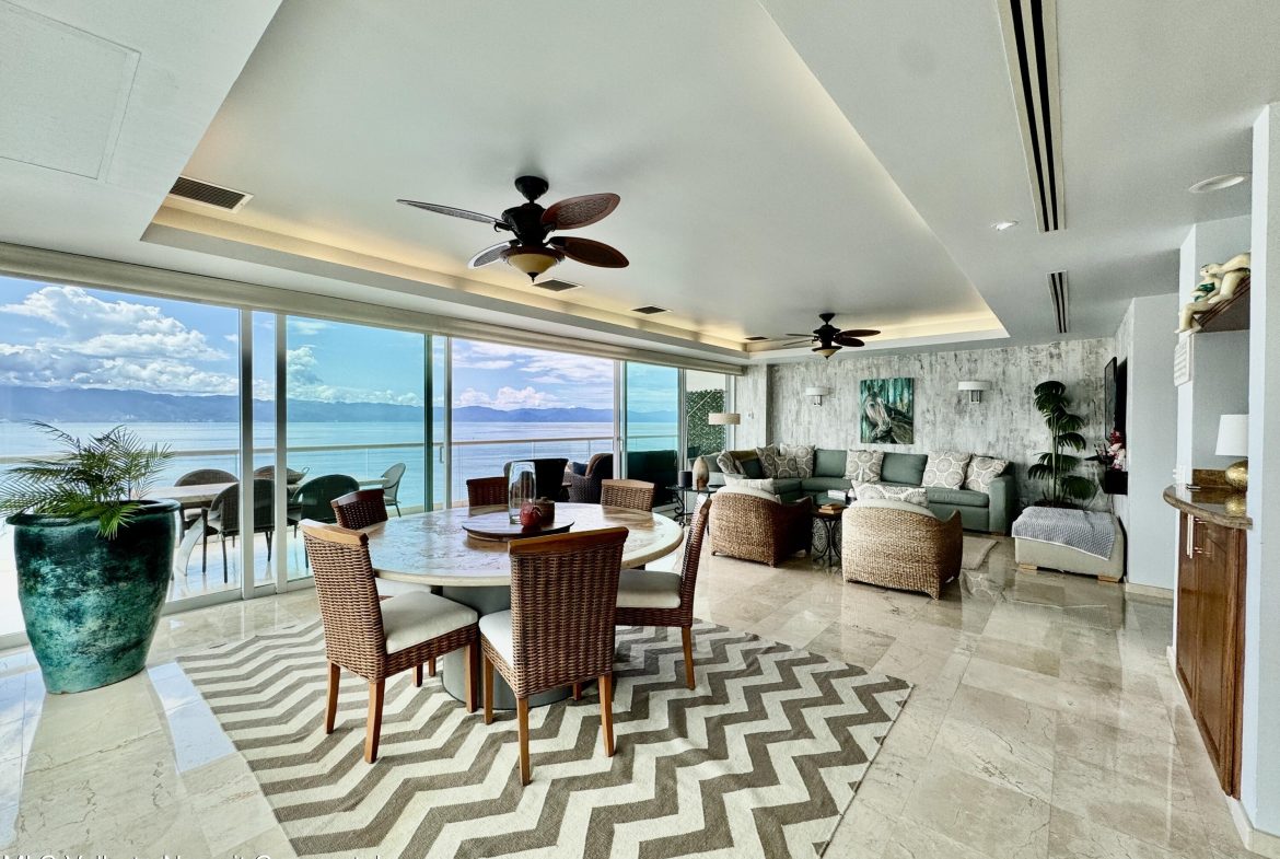 Stunning 4 bed, 4 bath oceanfront condo on the 13th floor of the exclusive Shangri-La development in Puerto Vallarta. Enjoy panoramic views of Banderas Bay from the spacious terrace and floor-to-ceiling windows. This fully furnished unit features a large open living area, modern kitchen, marble floors, and private elevator access. Each bedroom has its own en-suite bath. Resort-style amenities include a beach club, pool, gym, spa, and 24/7 security. Prime location in Marina Vallarta, just minutes from restaurants, shops, golf, and the airport.