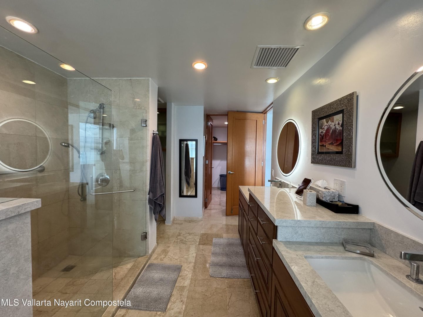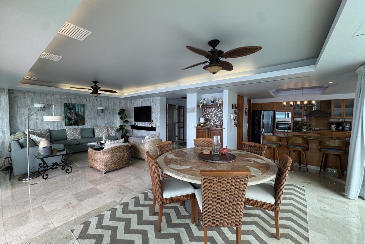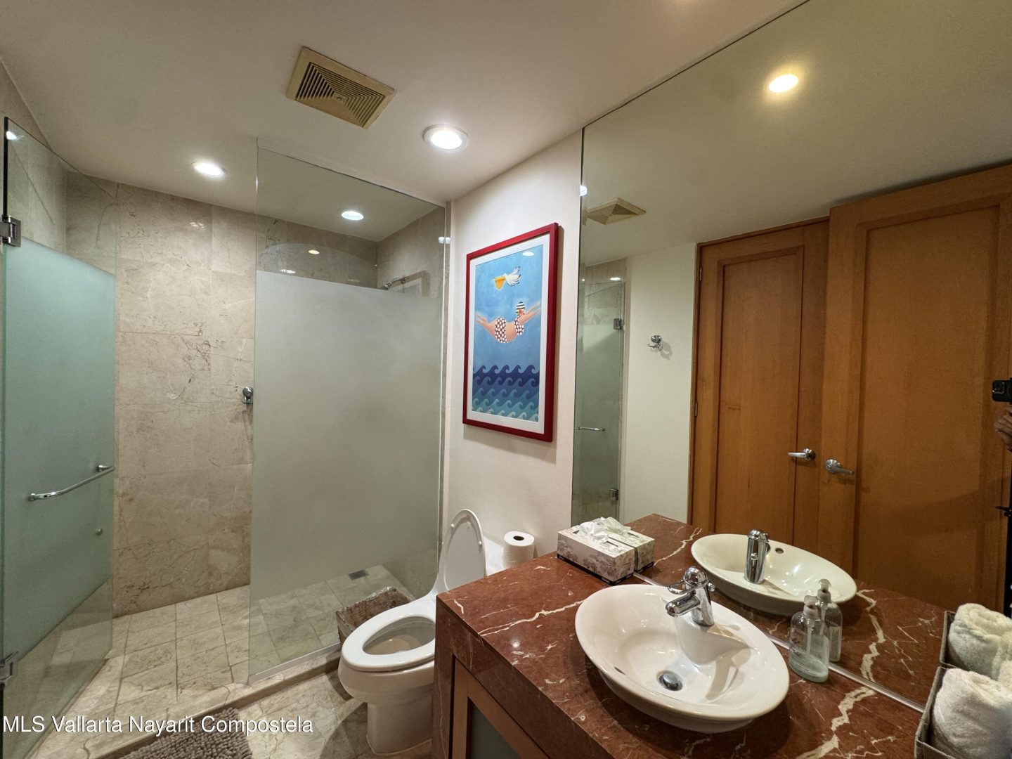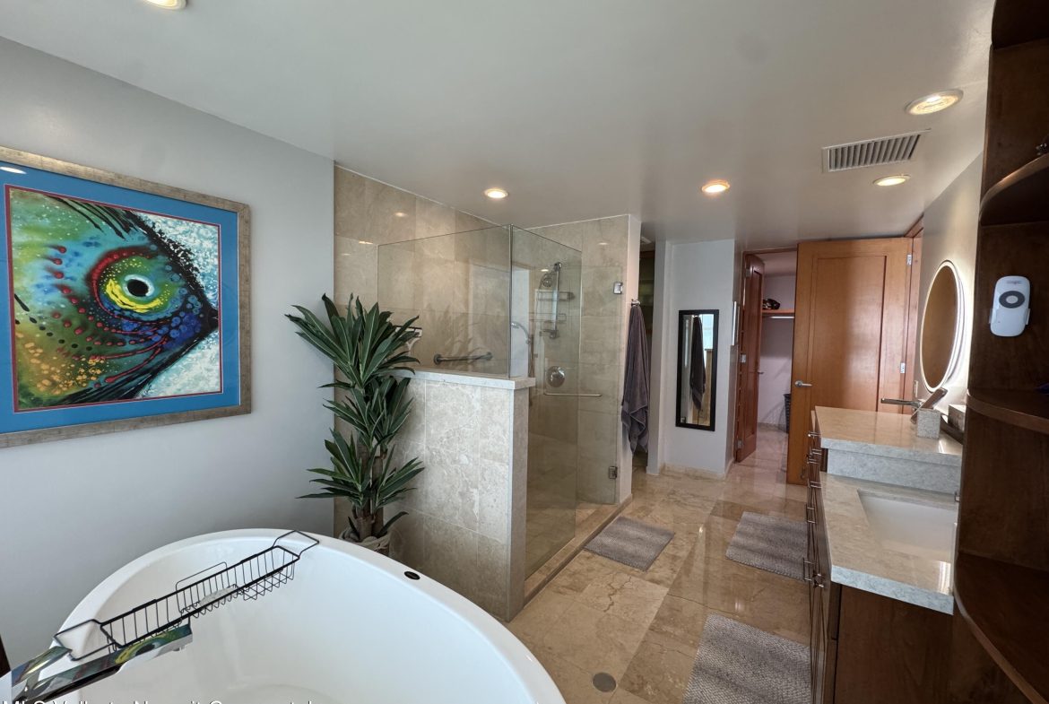 Stunning 4 bed, 4 bath oceanfront condo on the 13th floor of the exclusive Shangri-La development in Puerto Vallarta. Enjoy panoramic views of Banderas Bay from the spacious terrace and floor-to-ceiling windows. This fully furnished unit features a large open living area, modern kitchen, marble floors, and private elevator access. Each bedroom has its own en-suite bath. Resort-style amenities include a beach club, pool, gym, spa, and 24/7 security. Prime location in Marina Vallarta, just minutes from restaurants, shops, golf, and the airport.