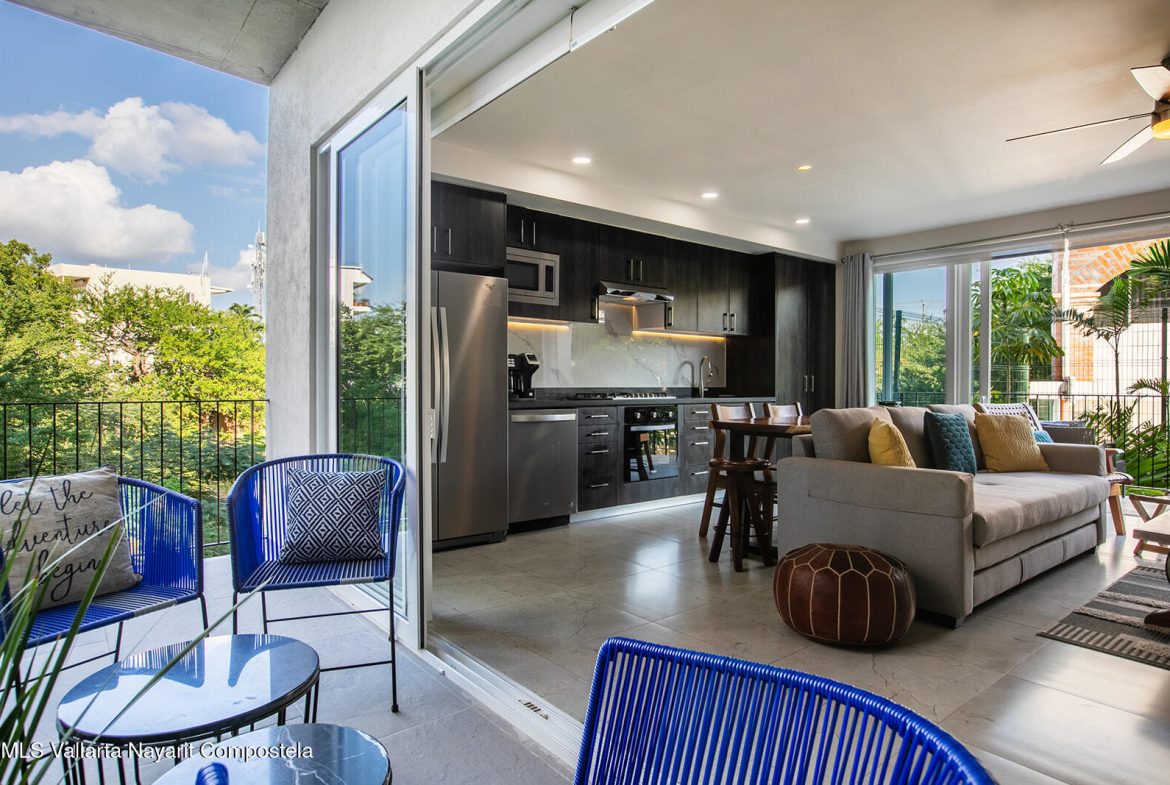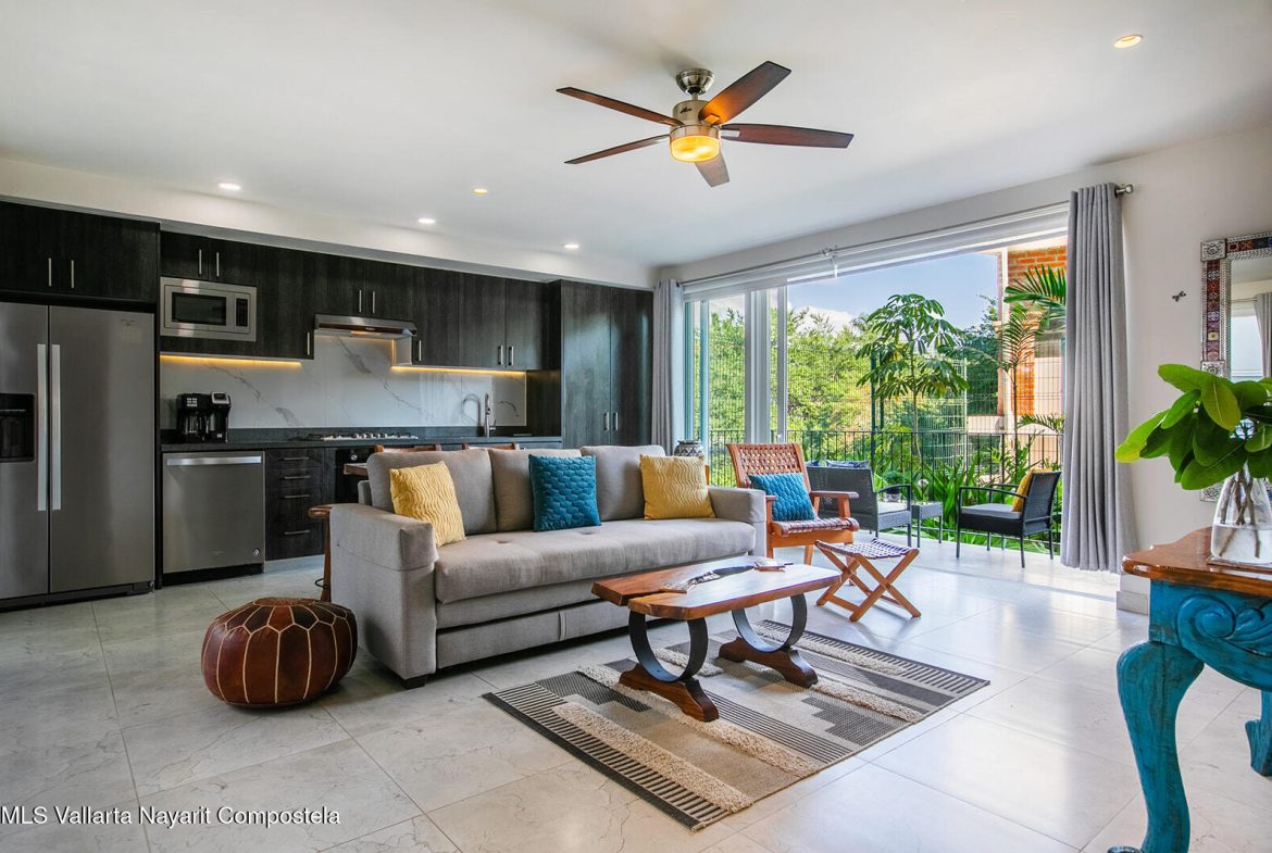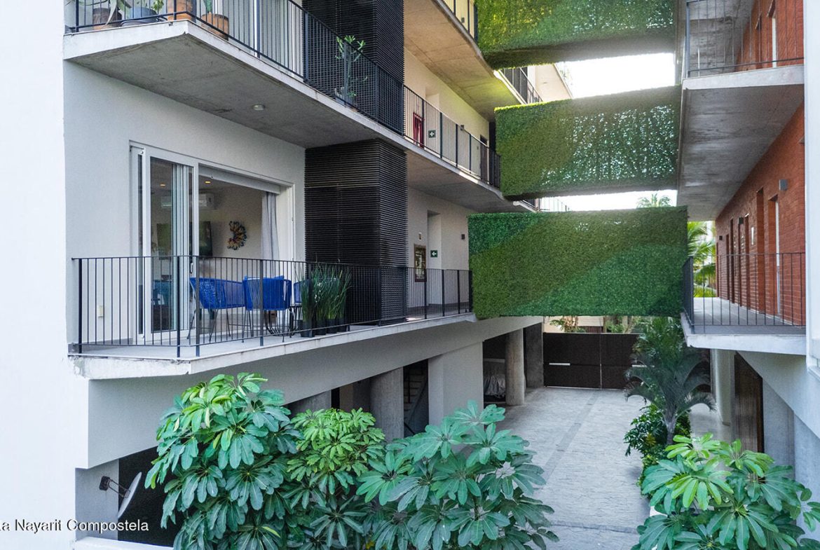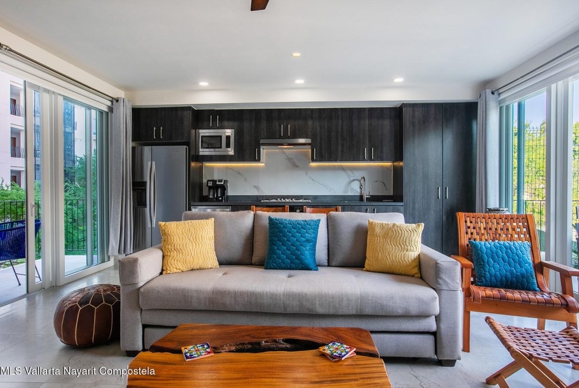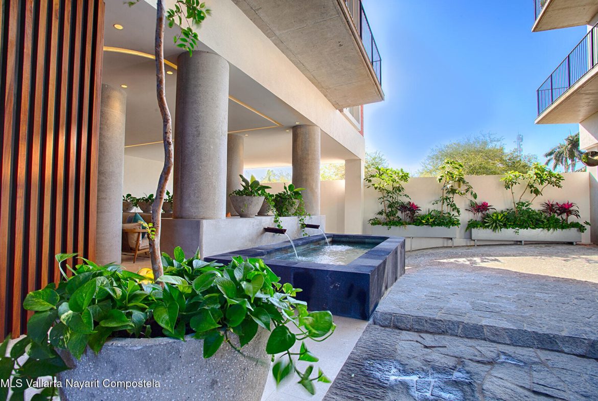 Just two blocks from the long sandy beach in the heart of the Zona Dorada, this beautifully appointed condo is located in the highly sought-after Pacifica Bucerias Residences, known for its iconic rooftop pool and panoramic views.This spacious unit with a peaceful and lush garden setting, features three balconies offering year-round breezes. Quality finishes and comfort in every corner, it has a thoughtful layout with abundant natural light. Both very large bedrooms have en-suite bathrooms. It’s well-furnished and fully equipped with all window covering and many accesories–move-in ready and ideal for both full-time living and high-performing rentals! Added comforts include in-suite laundry and an excellent oversized locker for valuable storage. A great gym is another valuable amenity.