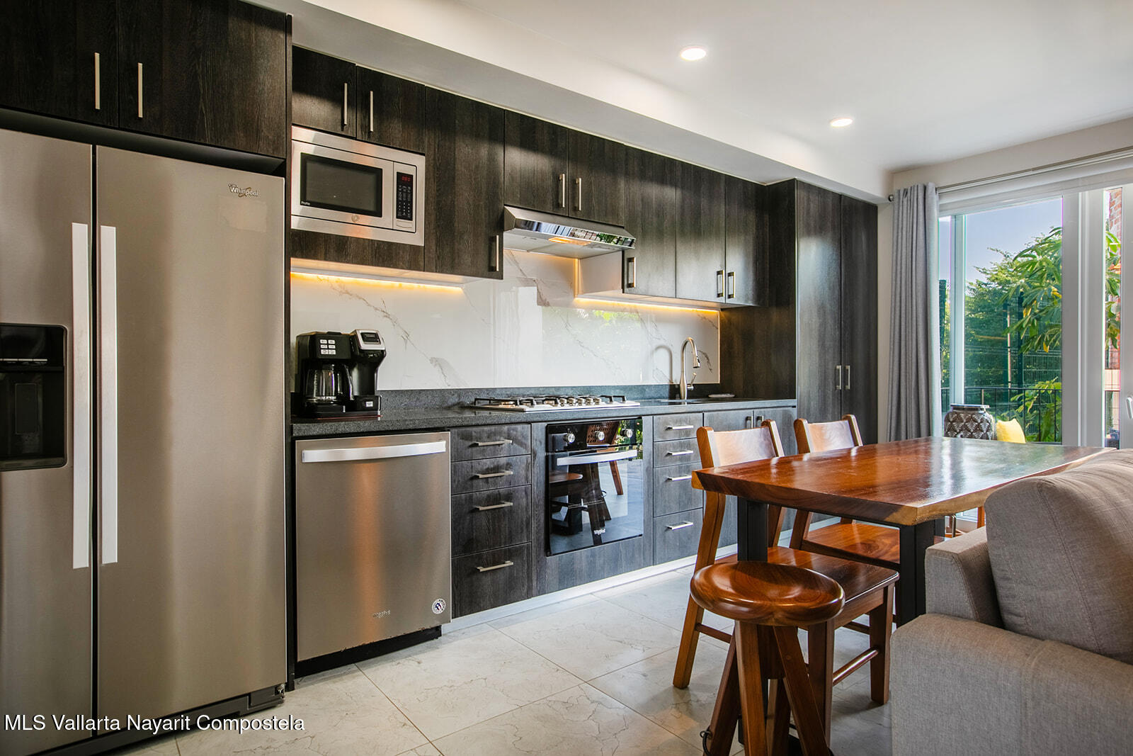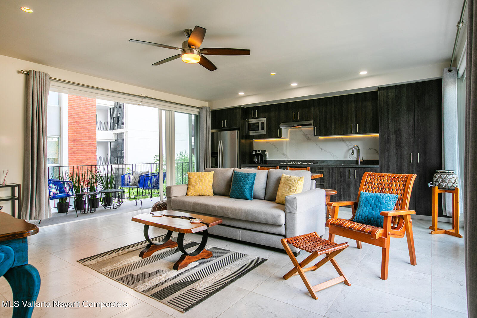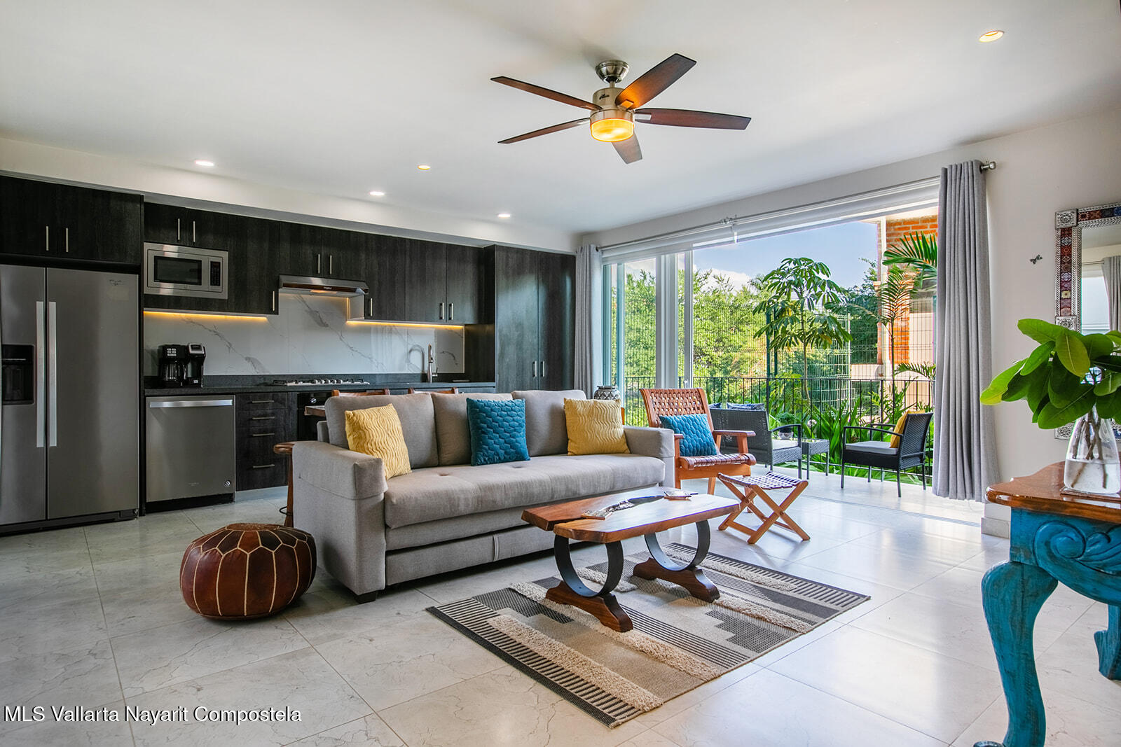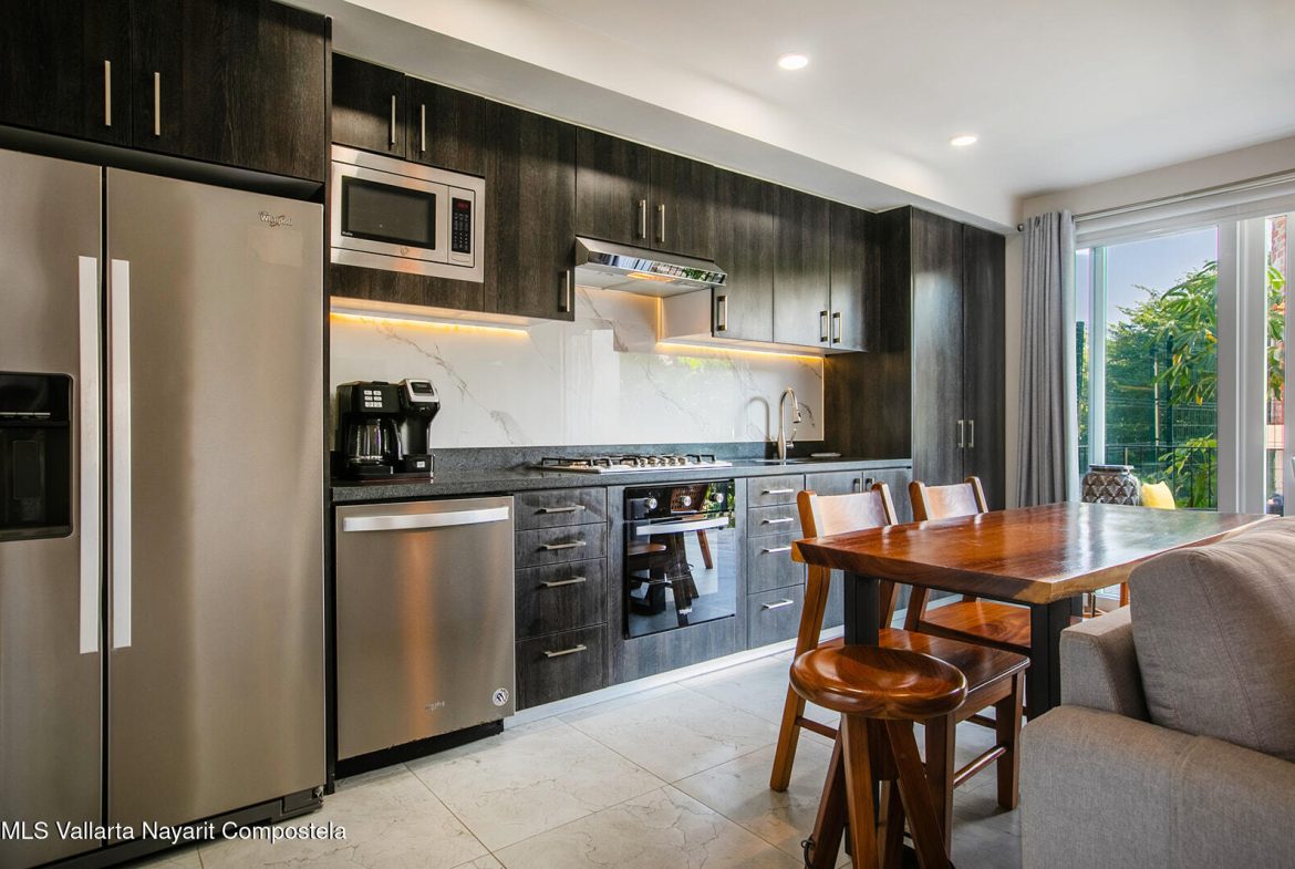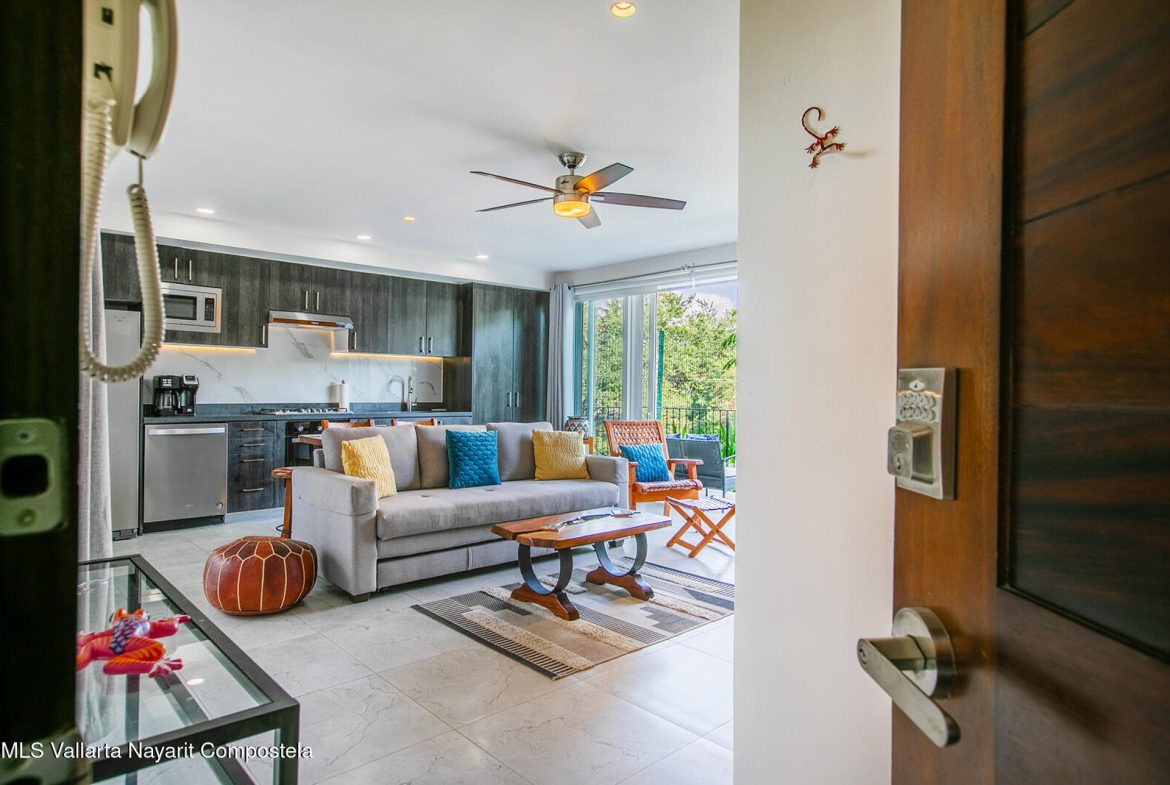 Just two blocks from the long sandy beach in the heart of the Zona Dorada, this beautifully appointed condo is located in the highly sought-after Pacifica Bucerias Residences, known for its iconic rooftop pool and panoramic views.This spacious unit with a peaceful and lush garden setting, features three balconies offering year-round breezes. Quality finishes and comfort in every corner, it has a thoughtful layout with abundant natural light. Both very large bedrooms have en-suite bathrooms. It’s well-furnished and fully equipped with all window covering and many accesories–move-in ready and ideal for both full-time living and high-performing rentals! Added comforts include in-suite laundry and an excellent oversized locker for valuable storage. A great gym is another valuable amenity.