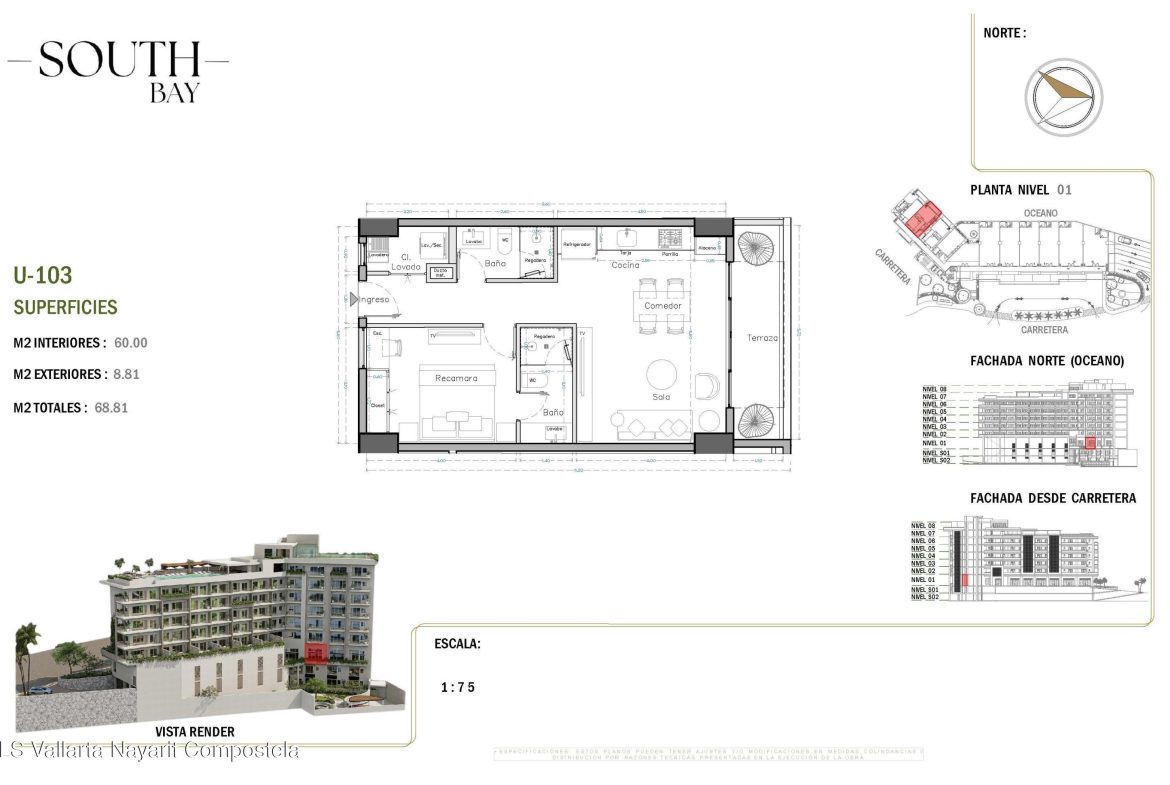 South Bay es un nuevo y exclusivo desarrollo ubicado en el corazon de la Zona Romantica, a pocos pasos de playas, restaurantes, galerias y vida nocturna. El proyecto contara con 65 condominios con vistas y en diversas configuraciones: unidades de 1 recamara, 1 recamara + flex, 1 recamara + den y 2 recamaras, todas con 2 banos completos. Con amenidades de primer nivel que incluyen:*Estacionamiento y bodegas disponibles para la mayoria de las unidades (con costo extra)*Alberca con vistas panoramicas en la azotea con terraza para asolearse*Gimnasio, area para mascotas y cancha de padel unica en la zona*Elevadores, acceso controlado y elegante lobbyUbicado sobre una via principal, South Bay combina accesibilidad, amenidades modernas y estilo de vida, siendo