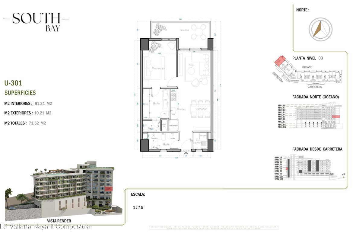 South Bay es un nuevo y exclusivo desarrollo ubicado en el corazon de la Zona Romantica, a pocos pasos de playas, restaurantes, galerias y vida nocturna. El proyecto contara con 65 condominios con vistas y en diversas configuraciones: unidades de 1 recamara, 1 recamara + flex, 1 recamara + den y 2 recamaras, todas con 2 banos completos. Con amenidades de primer nivel que incluyen:*Estacionamiento y bodegas disponibles para la mayoria de las unidades (con costo extra)*Alberca con vistas panoramicas en la azotea con terraza para asolearse*Gimnasio, area para mascotas y cancha de padel unica en la zona*Elevadores, acceso controlado y elegante lobbyUbicado sobre una via principal, South Bay combina accesibilidad, amenidades modernas y estilo de vida, siendo