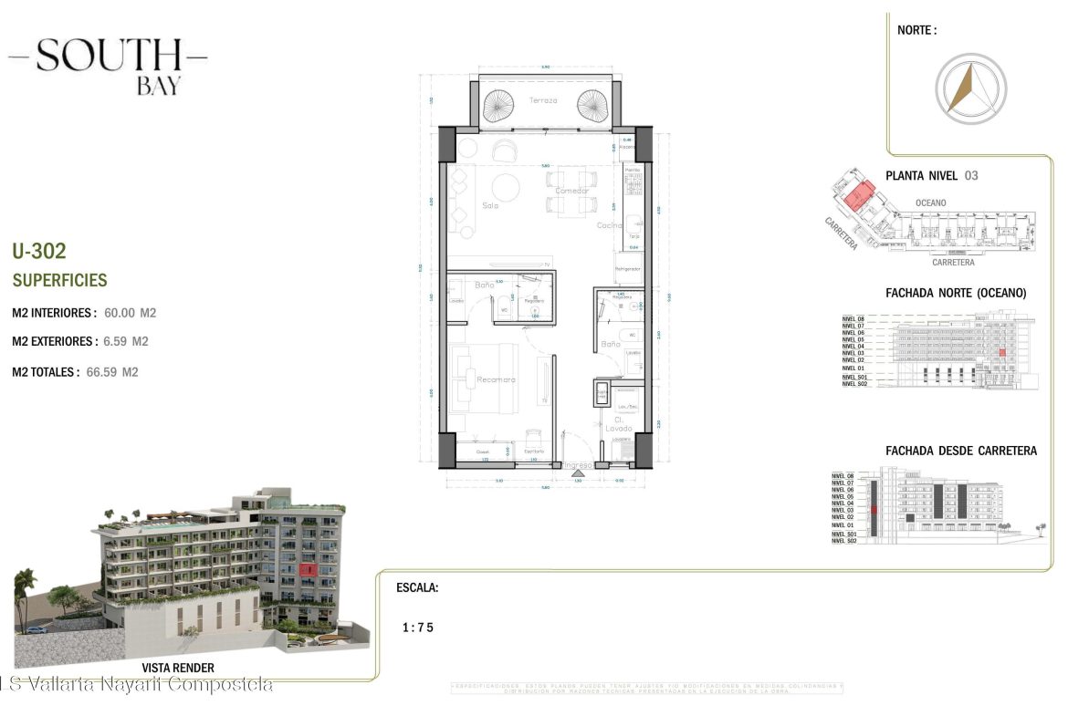 South Bay es un nuevo y exclusivo desarrollo ubicado en el corazon de la Zona Romantica, a pocos pasos de playas, restaurantes, galerias y vida nocturna. El proyecto contara con 65 condominios con vistas y en diversas configuraciones: unidades de 1 recamara, 1 recamara + flex, 1 recamara + den y 2 recamaras, todas con 2 banos completos. Con amenidades de primer nivel que incluyen:*Estacionamiento y bodegas disponibles para la mayoria de las unidades (con costo extra)*Alberca con vistas panoramicas en la azotea con terraza para asolearse*Gimnasio, area para mascotas y cancha de padel unica en la zona*Elevadores, acceso controlado y elegante lobbyUbicado sobre una via principal, South Bay combina accesibilidad, amenidades modernas y estilo de vida, siendo