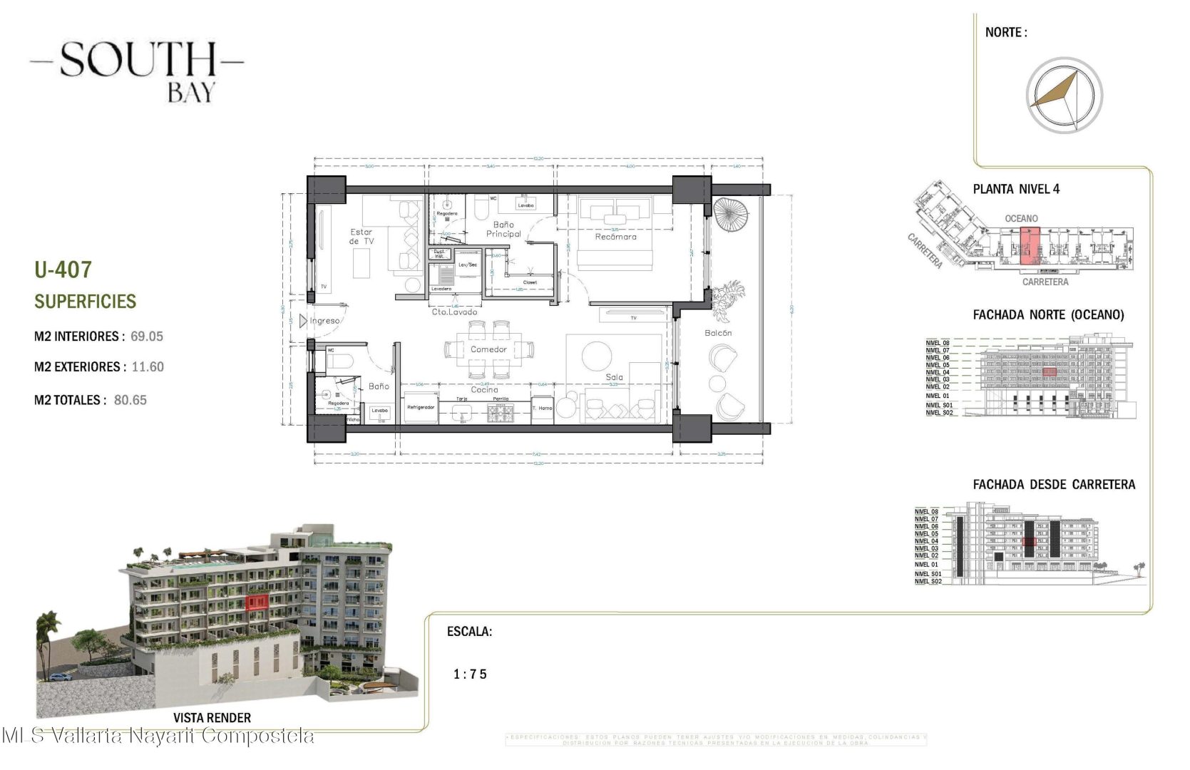 South Bay es un nuevo y exclusivo desarrollo ubicado en el corazon de la Zona Romantica, a pocos pasos de playas, restaurantes, galerias y vida nocturna. El proyecto contara con 65 condominios con vistas y en diversas configuraciones: unidades de 1 recamara, 1 recamara + flex, 1 recamara + den y 2 recamaras, todas con 2 banos completos. Con amenidades de primer nivel que incluyen:*Estacionamiento y bodegas disponibles para la mayoria de las unidades (con costo extra)*Alberca con vistas panoramicas en la azotea con terraza para asolearse*Gimnasio, area para mascotas y cancha de padel unica en la zona*Elevadores, acceso controlado y elegante lobbyUbicado sobre una via principal, South Bay combina accesibilidad, amenidades modernas y estilo de vida, siendo