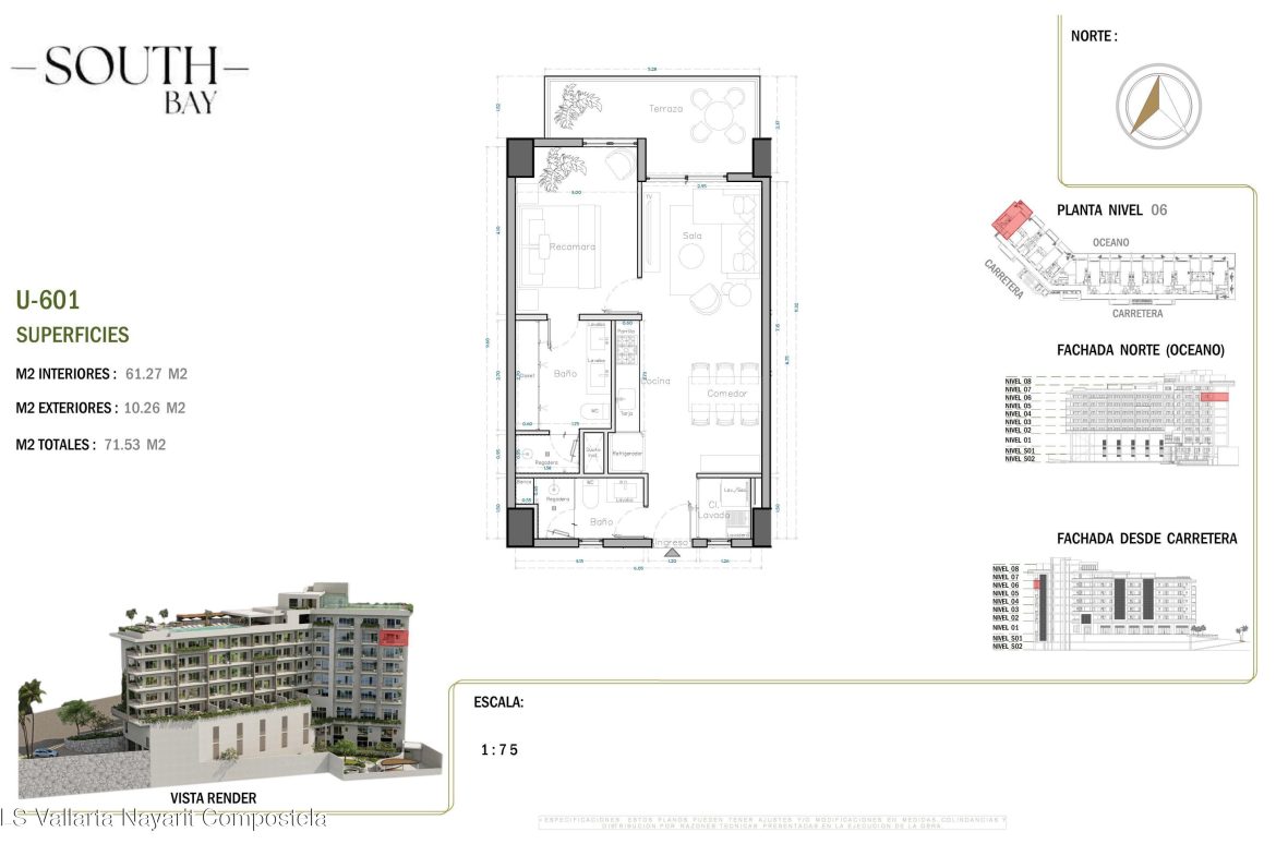 South Bay es un nuevo y exclusivo desarrollo ubicado en el corazon de la Zona Romantica, a pocos pasos de playas, restaurantes, galerias y vida nocturna. El proyecto contara con 65 condominios con vistas y en diversas configuraciones: unidades de 1 recamara, 1 recamara + flex, 1 recamara + den y 2 recamaras, todas con 2 banos completos. Con amenidades de primer nivel que incluyen:*Estacionamiento y bodegas disponibles para la mayoria de las unidades (con costo extra)*Alberca con vistas panoramicas en la azotea con terraza para asolearse*Gimnasio, area para mascotas y cancha de padel unica en la zona*Elevadores, acceso controlado y elegante lobbyUbicado sobre una via principal, South Bay combina accesibilidad, amenidades modernas y estilo de vida, siendo