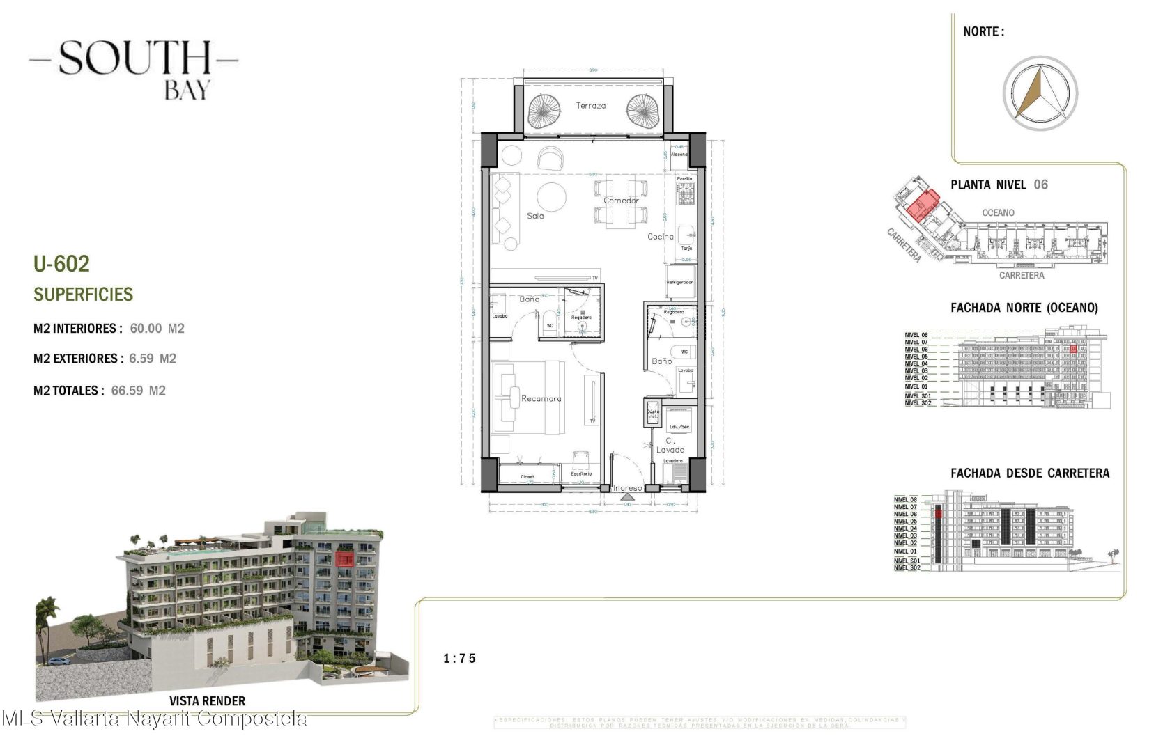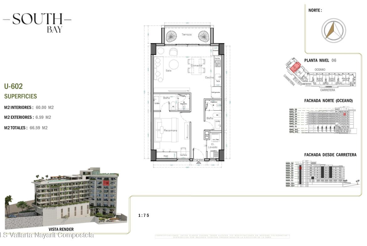 South Bay es un nuevo y exclusivo desarrollo ubicado en el corazon de la Zona Romantica, a pocos pasos de playas, restaurantes, galerias y vida nocturna. El proyecto contara con 65 condominios con vistas y en diversas configuraciones: unidades de 1 recamara, 1 recamara + flex, 1 recamara + den y 2 recamaras, todas con 2 banos completos. Con amenidades de primer nivel que incluyen:*Estacionamiento y bodegas disponibles para la mayoria de las unidades (con costo extra)*Alberca con vistas panoramicas en la azotea con terraza para asolearse*Gimnasio, area para mascotas y cancha de padel unica en la zona*Elevadores, acceso controlado y elegante lobbyUbicado sobre una via principal, South Bay combina accesibilidad, amenidades modernas y estilo de vida, siendo