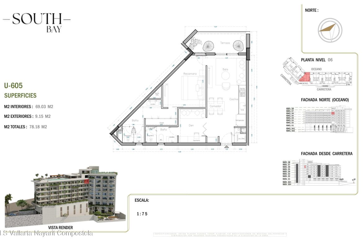 South Bay es un nuevo y exclusivo desarrollo ubicado en el corazon de la Zona Romantica, a pocos pasos de playas, restaurantes, galerias y vida nocturna. El proyecto contara con 65 condominios con vistas y en diversas configuraciones: unidades de 1 recamara, 1 recamara + flex, 1 recamara + den y 2 recamaras, todas con 2 banos completos. Con amenidades de primer nivel que incluyen:*Estacionamiento y bodegas disponibles para la mayoria de las unidades (con costo extra)*Alberca con vistas panoramicas en la azotea con terraza para asolearse*Gimnasio, area para mascotas y cancha de padel unica en la zona*Elevadores, acceso controlado y elegante lobbyUbicado sobre una via principal, South Bay combina accesibilidad, amenidades modernas y estilo de vida, siendo