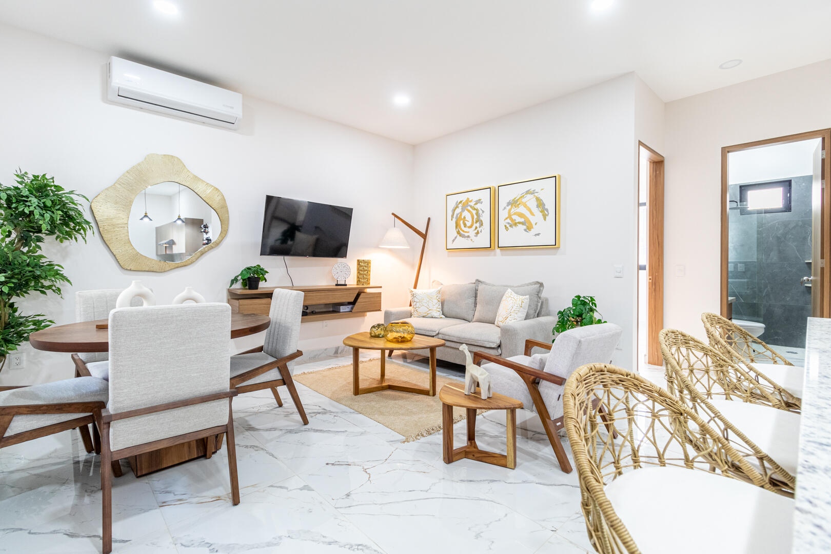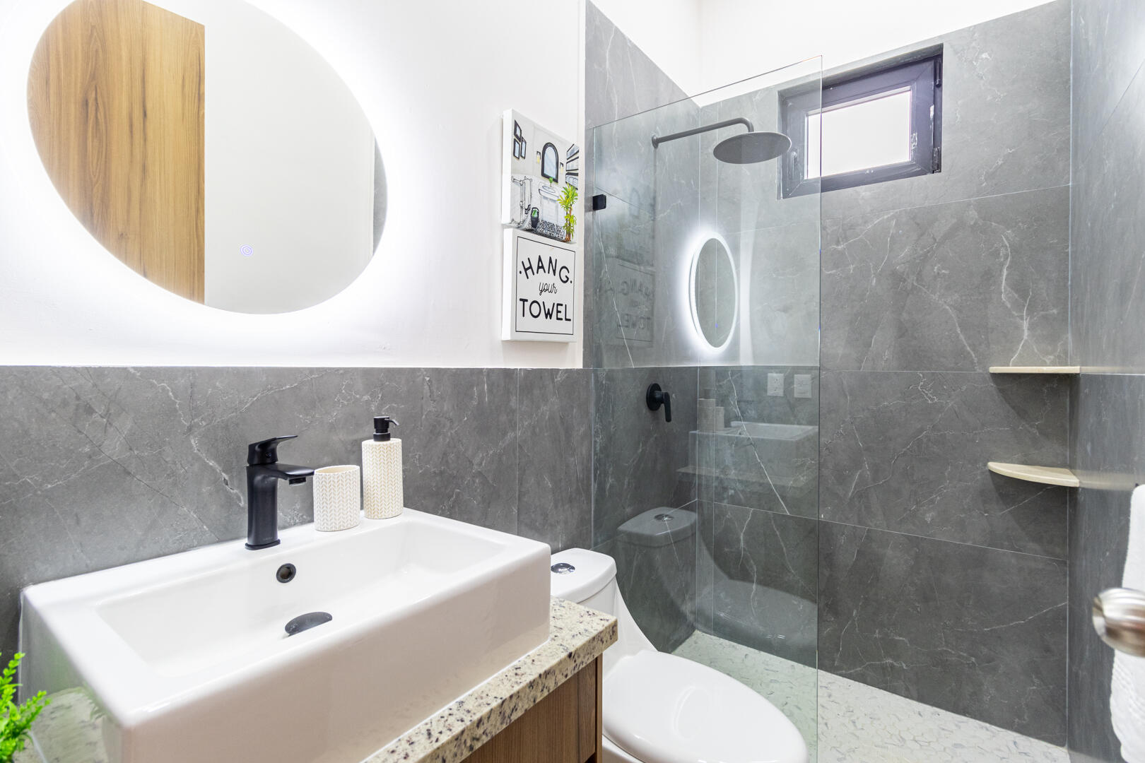 Welcome to Stanza Bucerias, a modern condo located in the bustling city of Bucerias. This inviting property offers the convenience of city living with the comfort of modern amenities. With two bedrooms and two bathrooms, this 84 M2 construction size condo is perfect for a small family or as a vacation home. The sleek and stylish design of this property is sure to impress, with its stunning ceramic flooring and contemporary finishes. Imagine lounging by the pool on a warm summer day, with the pool heater providing the perfect temperature. Plus, you’ll never have to worry about parking with the one designated parking space on the property.But the features of this condo don’t stop there. You’ll also have access to a garden area with a BBQ, making it easy to host gatherings with