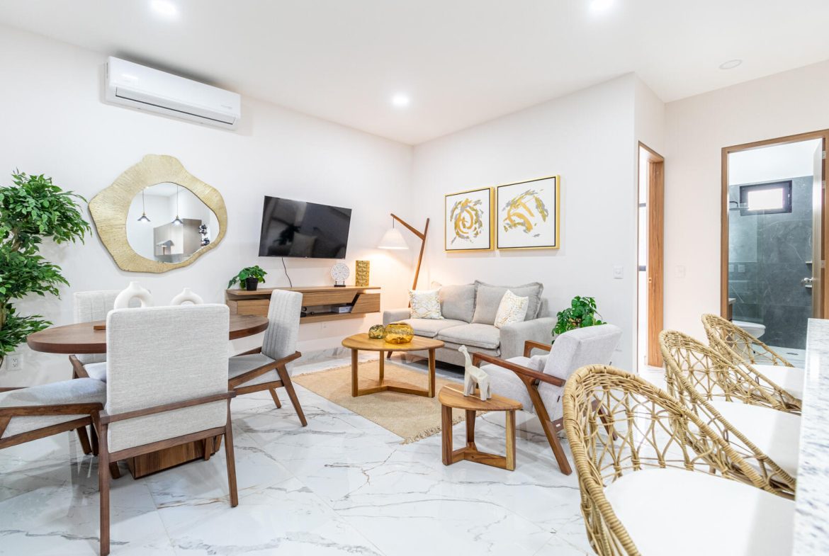 Welcome to Stanza Bucerias, a modern condo located in the bustling city of Bucerias. This inviting property offers the convenience of city living with the comfort of modern amenities. With two bedrooms and two bathrooms, this 84 M2 construction size condo is perfect for a small family or as a vacation home. The sleek and stylish design of this property is sure to impress, with its stunning ceramic flooring and contemporary finishes. Imagine lounging by the pool on a warm summer day, with the pool heater providing the perfect temperature. Plus, you’ll never have to worry about parking with the one designated parking space on the property.But the features of this condo don’t stop there. You’ll also have access to a garden area with a BBQ, making it easy to host gatherings with