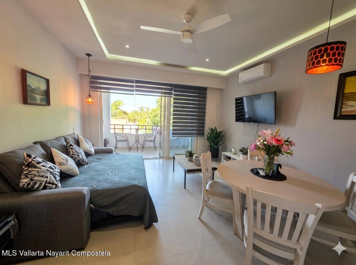 ENGLISH BELOW – CLICK MORE Este acogedor departamento de 1 recamara y 1.5 banos destaca por su excelente estado de conservacion y se entrega completamente amueblado y equipado. Disfrute de una terraza privada con vista directa a las albercas tipo laguna y los jardines tropicales.Interiores: Aire acondicionado mini-split, ventiladores de techo y acabados de calidad.Extras: Incluye un cajon de estacionamiento techado y una bodega privada.Taheima cuenta con hermosas albercas, jacuzzi, restaurante y areas verdesESTILO DE VIDA Y AMENIDADES:Vivir en El Tigre es sinonimo de estatus y confort. El desarrollo cuenta con seguridad privada 24/7 y acceso controlado, brindando la maxima tranquilidad. Como propietario, podra adquirir la Membresia Social obligatoria, que le otorga acceso aCLIC