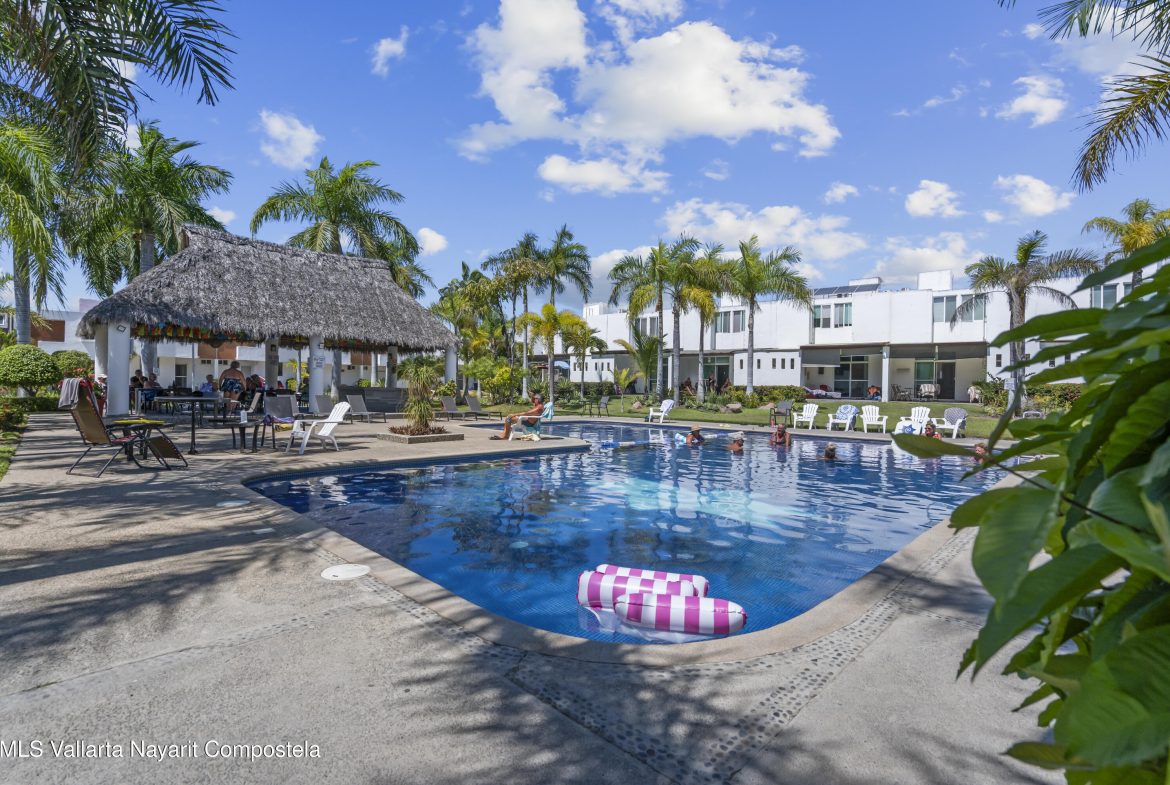 Moderna casa de playa con 3 recamaras, sin amueblar, en muy buenas condiciones, ubicada dentro de un hermoso coto cerca de la playa, con seguridad 24hs y alberca con palapa. La casa tiene un amplio patio trasero, cubierto con teja. La habitacion principal cuenta con closet vestidor y balcon. – Modern, unfurnished, 3-bedroom beach house in excellent condition, located in a beautiful gated community near the beach, with 24-hour security and a pool with a palapa. The house has a spacious, covered backyard. The master bedroom features a walk-in closet and a balcony.