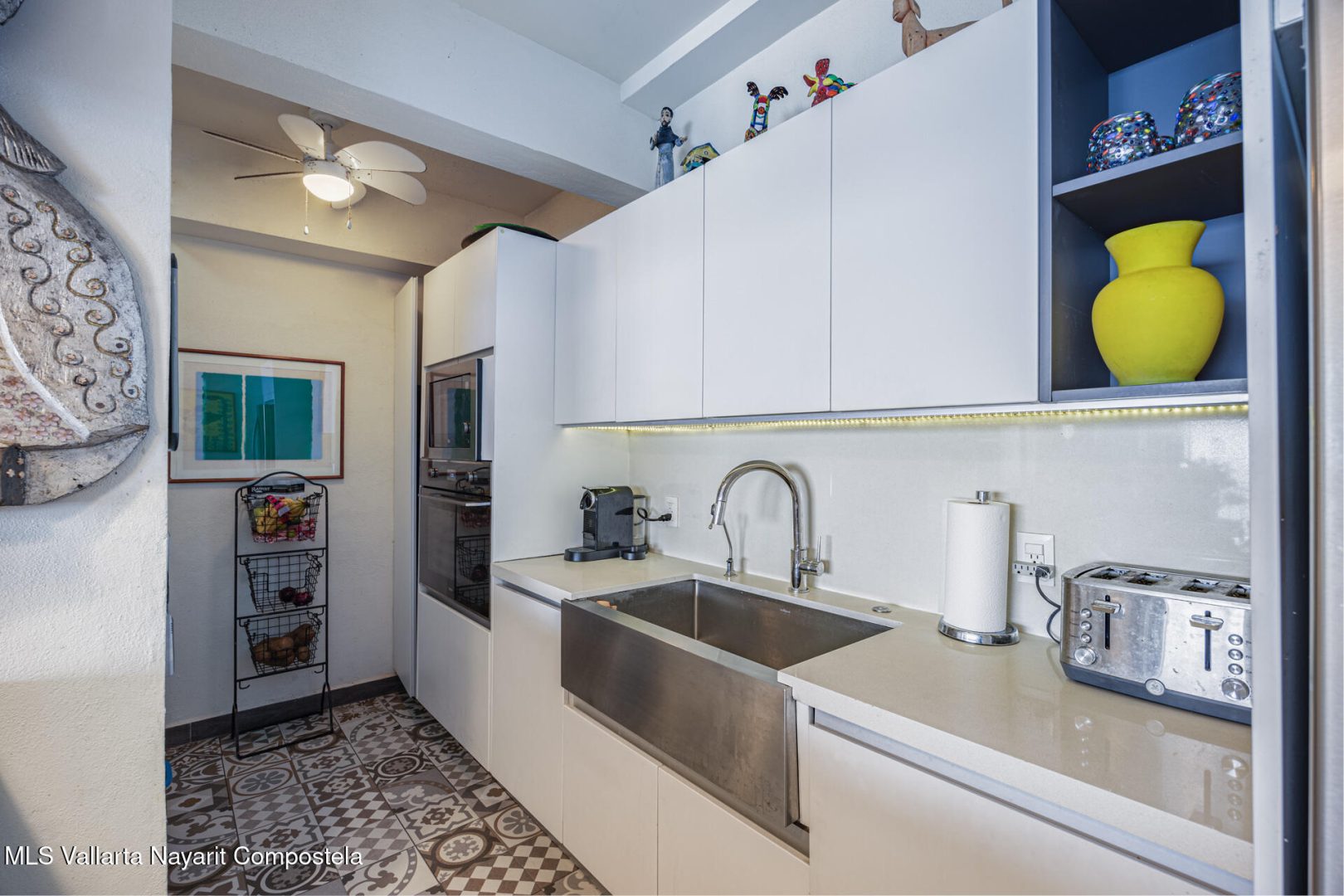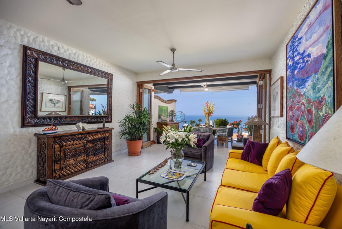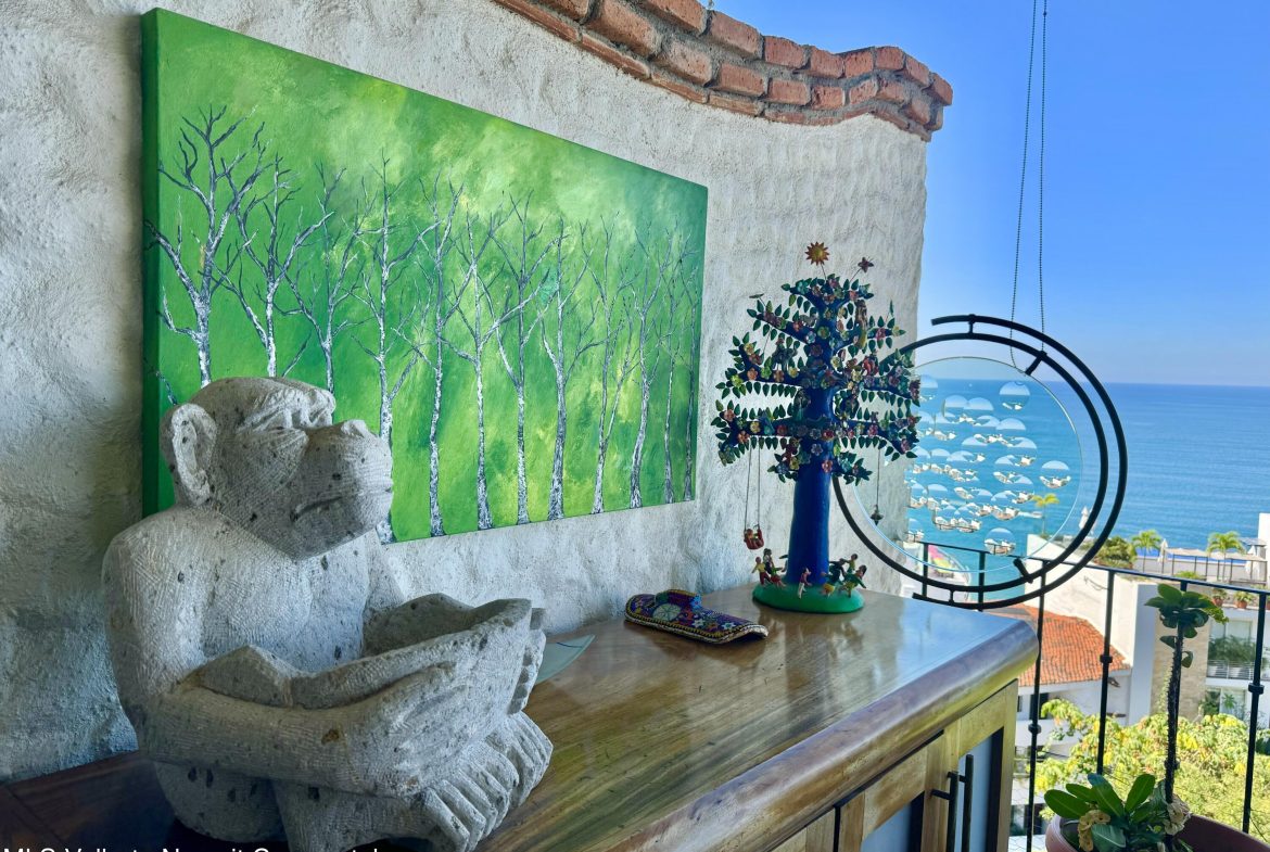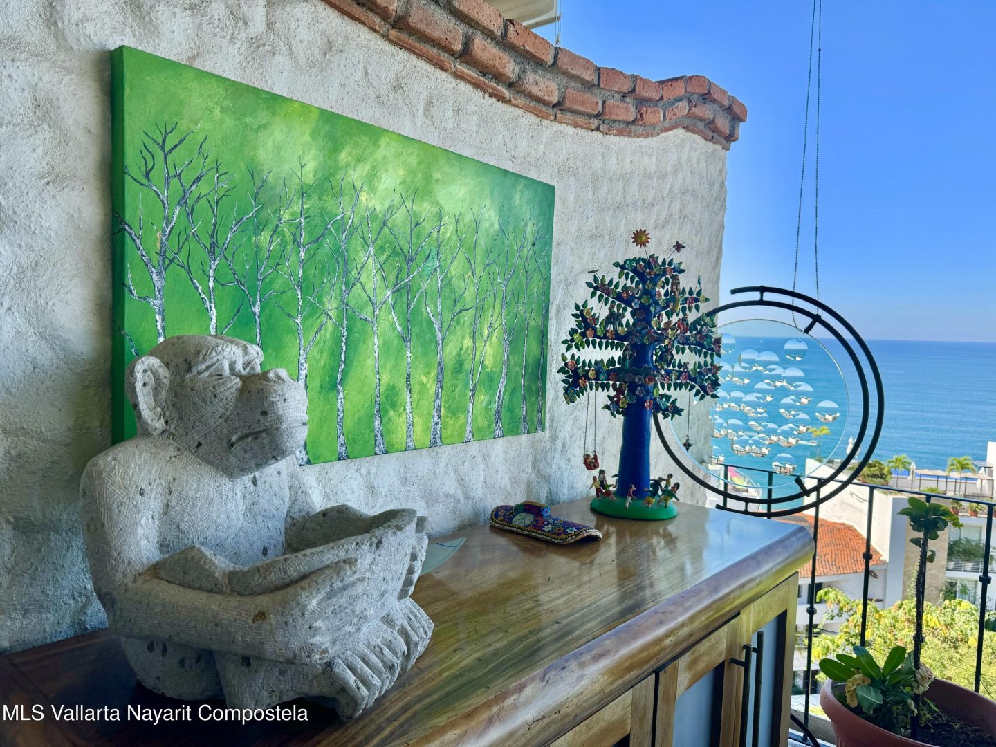 Don’t miss this beautiful property with the most incredible unobstructed ocean views from the living room, bedroom and large private terrace. Located in the prestigious neighborhood Amapas, this condo is part of the well known development Villa Tizoc, designed by Guillermo Wolf and designed and built in traditional Mexican Architecture. This condo has the only direct access to the stunning heated pool, that features a palapa and lounge chairs for you to take the sun and watch sunsets everyday. This unit is a large one bedroom unit with A.C unit, with a large bathroom, two sink Parota vanity with filtered water, also on fridge. Walk in shower, and Terrazzo tile floors, walls and ceiling, with stained glass window.