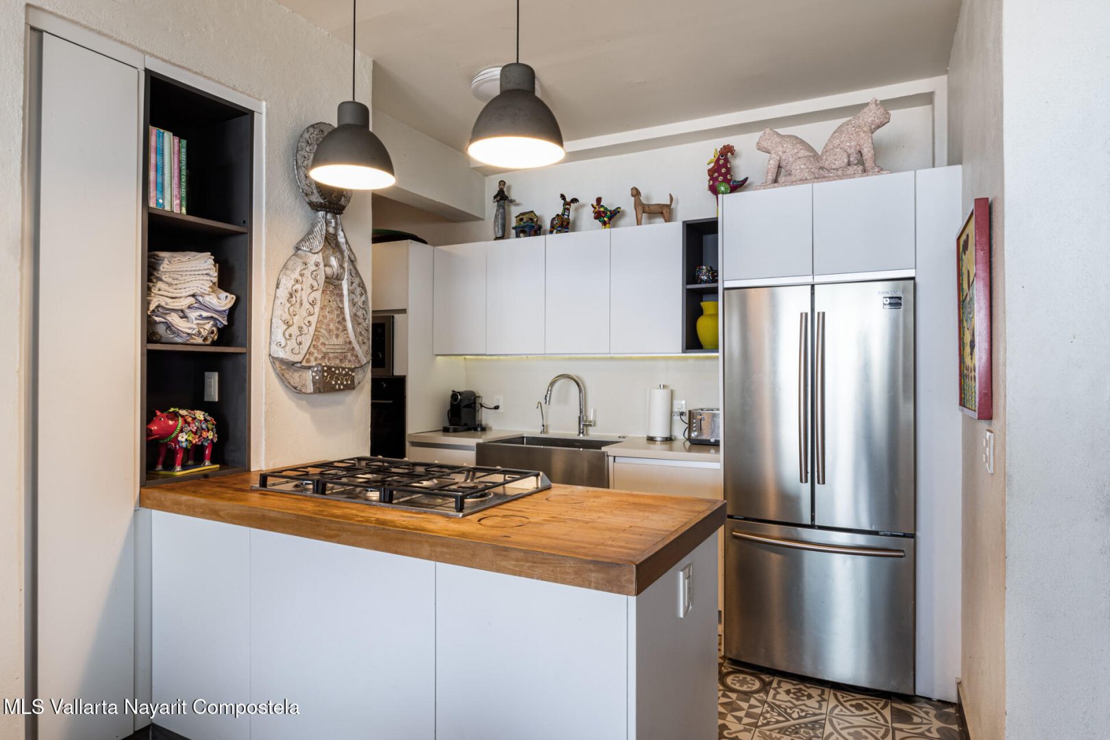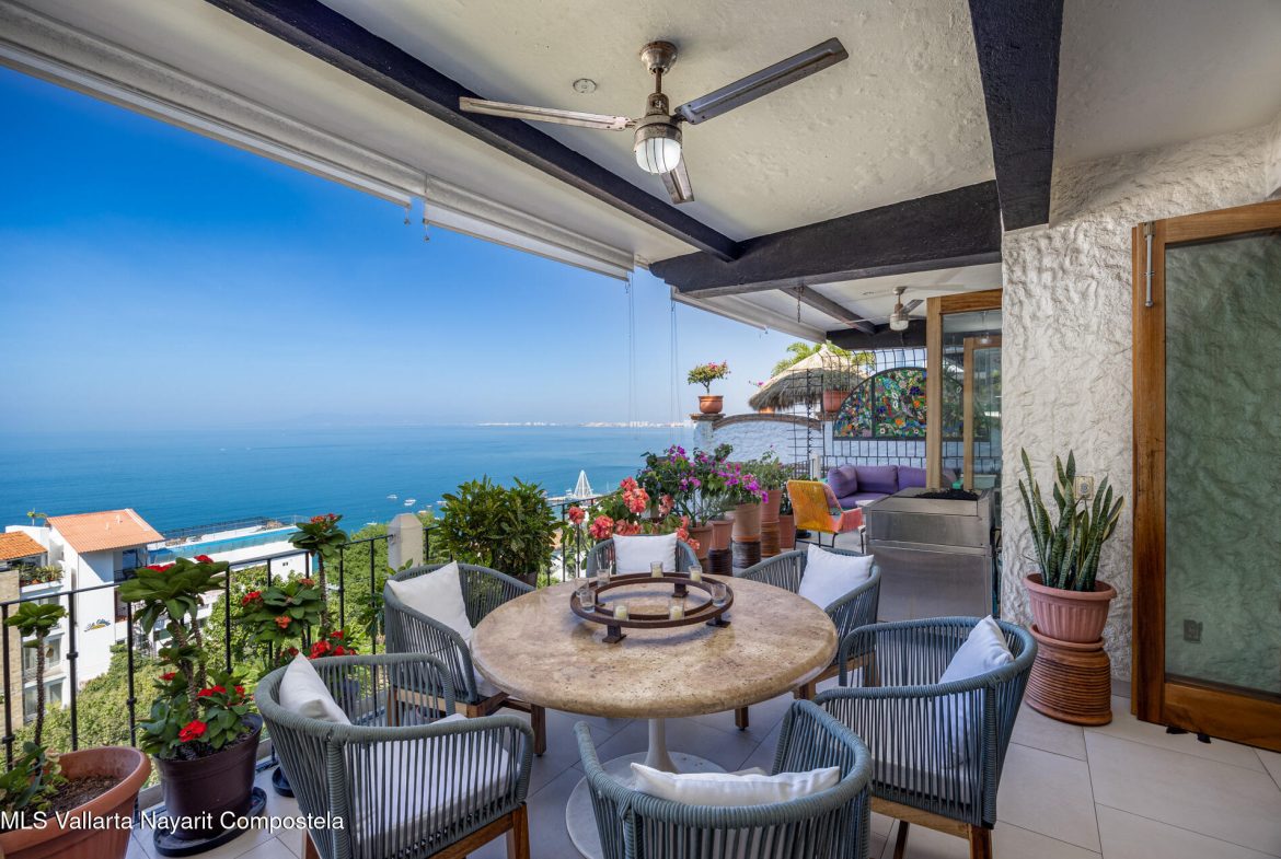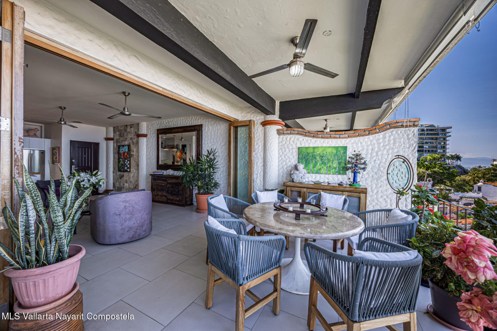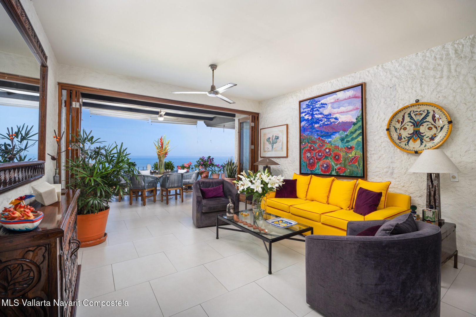 Don’t miss this beautiful property with the most incredible unobstructed ocean views from the living room, bedroom and large private terrace. Located in the prestigious neighborhood Amapas, this condo is part of the well known development Villa Tizoc, designed by Guillermo Wolf and designed and built in traditional Mexican Architecture. This condo has the only direct access to the stunning heated pool, that features a palapa and lounge chairs for you to take the sun and watch sunsets everyday. This unit is a large one bedroom unit with A.C unit, with a large bathroom, two sink Parota vanity with filtered water, also on fridge. Walk in shower, and Terrazzo tile floors, walls and ceiling, with stained glass window.