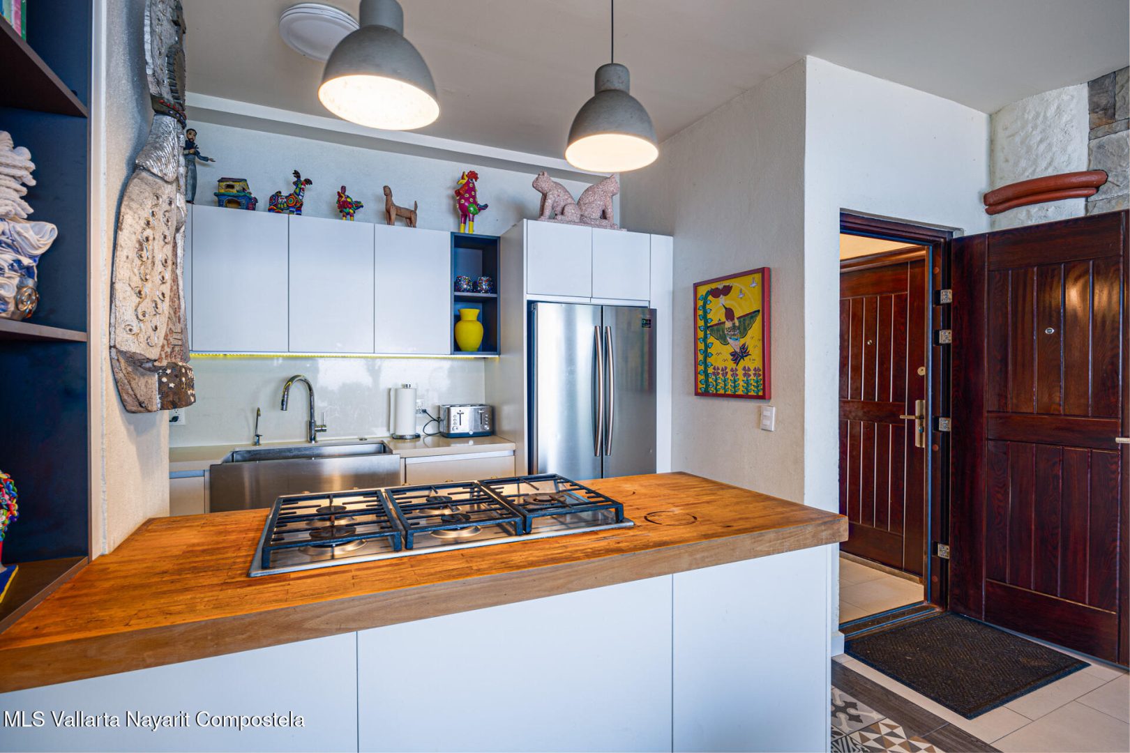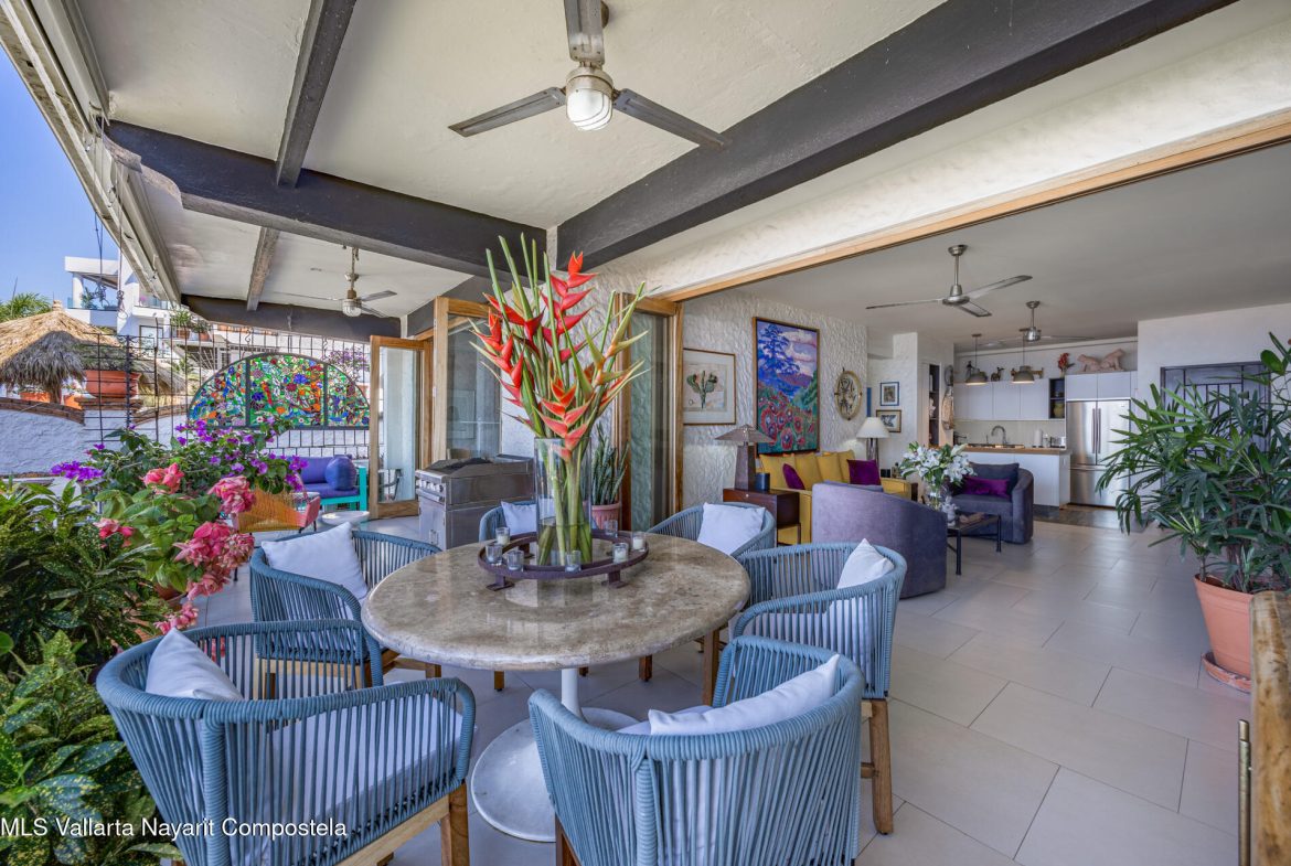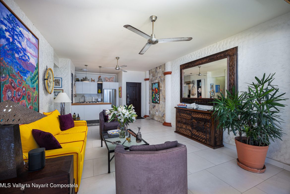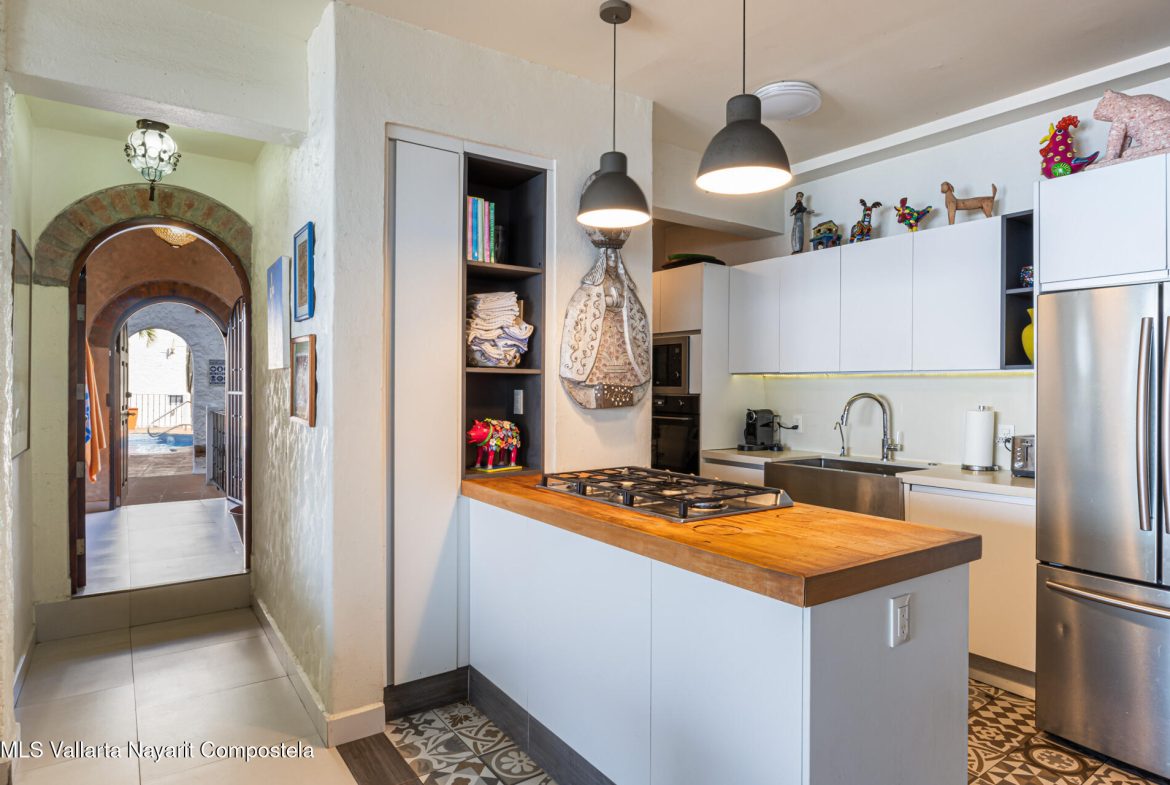 Don’t miss this beautiful property with the most incredible unobstructed ocean views from the living room, bedroom and large private terrace. Located in the prestigious neighborhood Amapas, this condo is part of the well known development Villa Tizoc, designed by Guillermo Wolf and designed and built in traditional Mexican Architecture. This condo has the only direct access to the stunning heated pool, that features a palapa and lounge chairs for you to take the sun and watch sunsets everyday. This unit is a large one bedroom unit with A.C unit, with a large bathroom, two sink Parota vanity with filtered water, also on fridge. Walk in shower, and Terrazzo tile floors, walls and ceiling, with stained glass window.