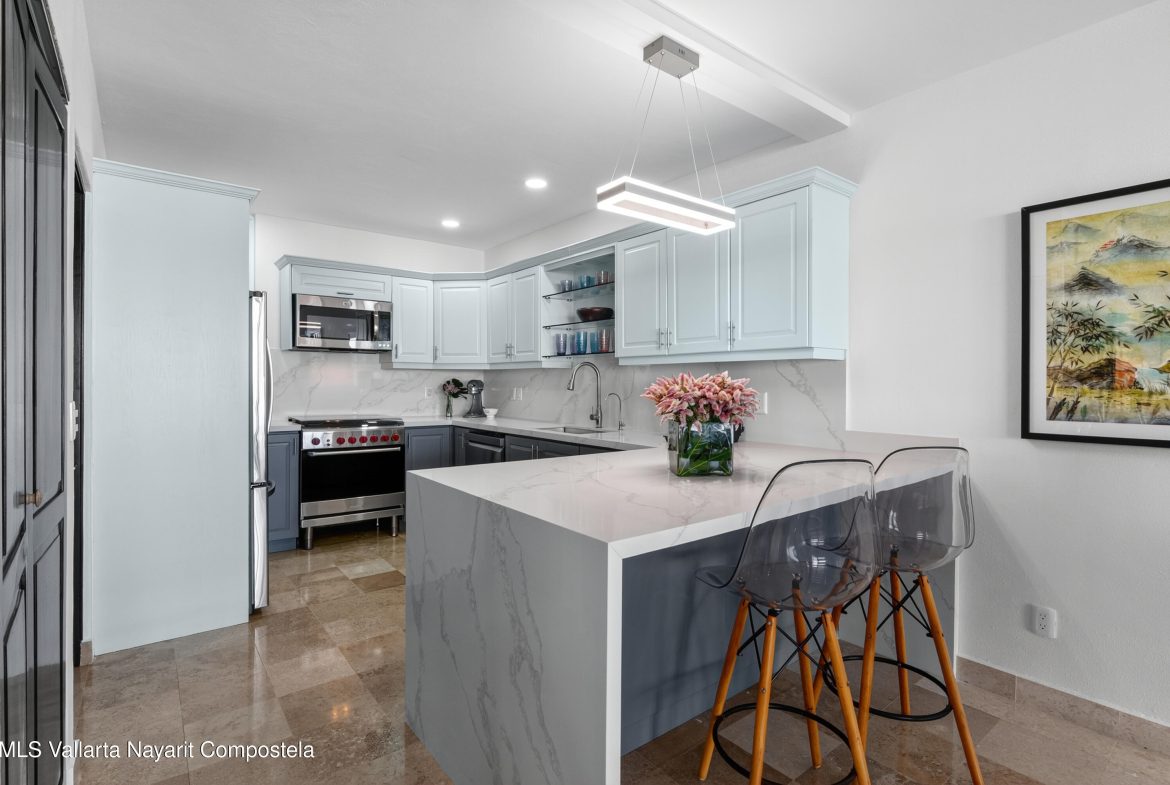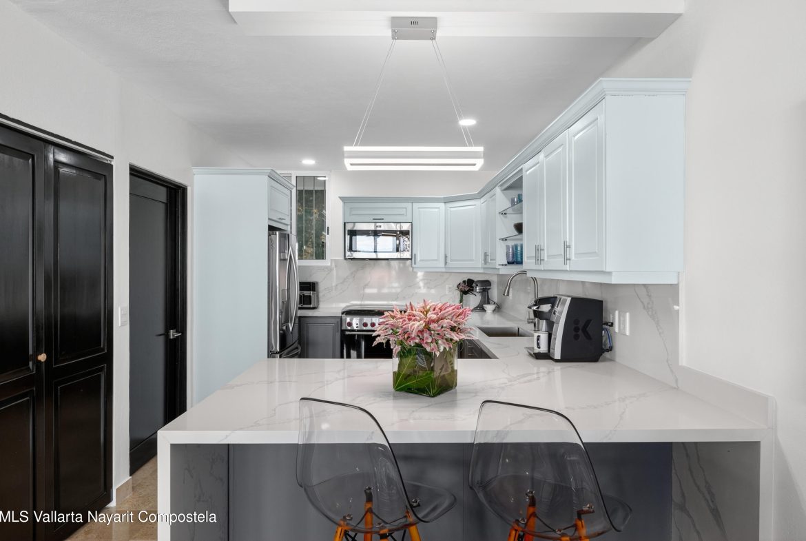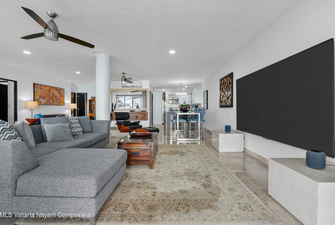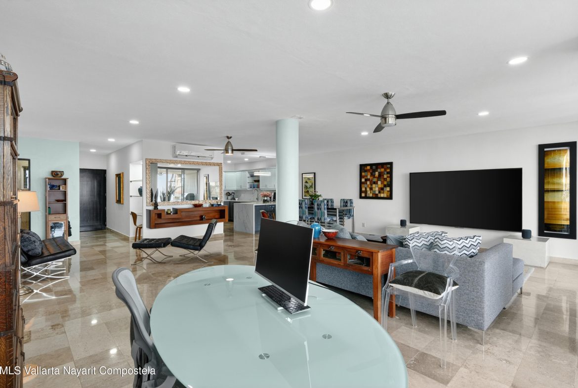 Meticulously maintained spacious 2-bedroom, 2-bath apartment offering 168.87 m (1,818 ft) of comfortable living in El Cerro. The open layout highlights expansive living areas and a full front terrace with stunning ocean and mountain views, perfect for relaxing and entertaining. Recently remodeled kitchen and bathrooms feature modern finishes, complemented by marble floors and abundant natural light. Thoughtful storage solutions provide practicality. Amenities include parking, pool, washer/dryer, and water filtration system. Prime location with easy access to Old Town, airport, restaurants, bars, beaches, and essential services–a perfect blend of space, comfort, and location.