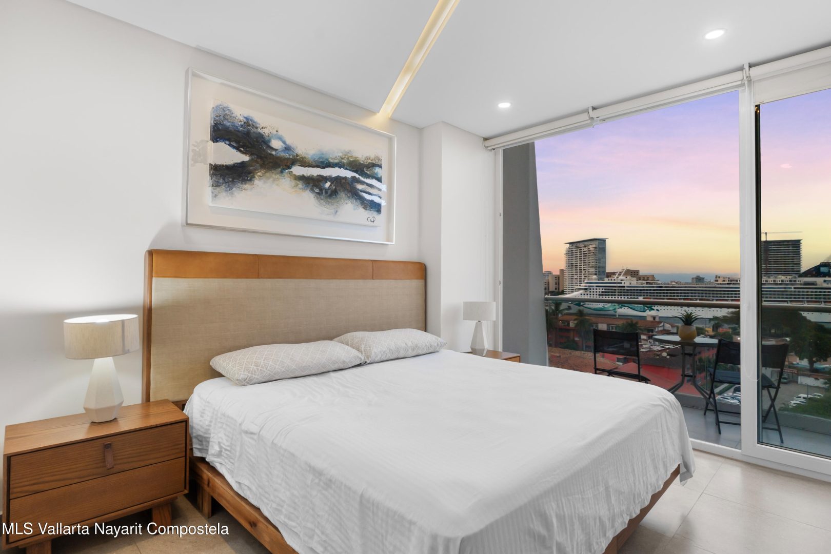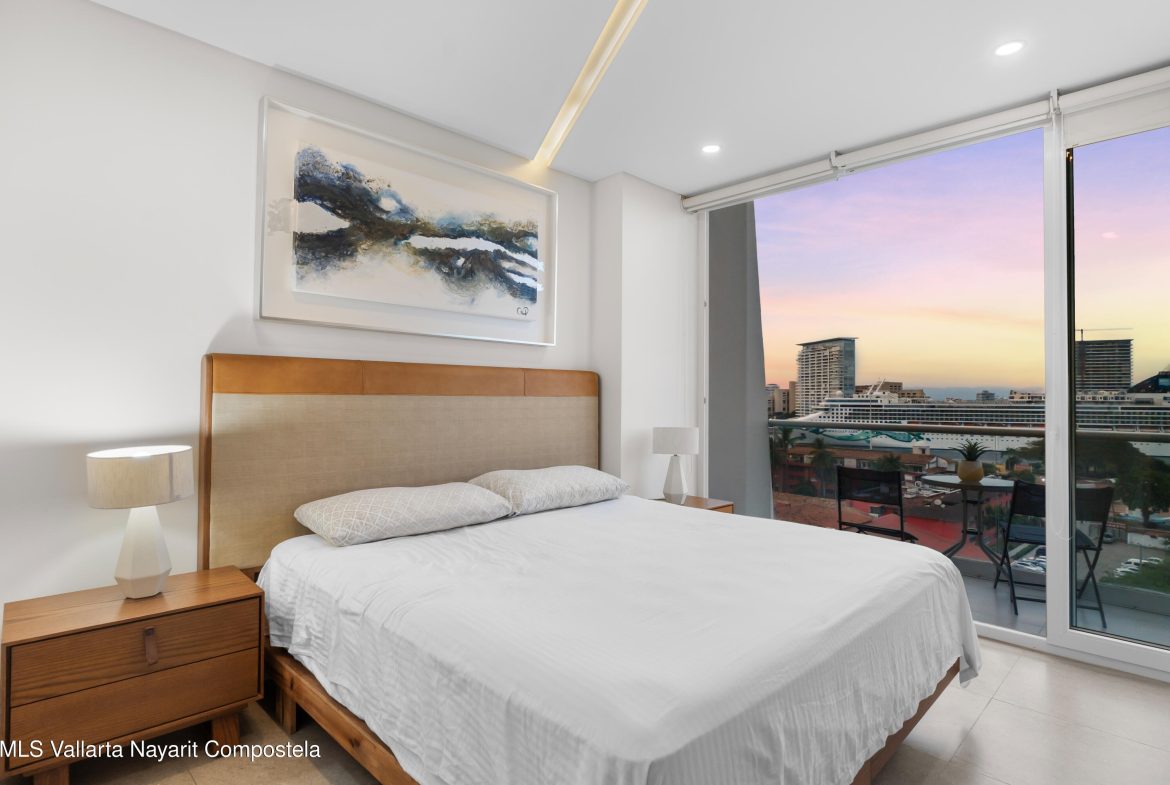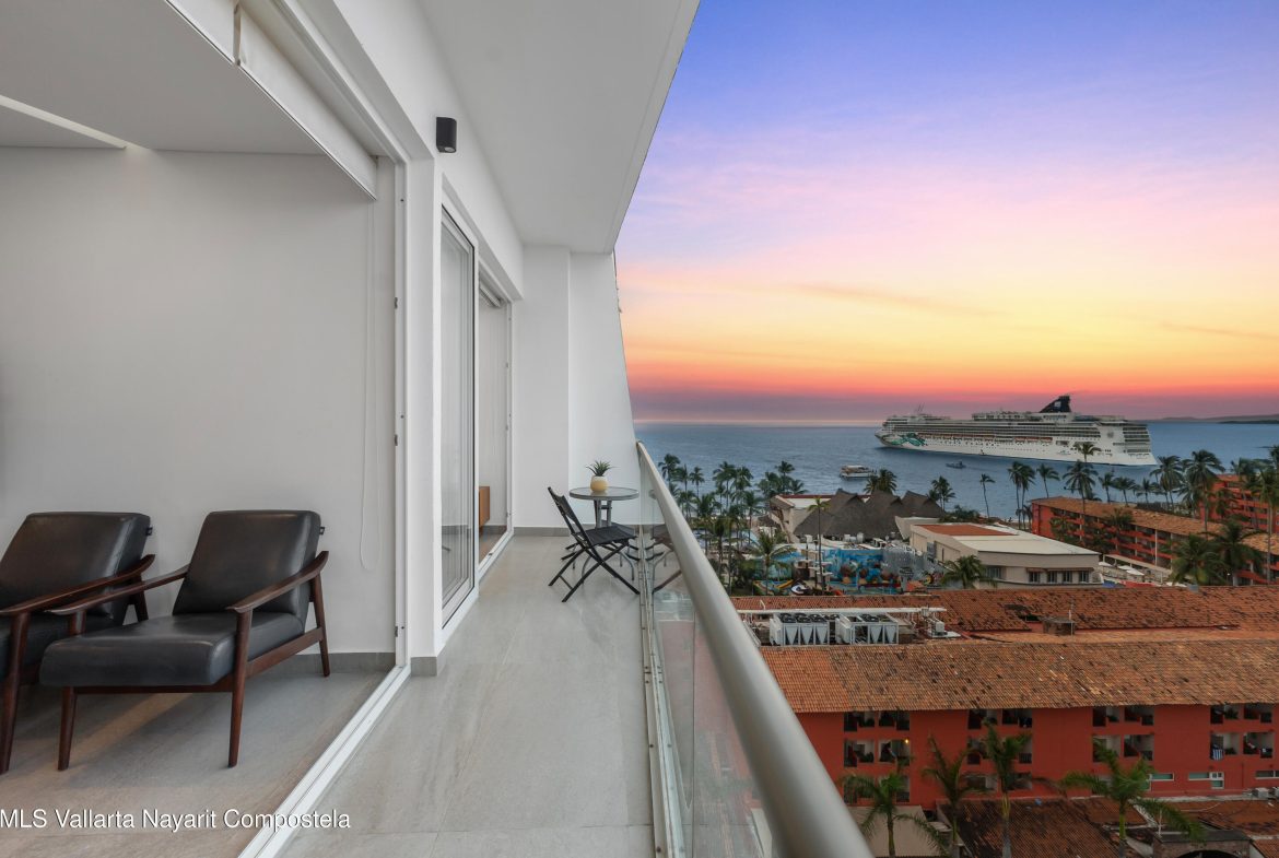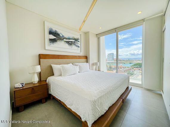 Beautiful condo located in one of the most important areas of Puerto Vallarta – Hotel Zone. It has a spacious kitchen, living room, 2 bedrooms with closet, and 2 full bathrooms, a spectacular view of the beach, marina zone, and the city. Torre Ambar has an incredible rooftop where you can enjoy the spectacular view from the pool. Close to shopping centers, supermarkets, the marina zone, and a few meters by walk from the beach. Hermoso condominio ubicado en una de las mejores zonas de Puerto Vallarta: la Zona Hotelera. Cuenta con una amplia cocina, sala, 2 recamaras con closet y 2 banos completos. Ofrece una espectacular vista al mar, la marina y la ciudad. Torre Ambar cuenta con una increible terraza donde podra disfrutar de la espectacular vista desde la piscina.