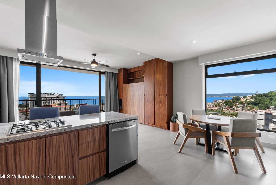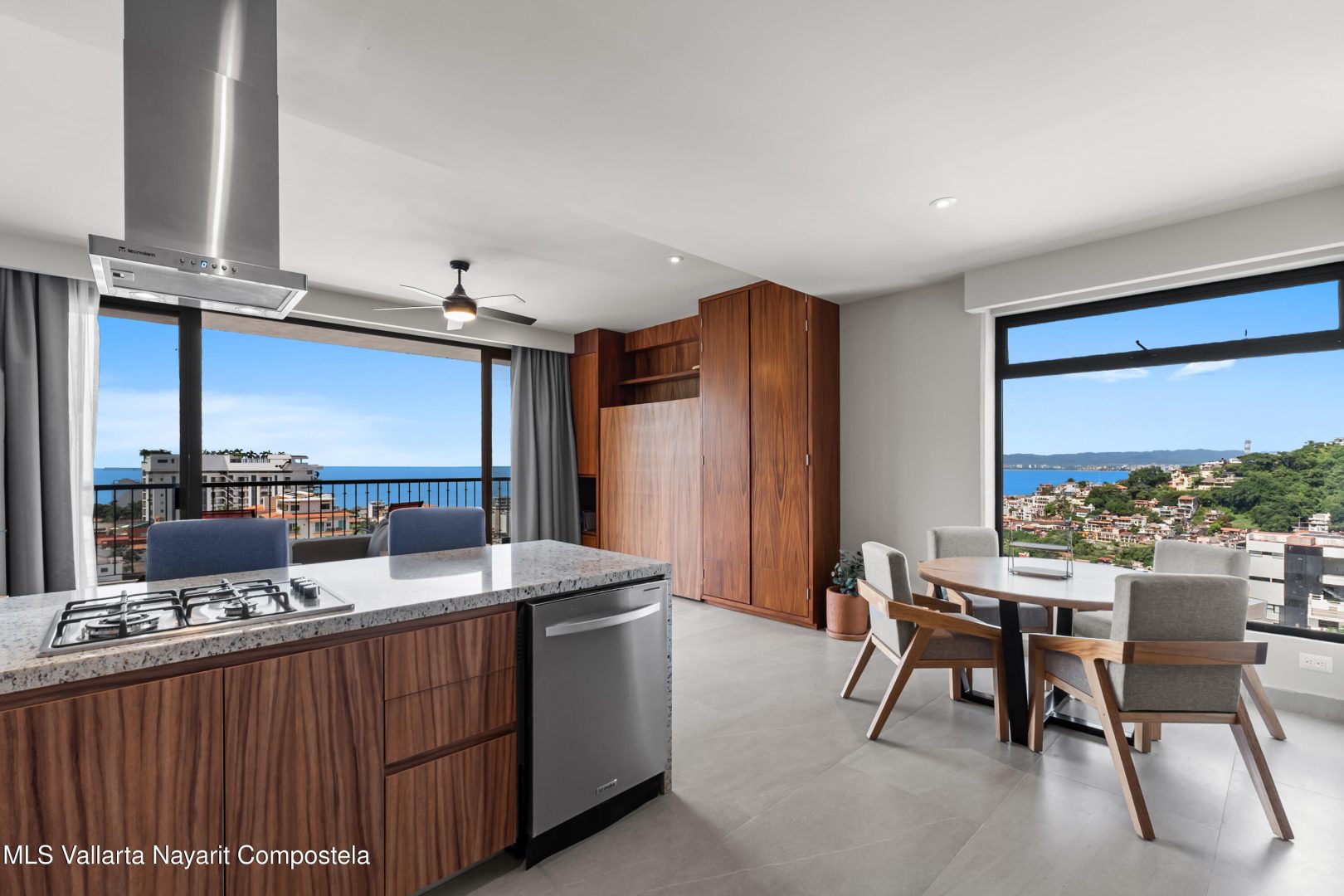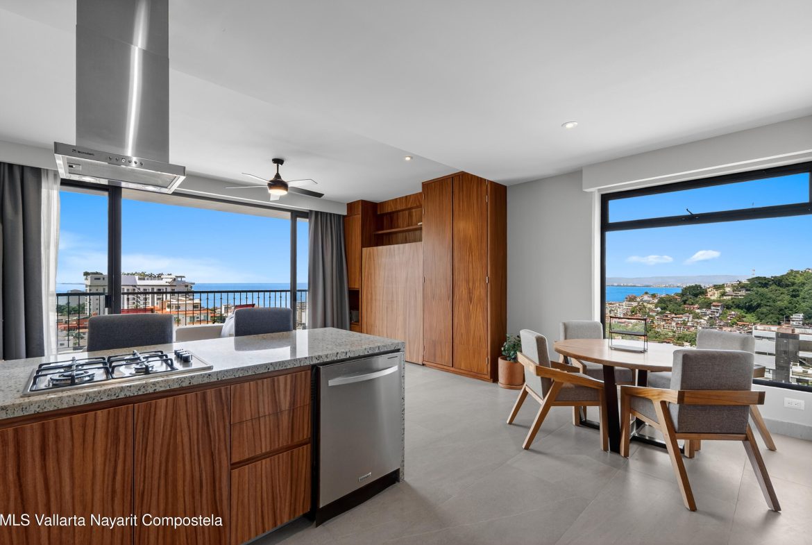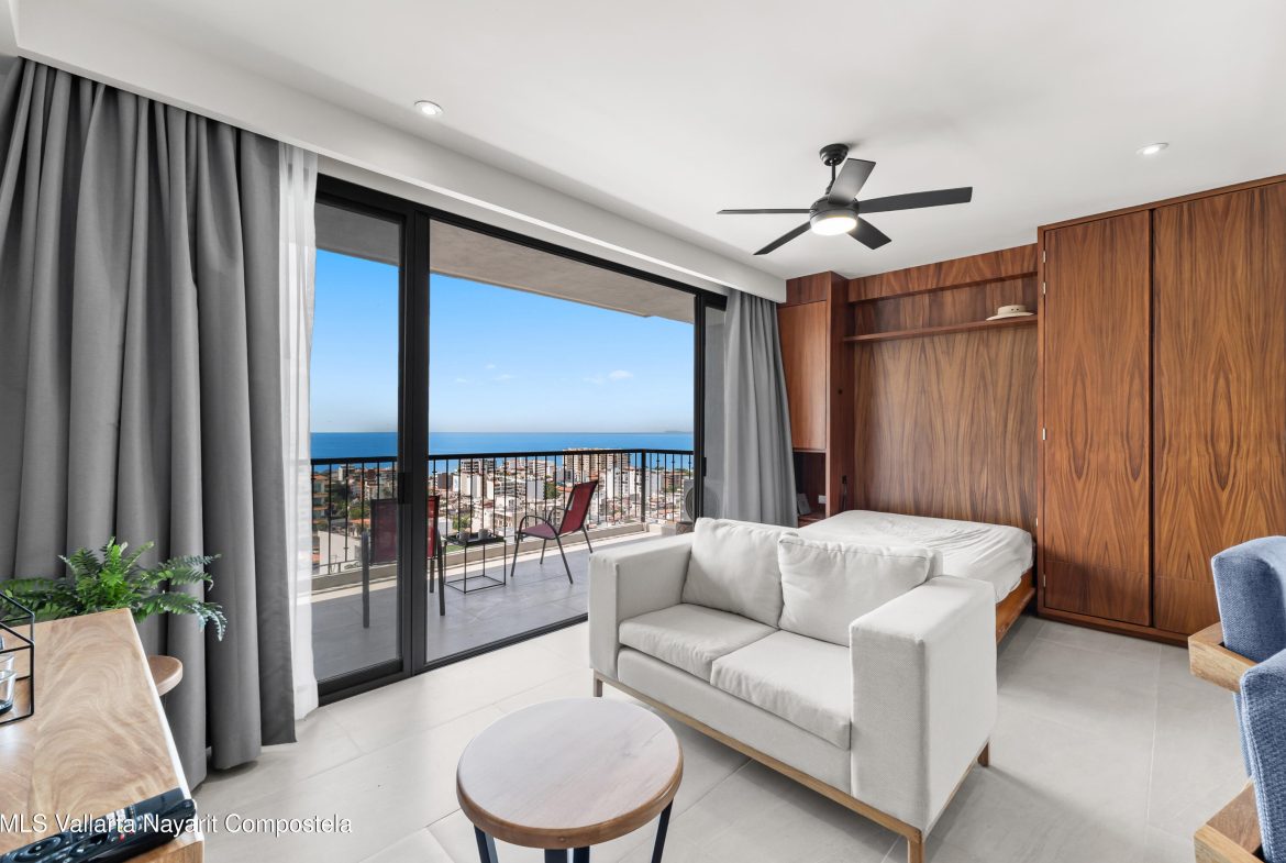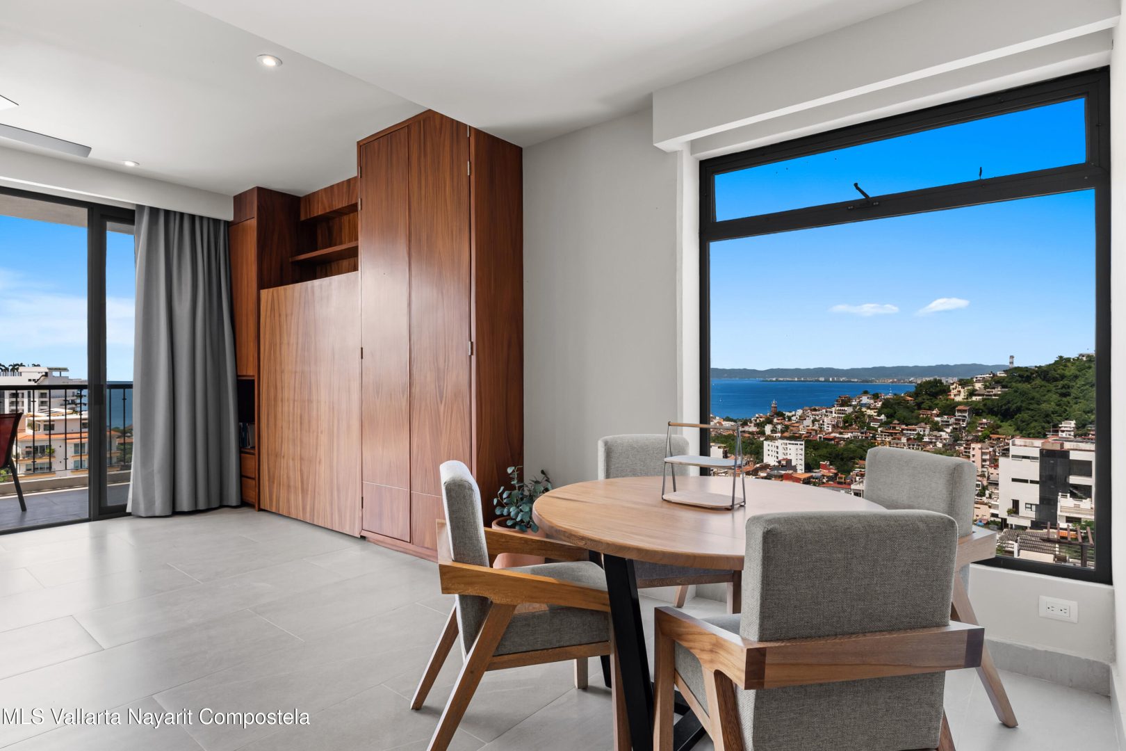This unit is located on the 4th level, featuring an impressive balcony with incredible ocean views, and a large picture-frame window that feels like a living work of art–perfectly framing the bay, downtown Puerto Vallarta and the iconic church tower.The building showcases a stunning 360 rooftop with ocean, city and mountain views–ideal for relaxing or entertaining. Amenities include a rooftop pool and jacuzzi, gym, elevator, lounge areas and secure access.Torre Camichin is a boutique condominium offering exceptional rental potential and versatile lock-off layouts that allow you to maximize income. Located just a short walk from the Romantic Zone, you’ll be close to restaurants, cafes, art galleries and local shops, while still enjoying a quiet residential atmosphere.