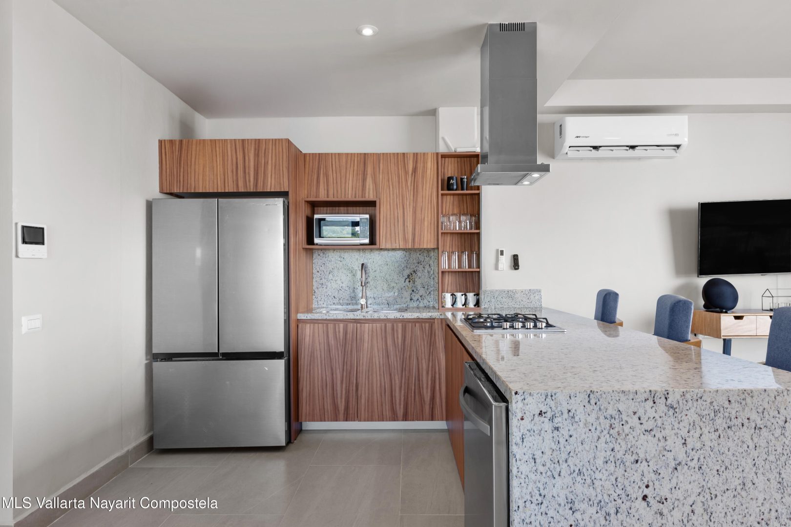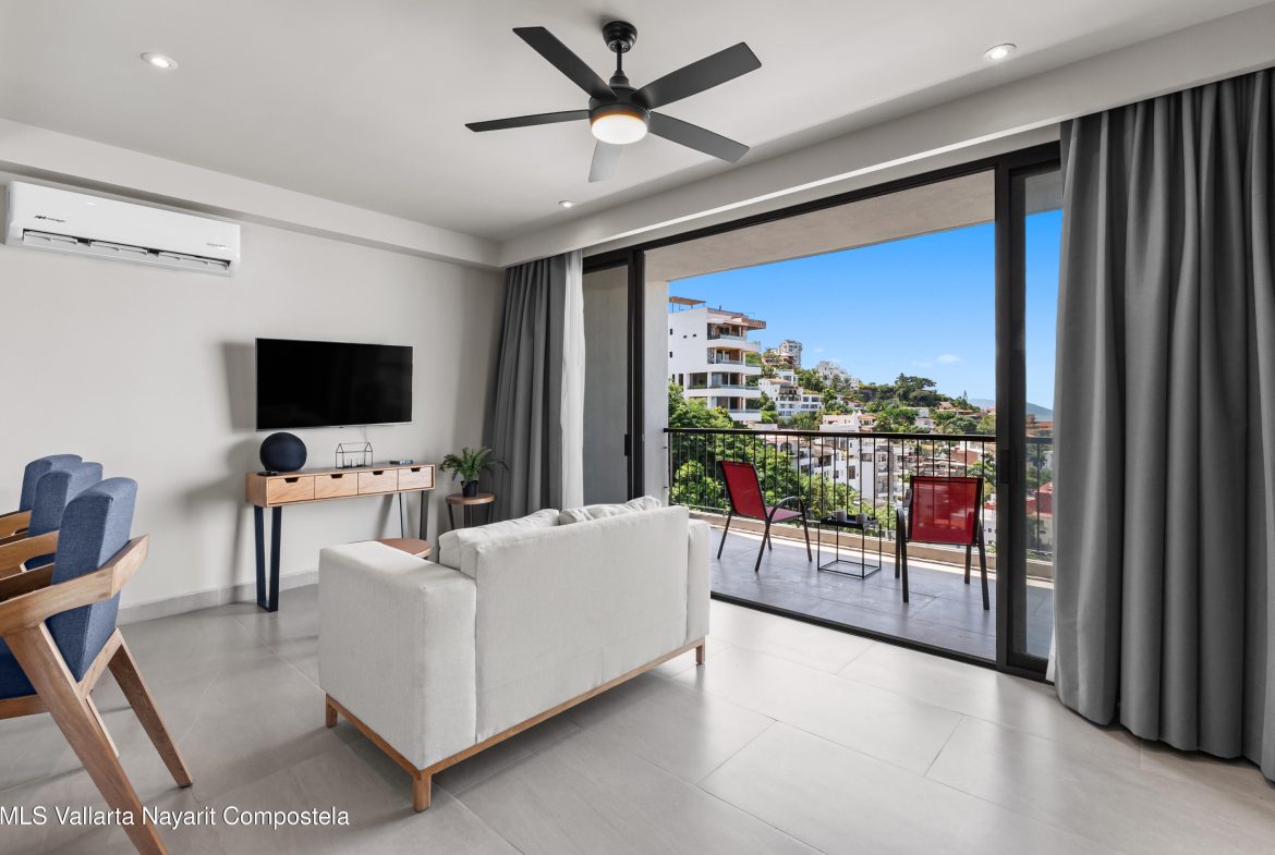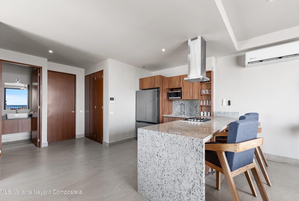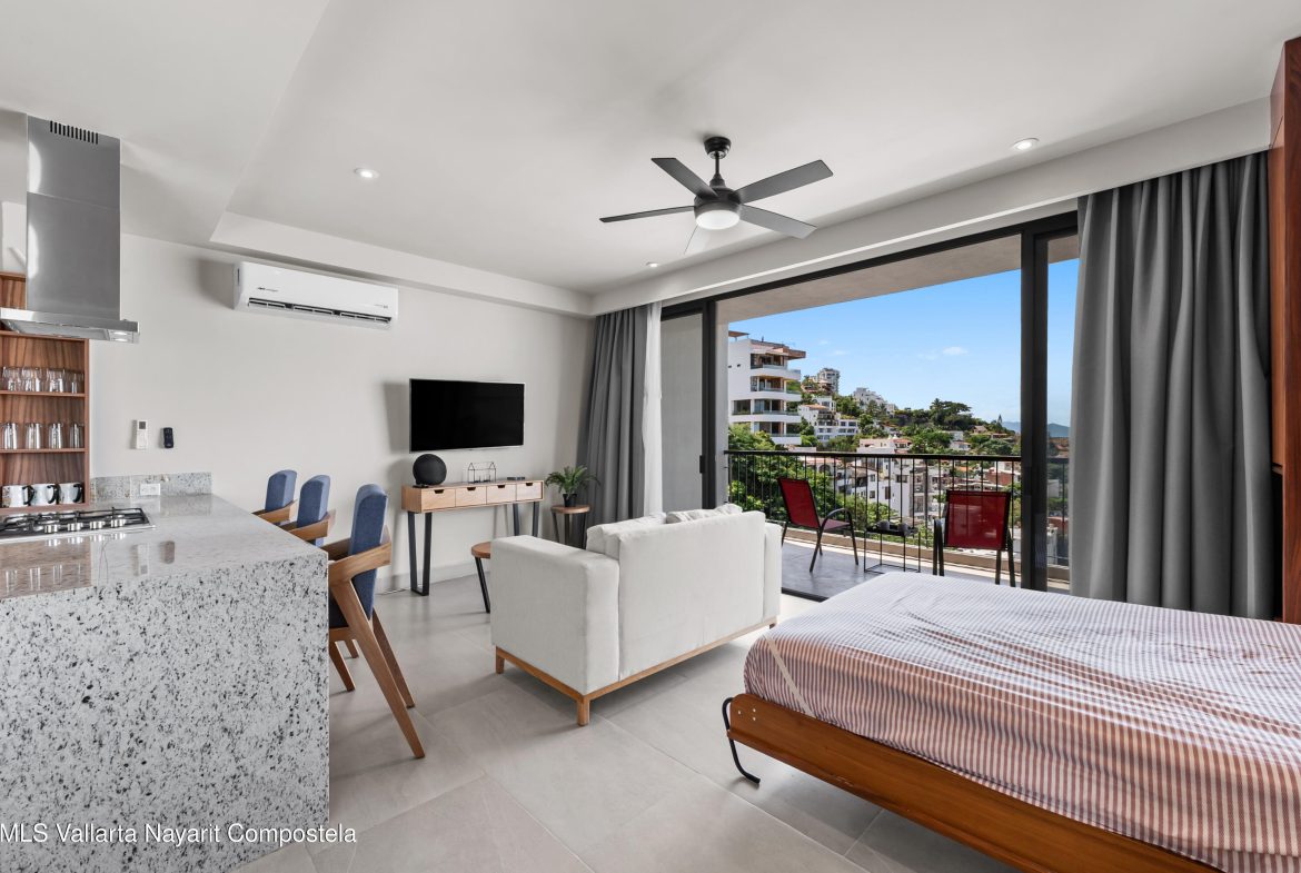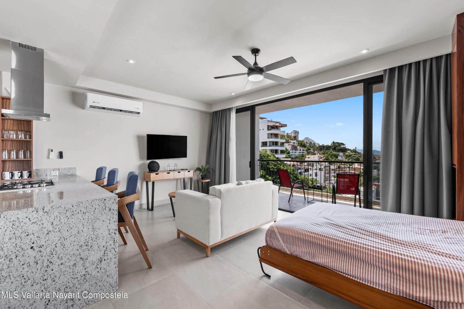 This unit is located on the 4th level, featuring an impressive balcony with incredible ocean views, and a large picture-frame window that feels like a living work of art–perfectly framing the bay, downtown Puerto Vallarta and the iconic church tower.The building showcases a stunning 360 rooftop with ocean, city and mountain views–ideal for relaxing or entertaining. Amenities include a rooftop pool and jacuzzi, gym, elevator, lounge areas and secure access.Torre Camichin is a boutique condominium offering exceptional rental potential and versatile lock-off layouts that allow you to maximize income. Located just a short walk from the Romantic Zone, you’ll be close to restaurants, cafes, art galleries and local shops, while still enjoying a quiet residential atmosphere.