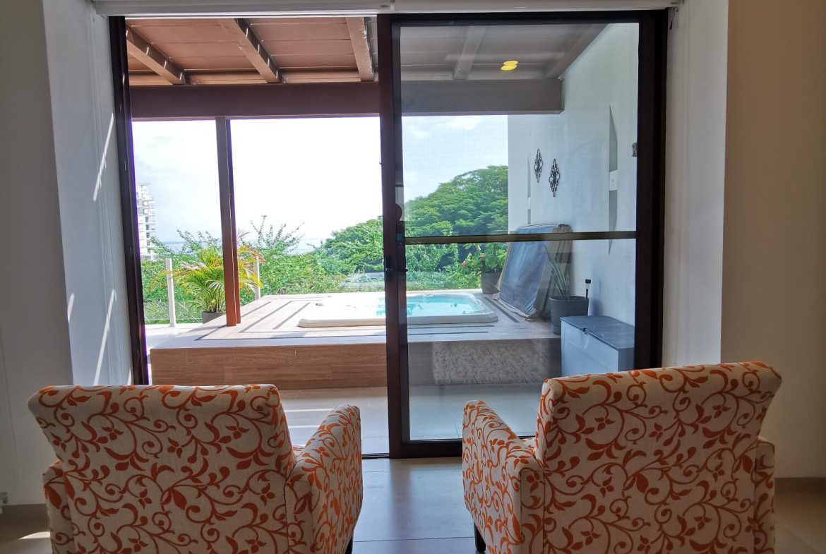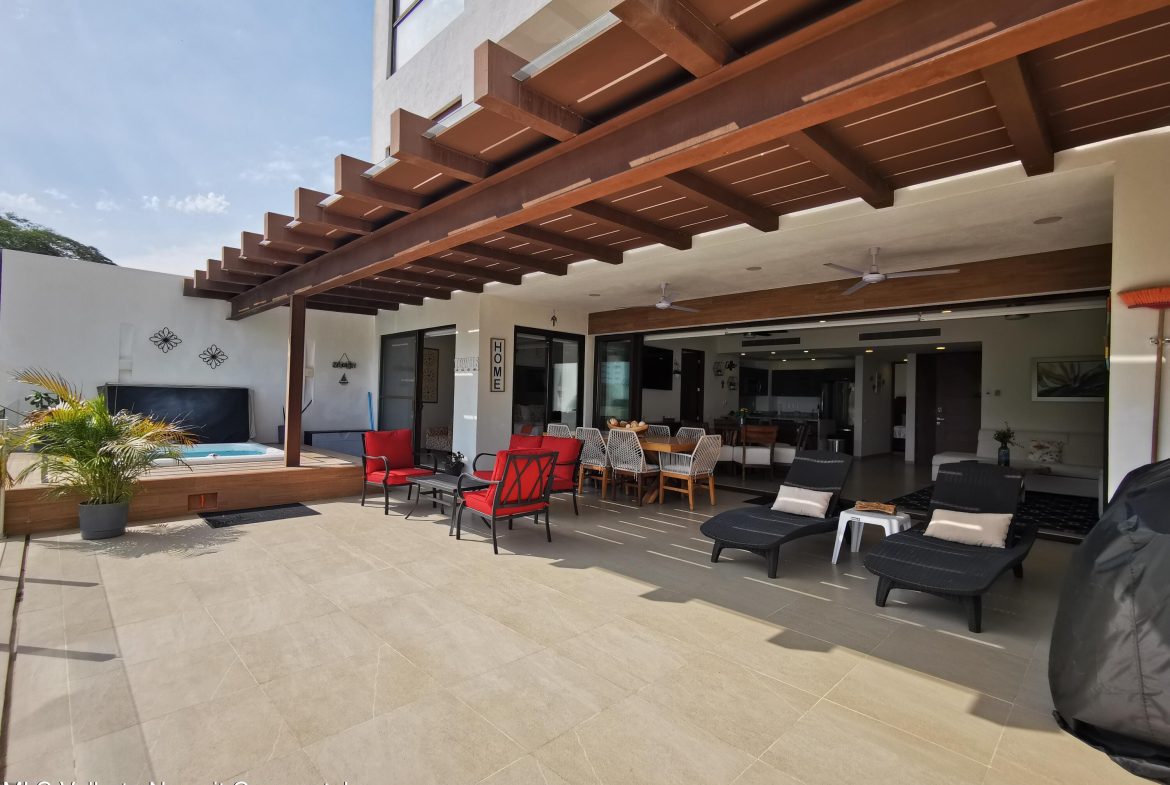 Stunning unit in Delta IV fully furnished and decorated; This condominium has an extended terrace and harmoniously joins the living room area, creating a very spacious living ”entertainment” area. The views of the sea and the mountains are incredible from the living room, kitchen, master bedroom; you will be amazed of these views while relaxing in the comfort of this unit’s four sitting private jacuzzi.Alamar is a highly prestigious development, where you can enjoy total tranquility, its amenities are vast and all of them designed to fit into the lifestyle of its owners, from the living area (palapa), pool, beach club, gym area, paddle courts, hiking and bird watching trails, etc…Don’t miss the opportunity to see this beautiful unit in an incredible development.