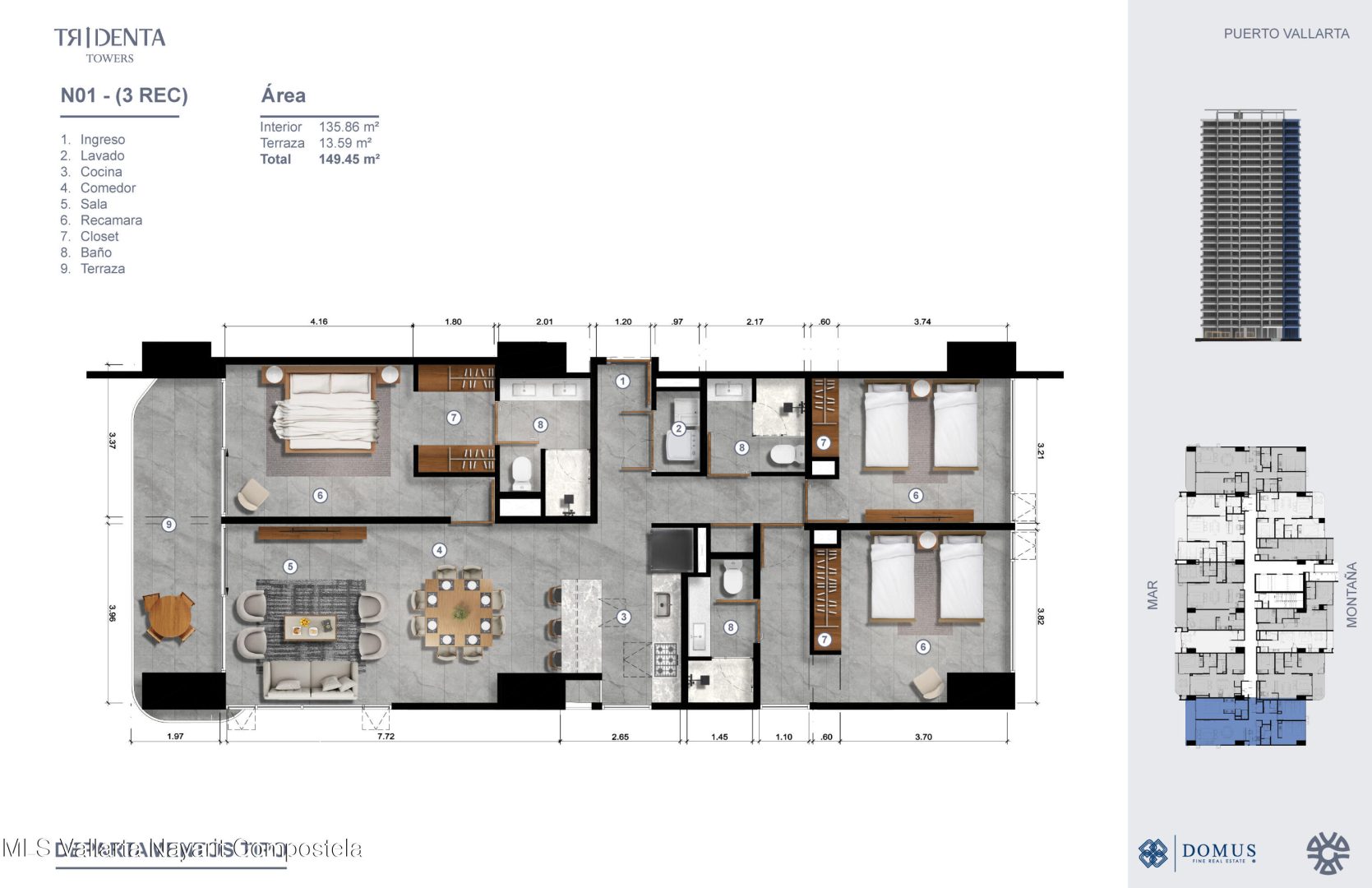 Disenado por los aclamados arquitectos de GVA, Tridenta Towers presenta un estilo de vida de playa en la Zona Hotelera de Puerto Vallarta. Esta obra maestra arquitectonica ofrece 312 exquisitas residencias en la Torre 1, desde estudios hasta departamentos de 3 habitaciones, cada uno con impresionantes vistas al mar o a las montanas. Disfruta de amenidades que incluyen albercas infinity, una increible terraza superior con vistas panoramicas a la bahia, un beach club, canchas de padel, gimnasio y exuberantes jardines tropicales. Su ubicacion privilegiada combina la tranquilidad de vivir frente al mar con facil acceso a restaurantes y vida nocturna. Estacionamiento disponible con costo adicional.