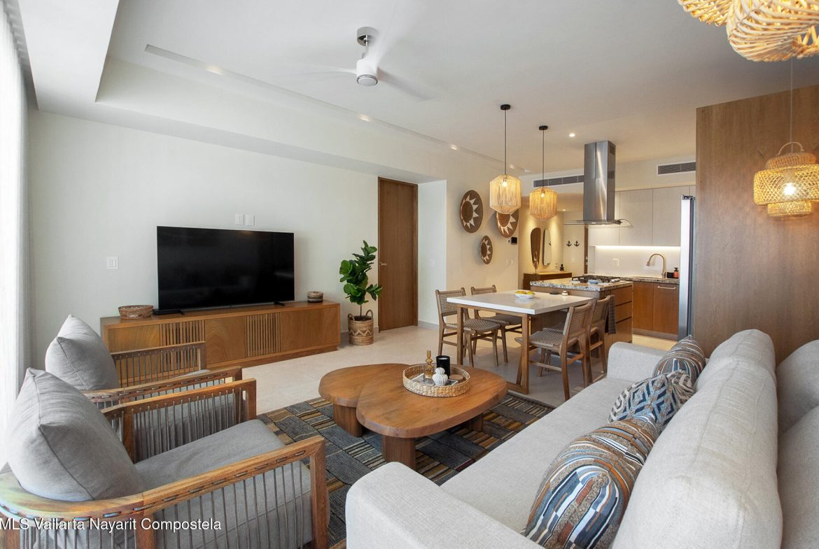 Luxury Designer-Furnished Beachfront Condo in VBucerias with gorgeous ocean viewsExperience elevated coastal living in this impeccably curated, fully turn-key 2-bedroom, 2-bathroom residence at VBucerias — Bucerias’ newest luxury beachfront address by renowned developer Grupo Heva.Professionally designer-furnished with premium upgrades throughout, including authorized metal security doors/windows, mosquito screens & hurricane shutters. Includes underground parking and a private storage locker.World-Class Amenities: 50m of beachfront with oceanfront lounge Saltwater, heated infinity pool & jacuzzi Rooftop BBQ terrace & fire pit On-site restaurant & bar State-of-the-art gym & games room Concierge, motor lobby & lush gardens