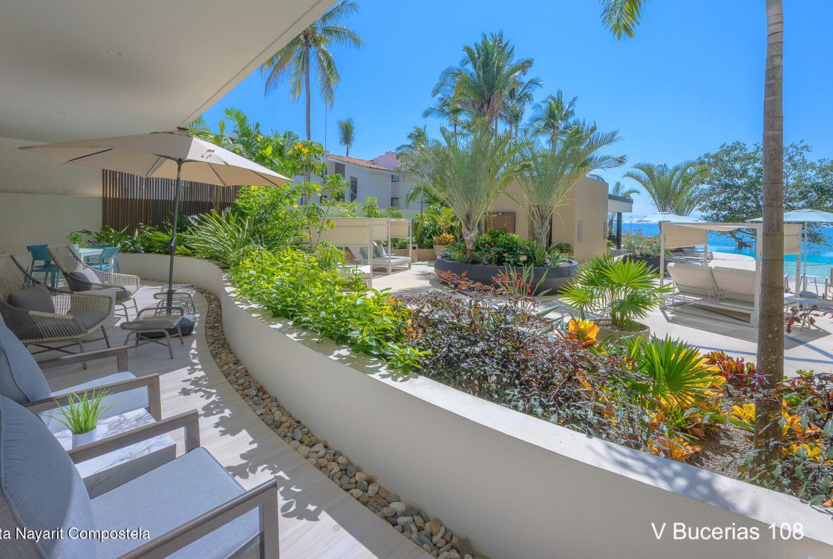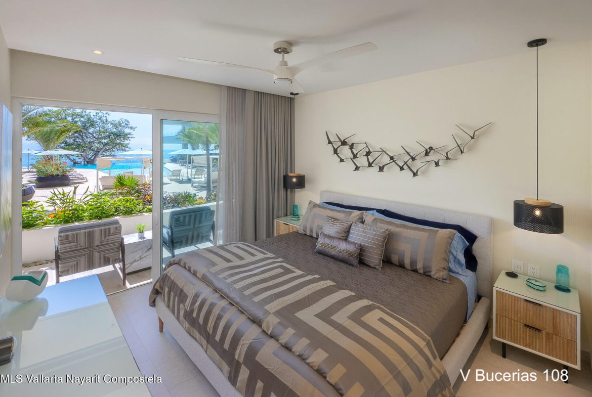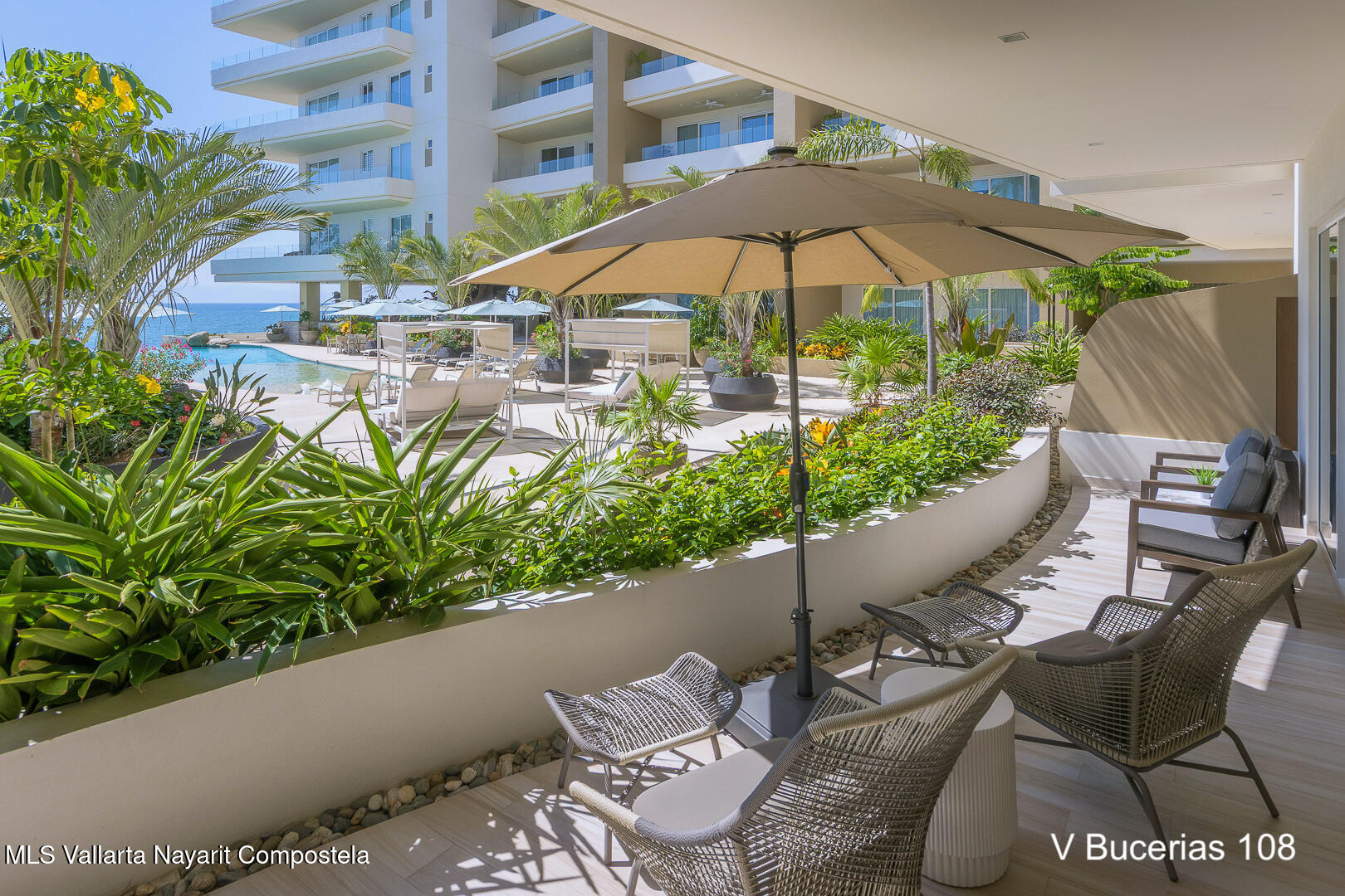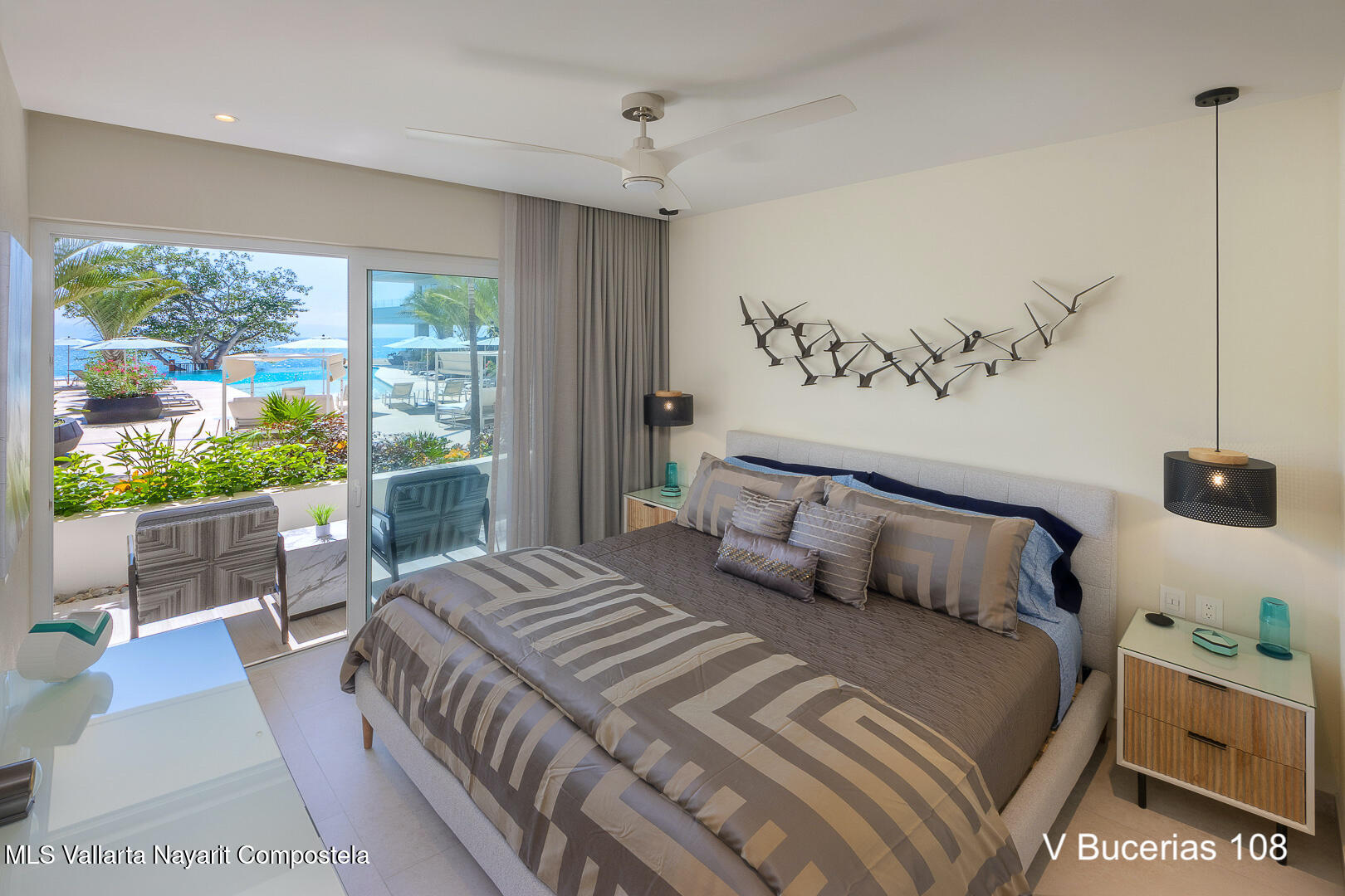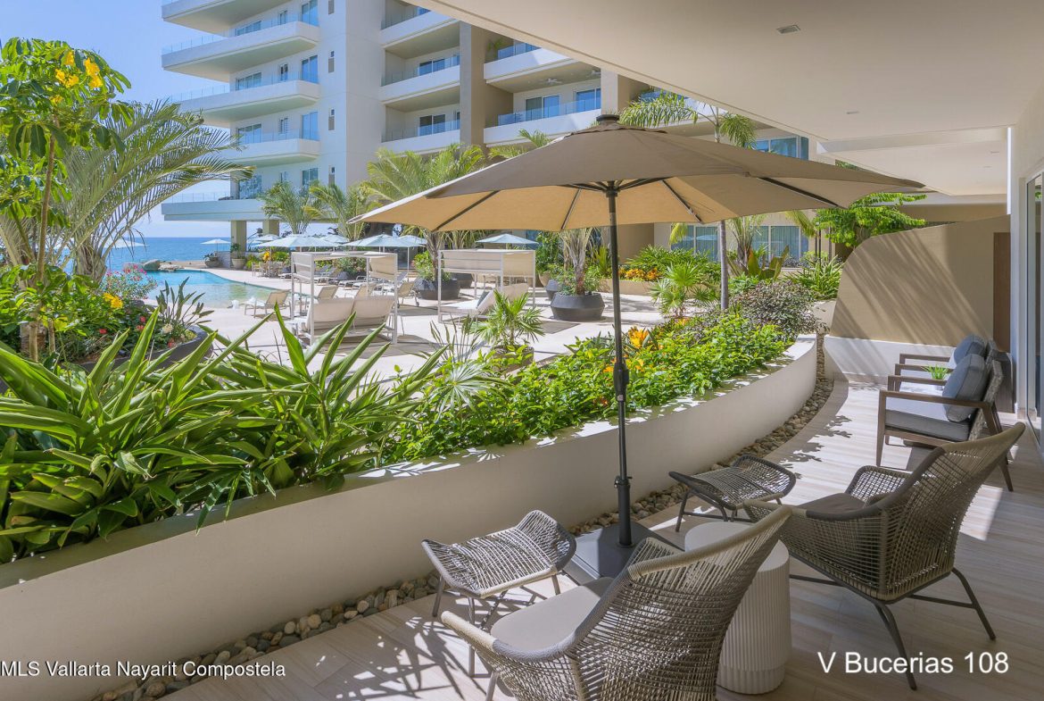 Luxurious Oceanfront Living at V BuceriasDiscover this unique, impeccably furnished, brand-new 2-bedroom condo located on the ground floor of the prestigious V Bucerias complex — one of the most sought-after new developments in Bucerias.Condo V Bucerias 108 offers the perfect blend of sophistication, comfort, and coastal living. Thoughtfully designed with elegant upgrades and high-end finishes, this move-in-ready home is ideal for anyone dreaming of a beachfront lifestyle.Step through the welcoming entrance hall, featuring a paneled feature wall and carefully curated artwork that set the tone for the quality and style found throughout. The second bedroom is bright and inviting, with abundant natural light and its own en-suite bathroom.
