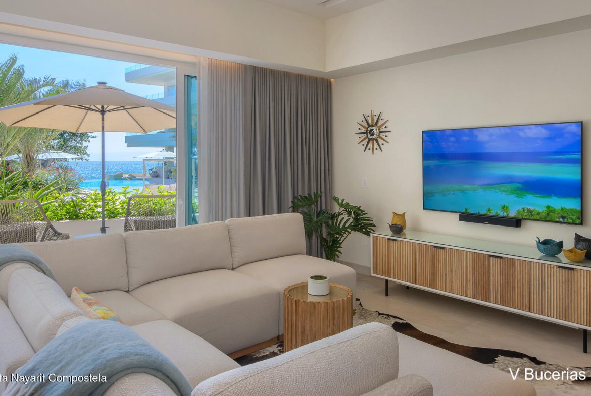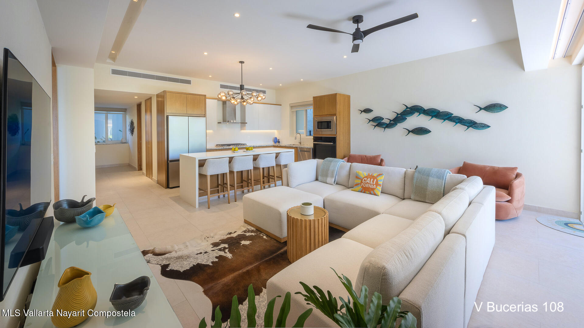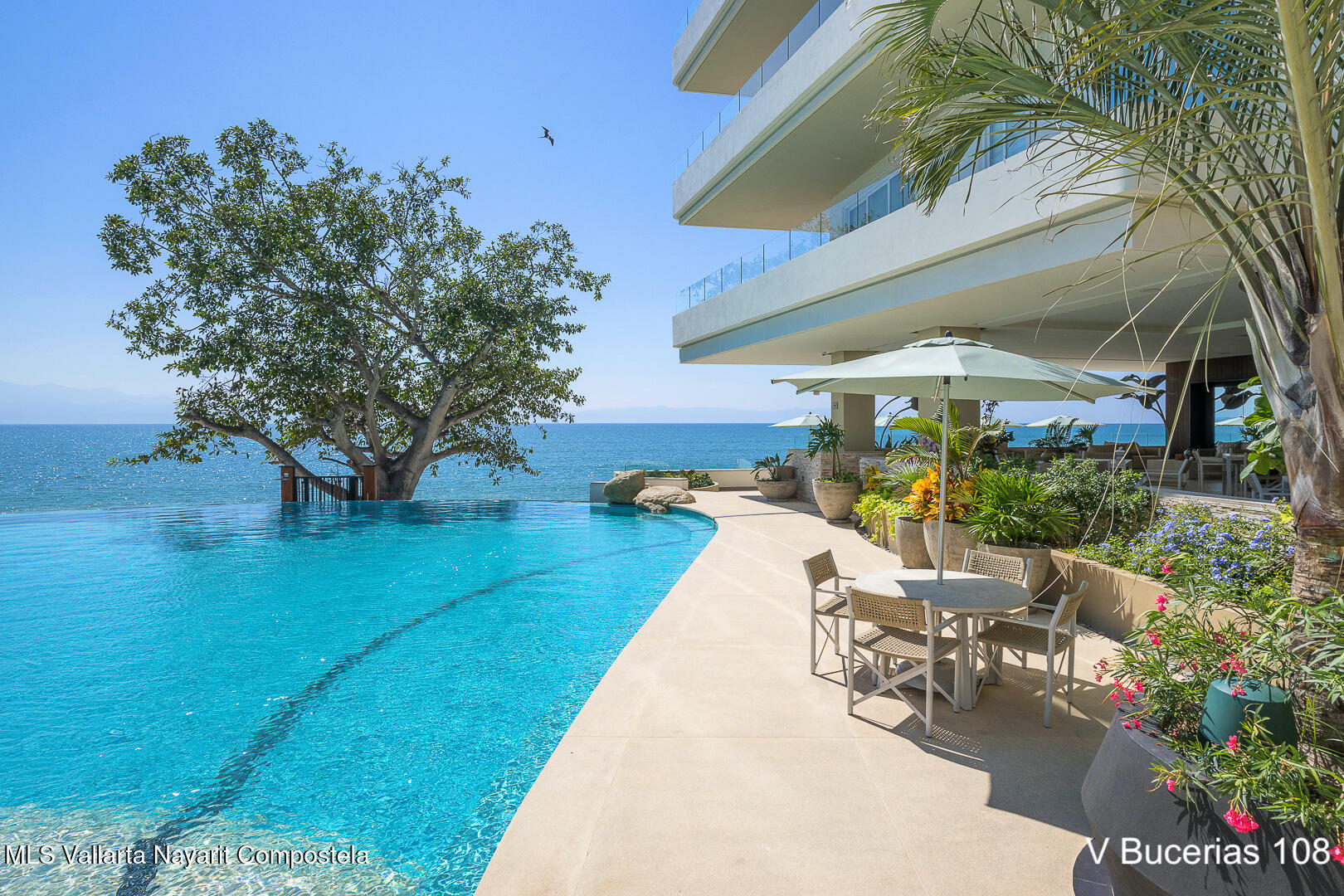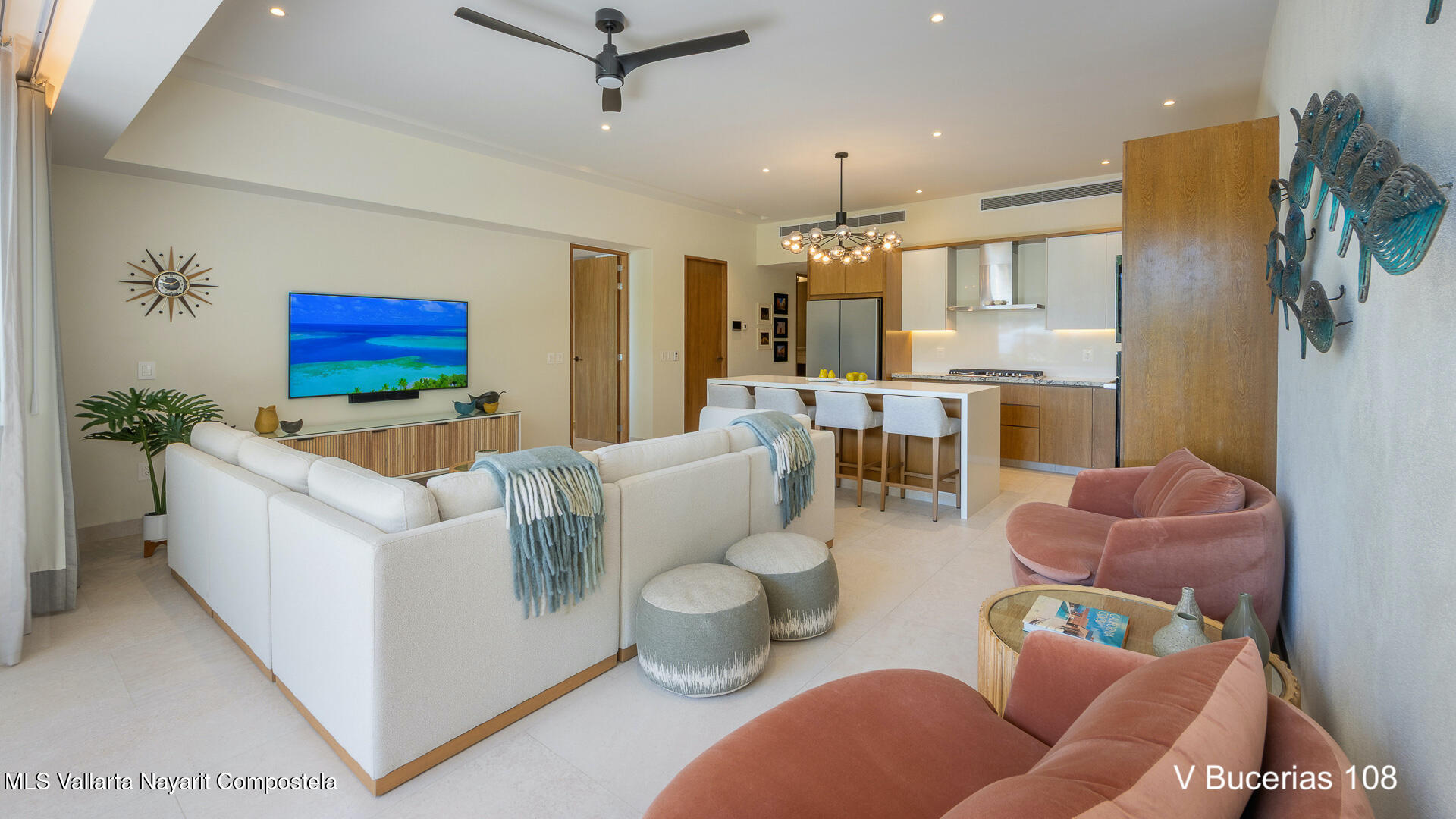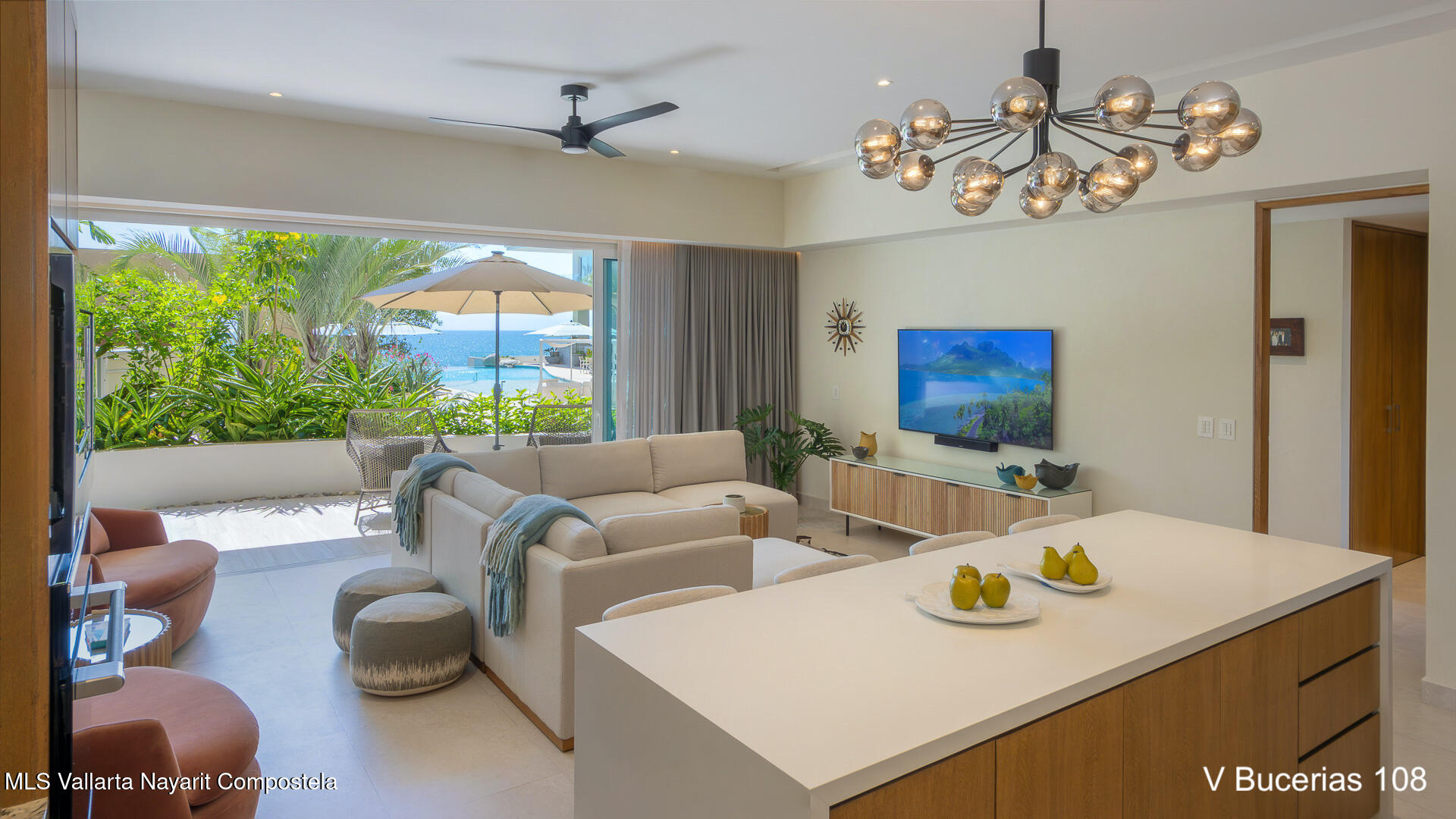 Luxurious Oceanfront Living at V BuceriasDiscover this unique, impeccably furnished, brand-new 2-bedroom condo located on the ground floor of the prestigious V Bucerias complex — one of the most sought-after new developments in Bucerias.Condo V Bucerias 108 offers the perfect blend of sophistication, comfort, and coastal living. Thoughtfully designed with elegant upgrades and high-end finishes, this move-in-ready home is ideal for anyone dreaming of a beachfront lifestyle.Step through the welcoming entrance hall, featuring a paneled feature wall and carefully curated artwork that set the tone for the quality and style found throughout. The second bedroom is bright and inviting, with abundant natural light and its own en-suite bathroom.