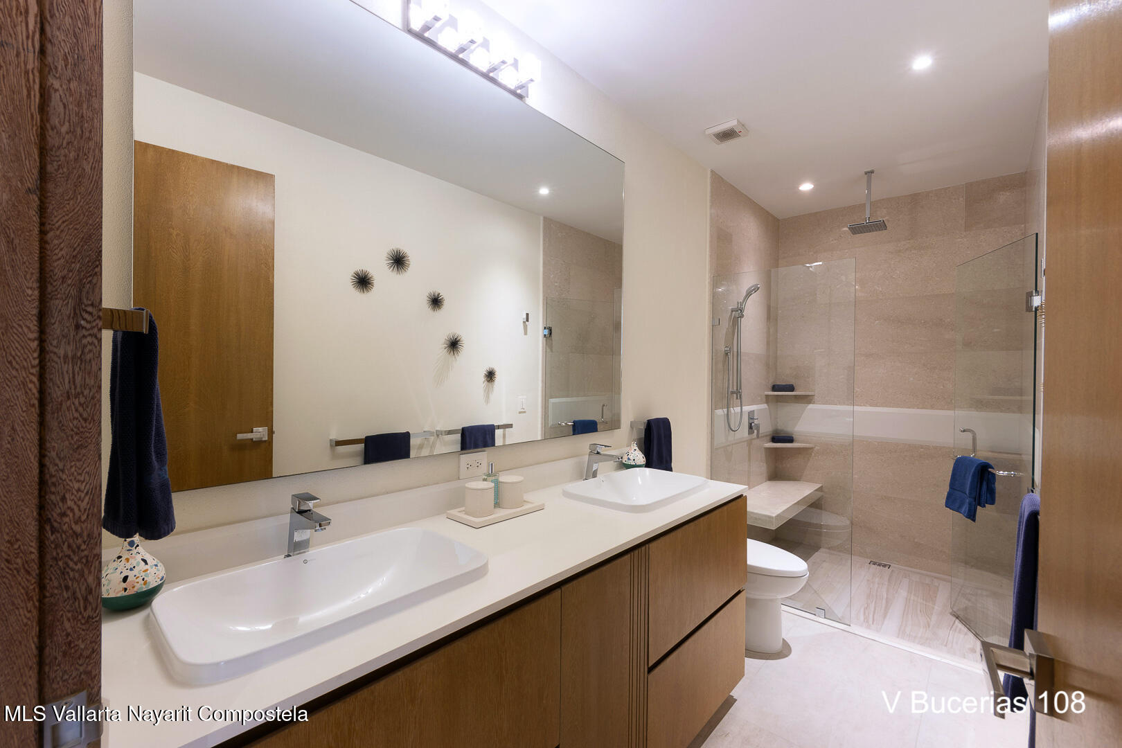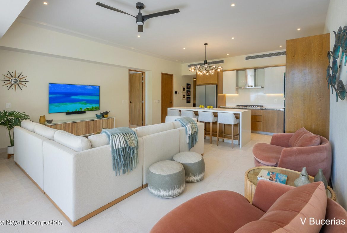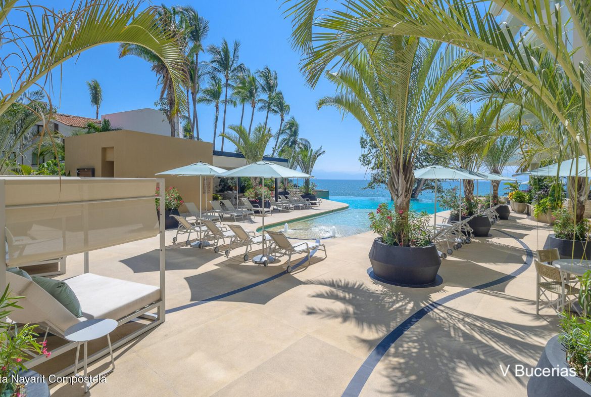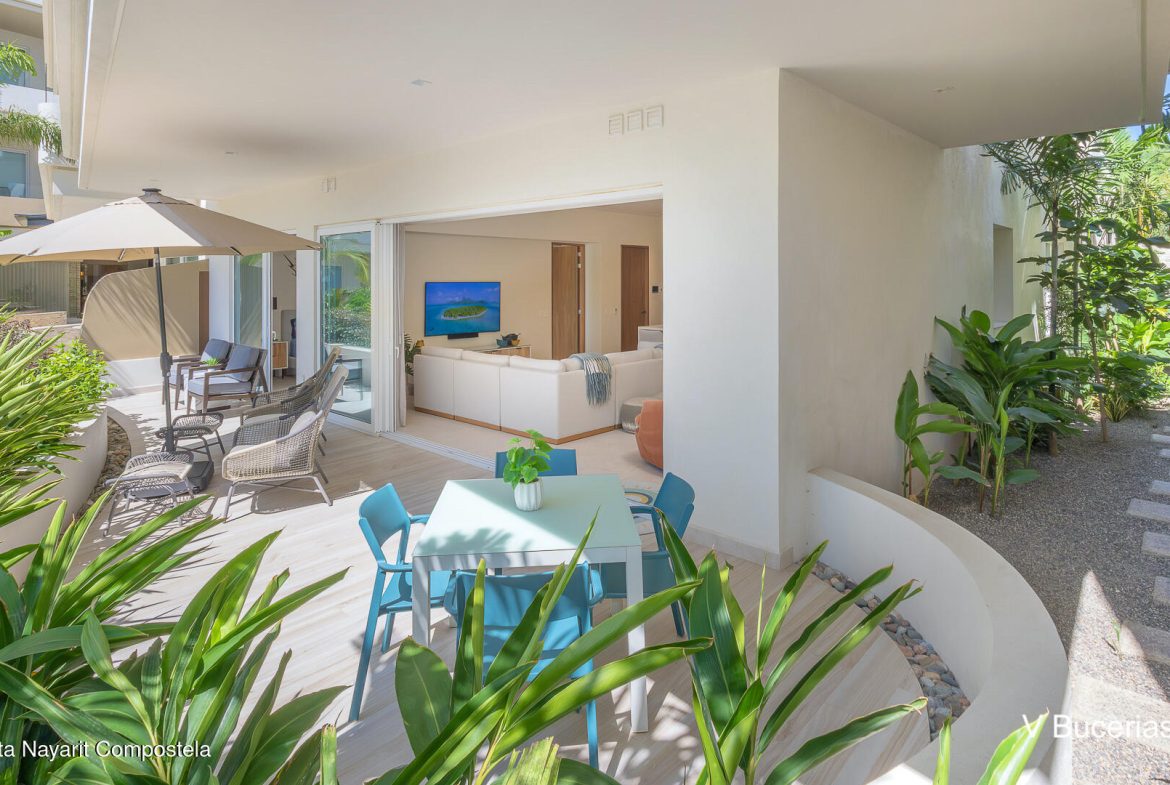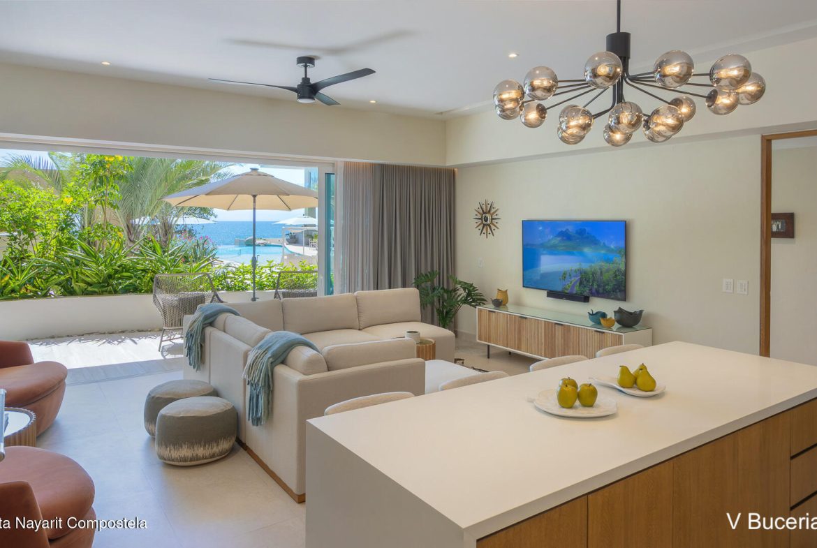 Luxurious Oceanfront Living at V BuceriasDiscover this unique, impeccably furnished, brand-new 2-bedroom condo located on the ground floor of the prestigious V Bucerias complex — one of the most sought-after new developments in Bucerias.Condo V Bucerias 108 offers the perfect blend of sophistication, comfort, and coastal living. Thoughtfully designed with elegant upgrades and high-end finishes, this move-in-ready home is ideal for anyone dreaming of a beachfront lifestyle.Step through the welcoming entrance hall, featuring a paneled feature wall and carefully curated artwork that set the tone for the quality and style found throughout. The second bedroom is bright and inviting, with abundant natural light and its own en-suite bathroom.