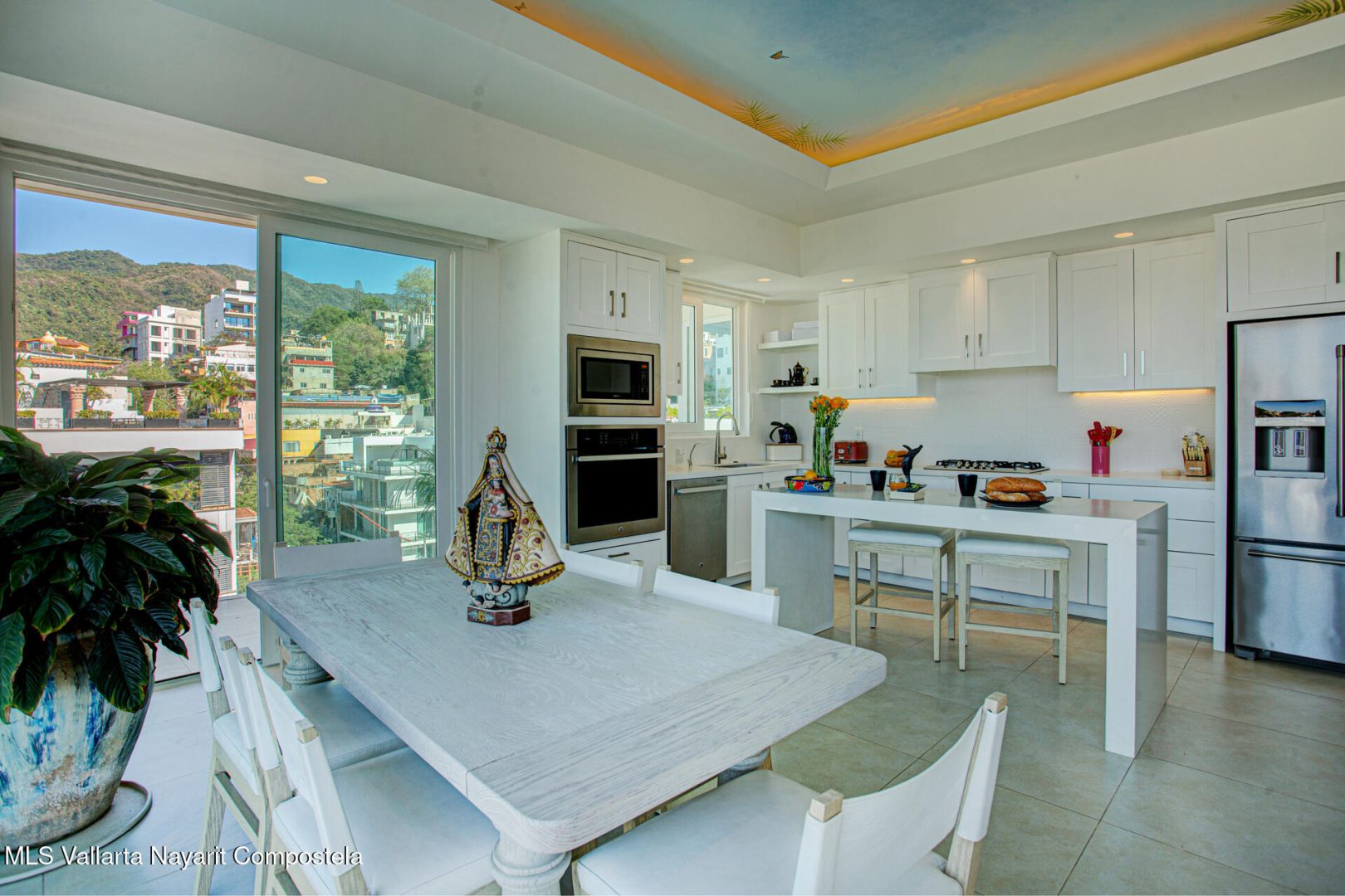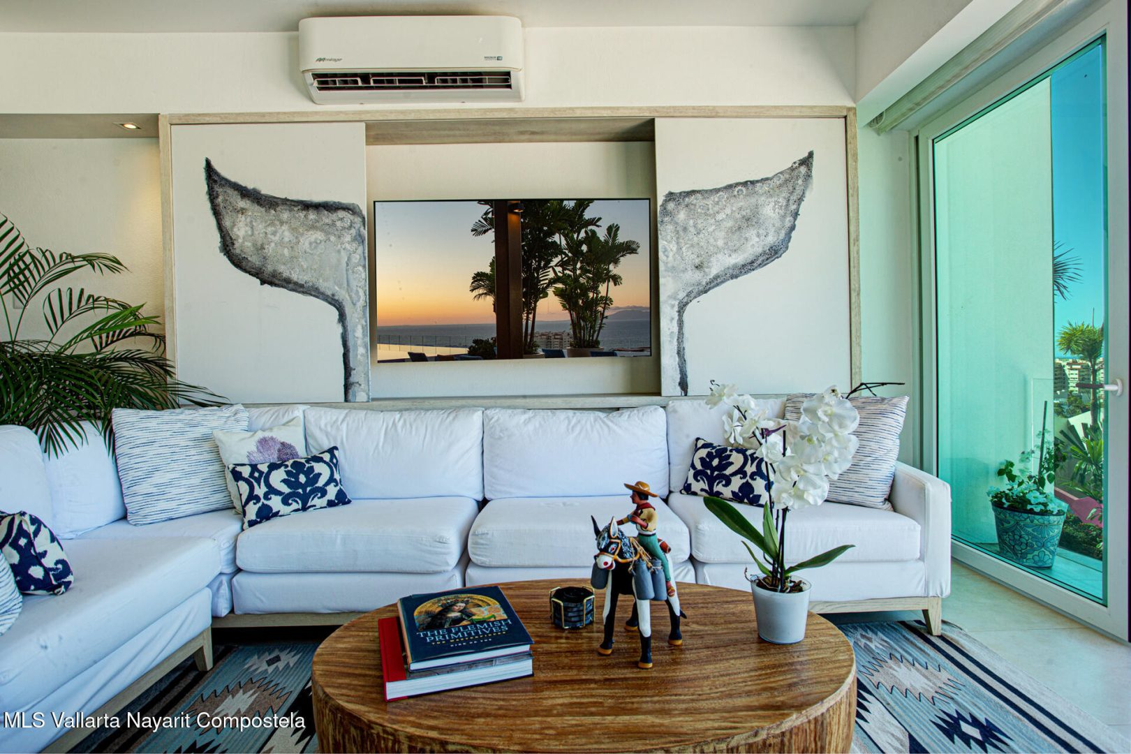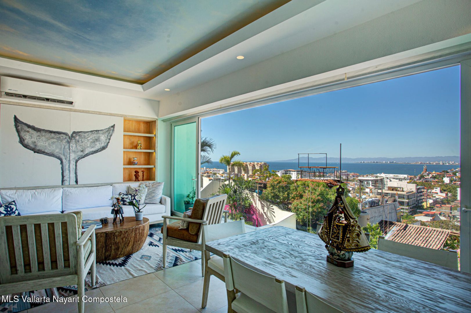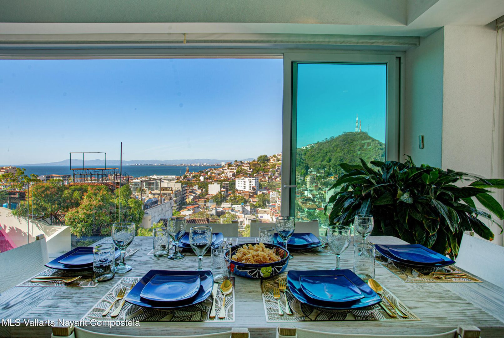 Enjoy breathtaking panoramic views of the ocean, city, and mountains from this light-filled corner residence featuring a wrap-around terrace designed for seamless indoor-outdoor living. Thoughtfully laid out for privacy, the two spacious primary suites are positioned on opposite sides of the condo — each with its own view balcony. A proper laundry room, elegant powder room, and an impressive open-concept living, dining, and kitchen area create the perfect setting for entertaining friends and family in style. The rooftop amenities include a stunning pool, hot tub, kitchen, and fully equipped gym — all offering 360 views. Located just steps from the restaurants, galleries, boutiques, and nightlife of the Romantic Zone, this impeccably maintained complex also offers 24-hour security,