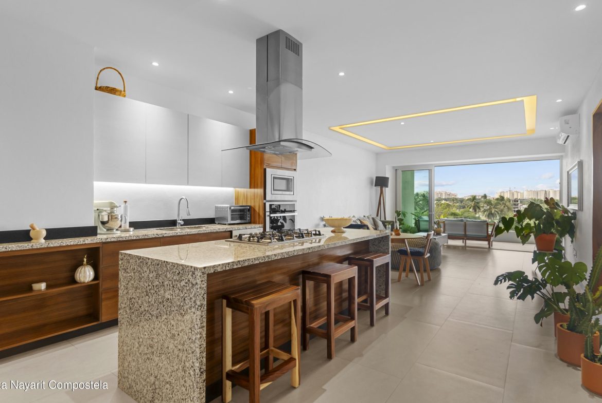 Discover luxury and exclusivity in this spectacular apartment at V Golf, located in the heart of Marina Vallarta. With 169m of construction, this fully furnished property offers 2 bedrooms, 2 full bathrooms, and panoramic views of the city and golf course. Situated on the 3rd floor of a high-end development, it features top-quality finishes, spacious terraces, a professional gym with ocean views, a resort-style pool, saltwater jacuzzis, a rooftop garden, BBQ area, fire pit, and private parking. Live near beaches, restaurants, art galleries, spas, supermarkets, schools, and hospitals, just 5 miles from the boardwalk. Ideal for those seeking comfort, exclusivity, and high appreciation value in Puerto Vallarta.