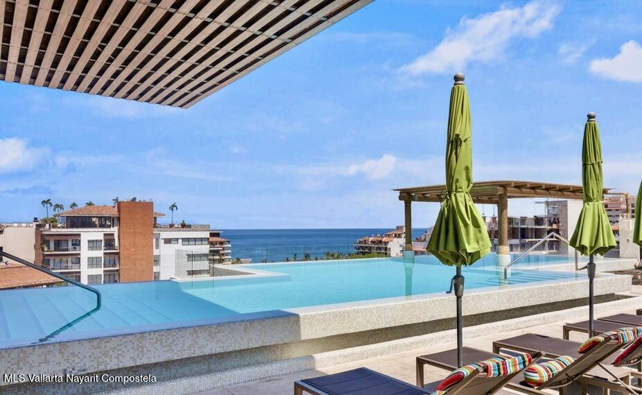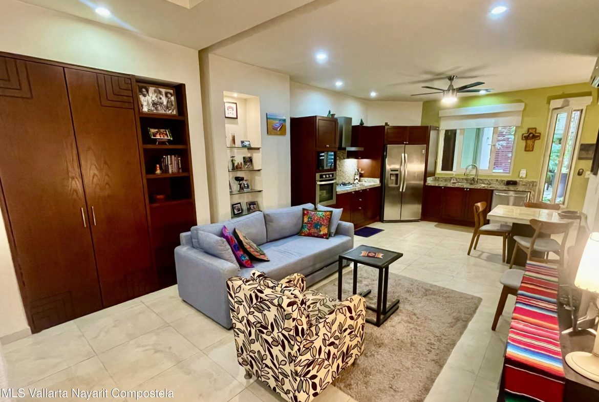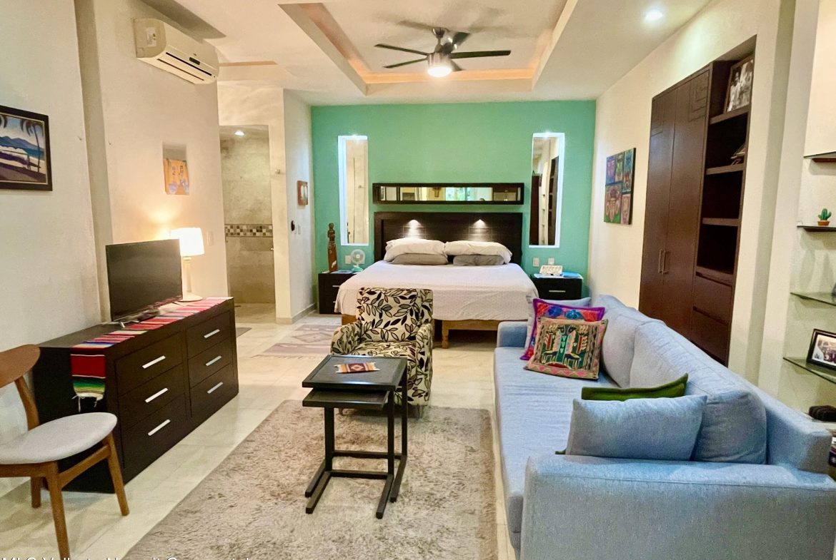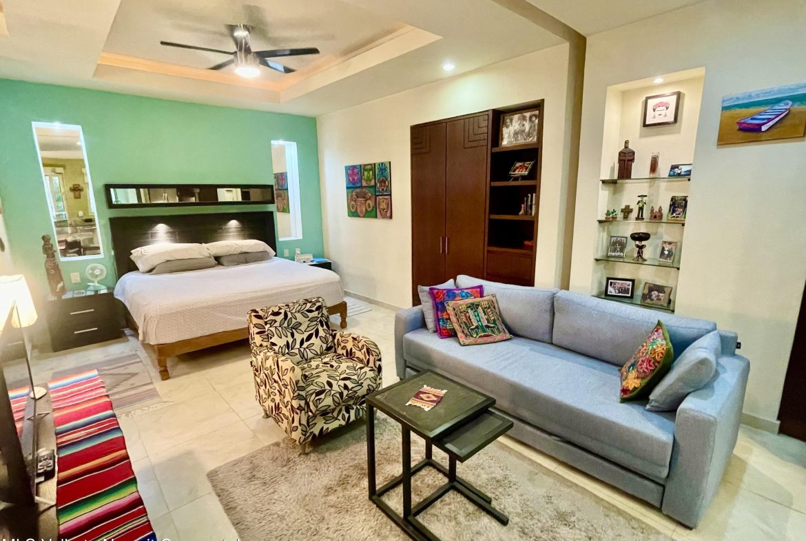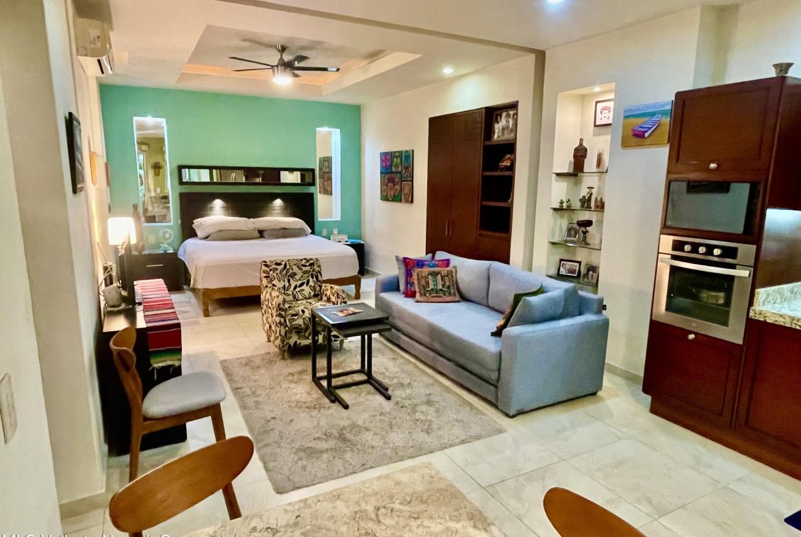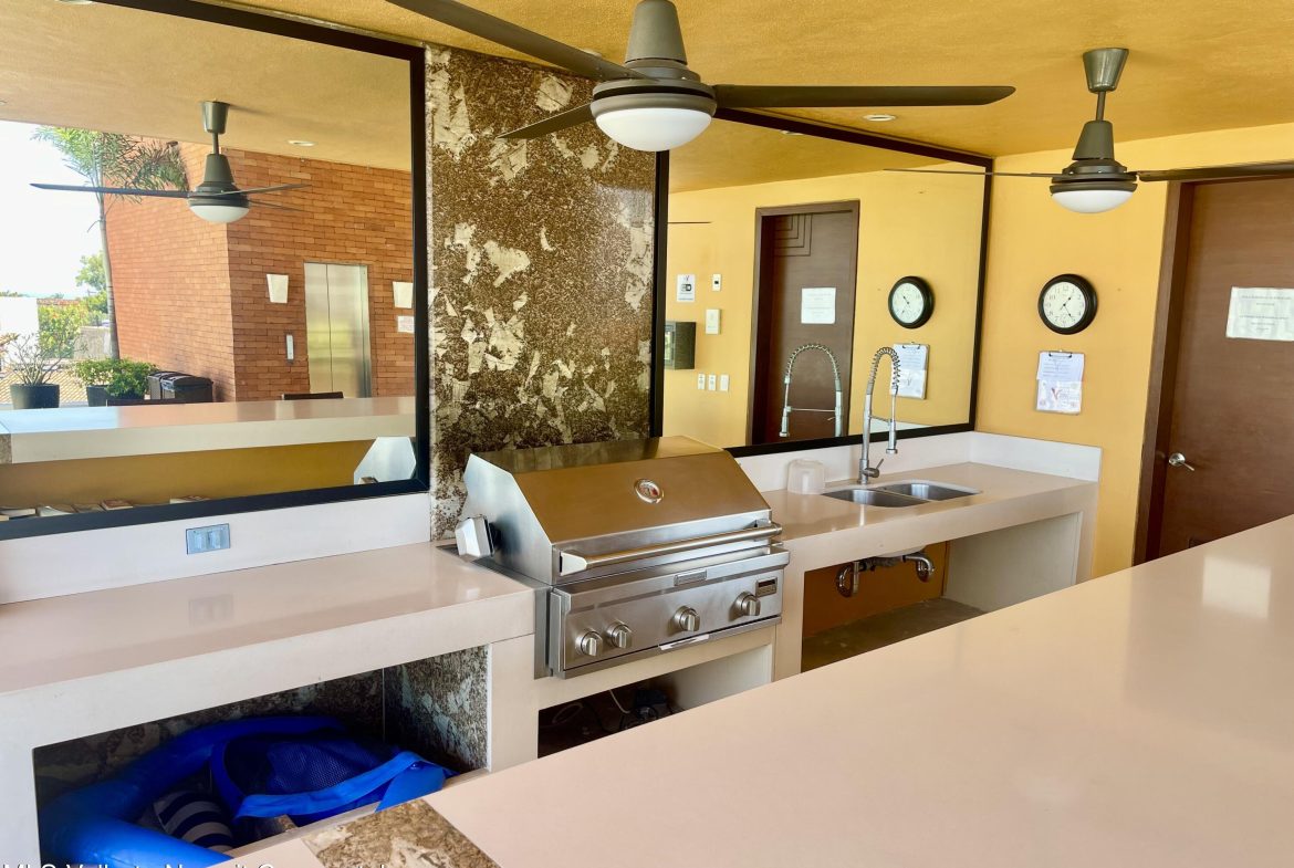 This studio condo in the V399 building offers comfort and privacy in an amazing location. The rooftop features a heated pool, Jacuzzi, BBQ grill, bar, with dining and lounging areas. Stunning views of the Bay, Mountains, and Puerto Vallarta. The studio condo has one-bath, a king bed, high-speed Wi-Fi, smart TV, air conditioning, a fully equipped kitchen, washer and dryer and a storage unit.