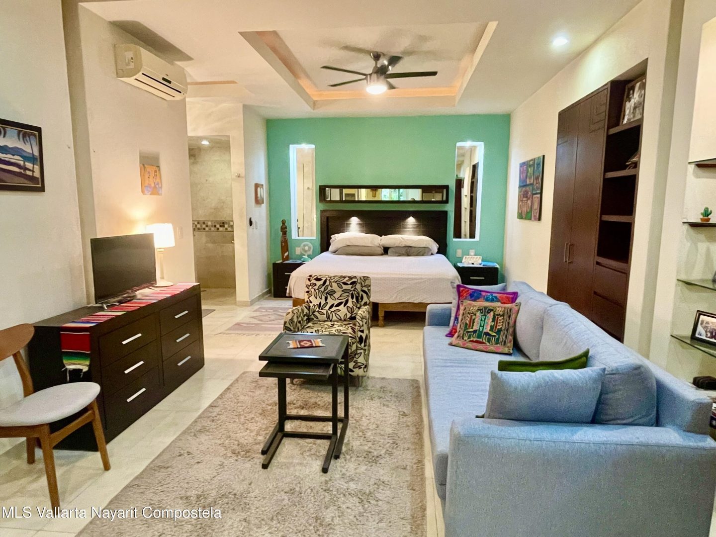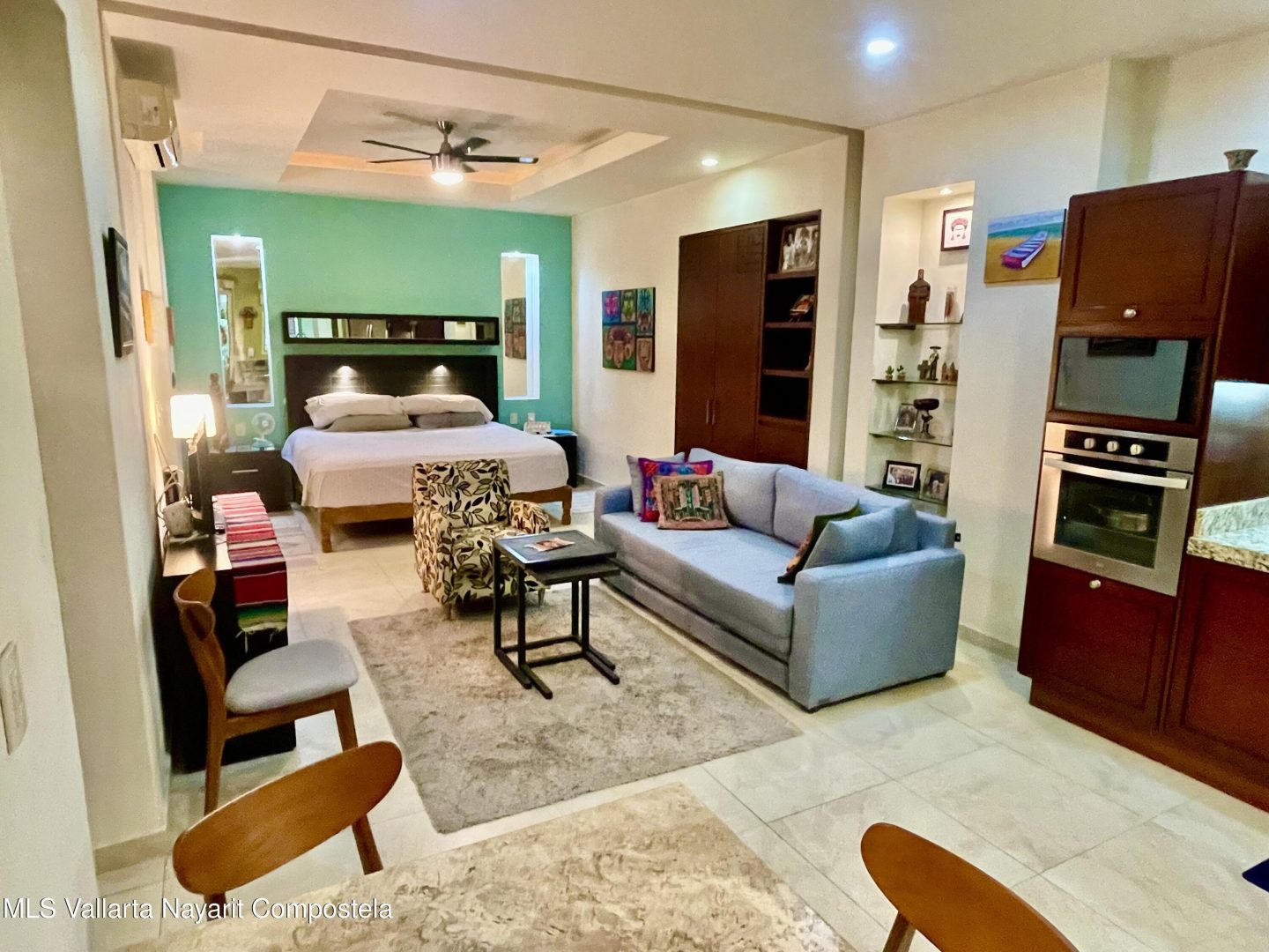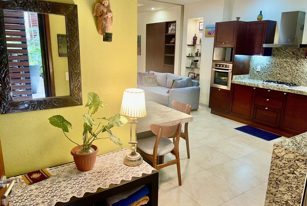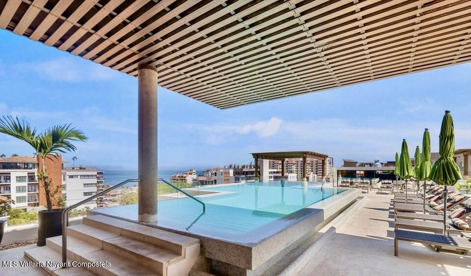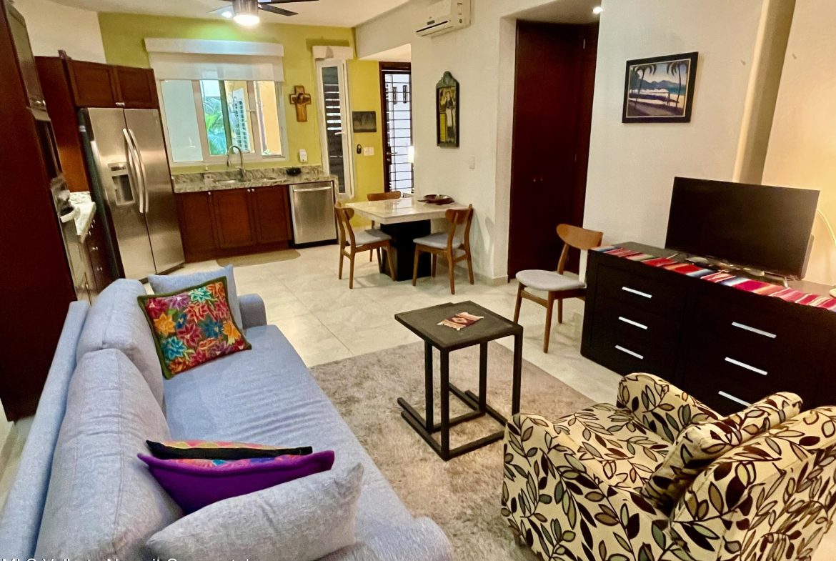 This studio condo in the V399 building offers comfort and privacy in an amazing location. The rooftop features a heated pool, Jacuzzi, BBQ grill, bar, with dining and lounging areas. Stunning views of the Bay, Mountains, and Puerto Vallarta. The studio condo has one-bath, a king bed, high-speed Wi-Fi, smart TV, air conditioning, a fully equipped kitchen, washer and dryer and a storage unit.
