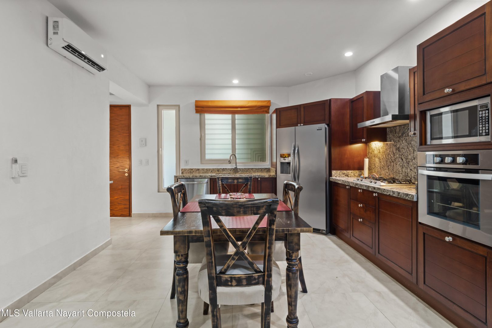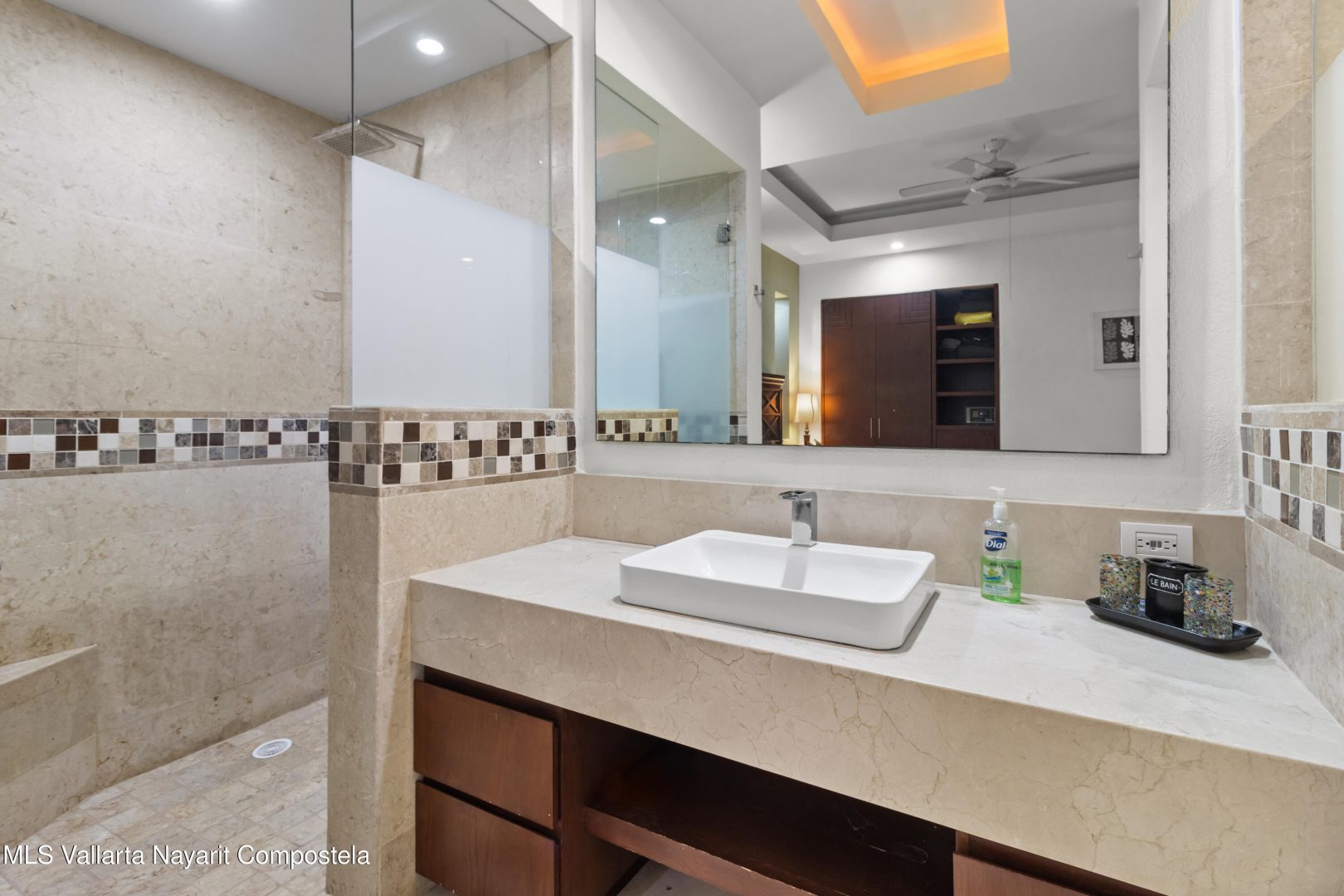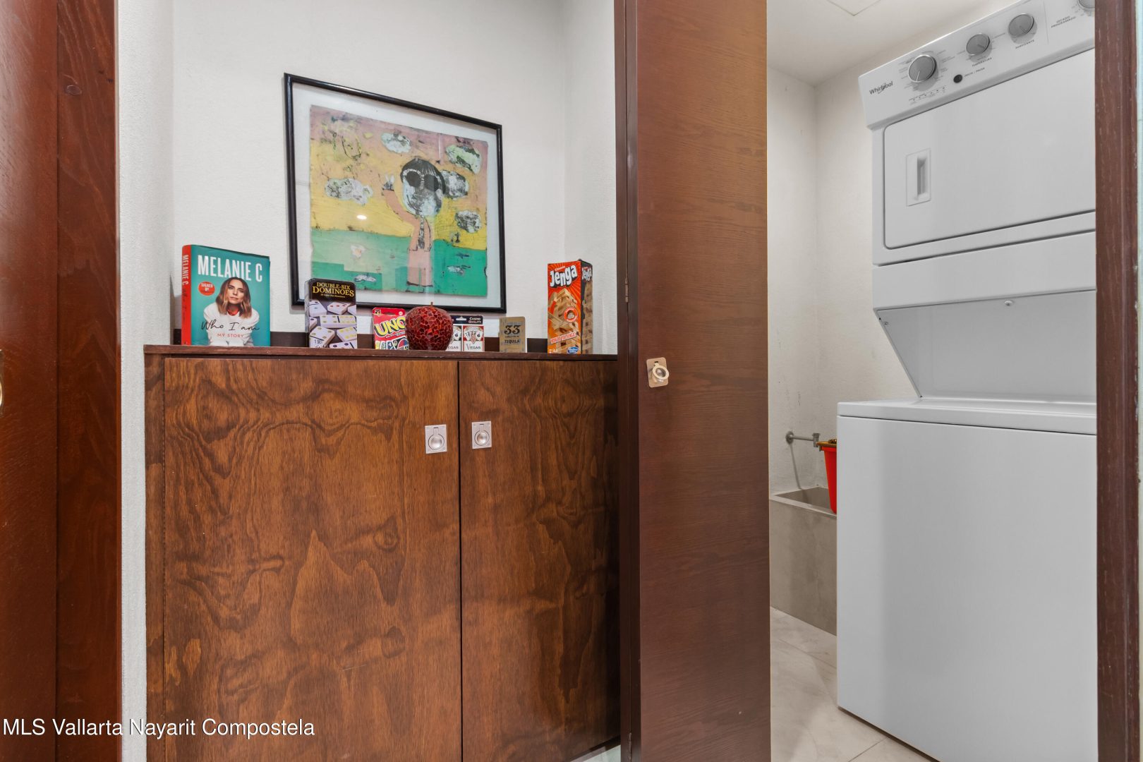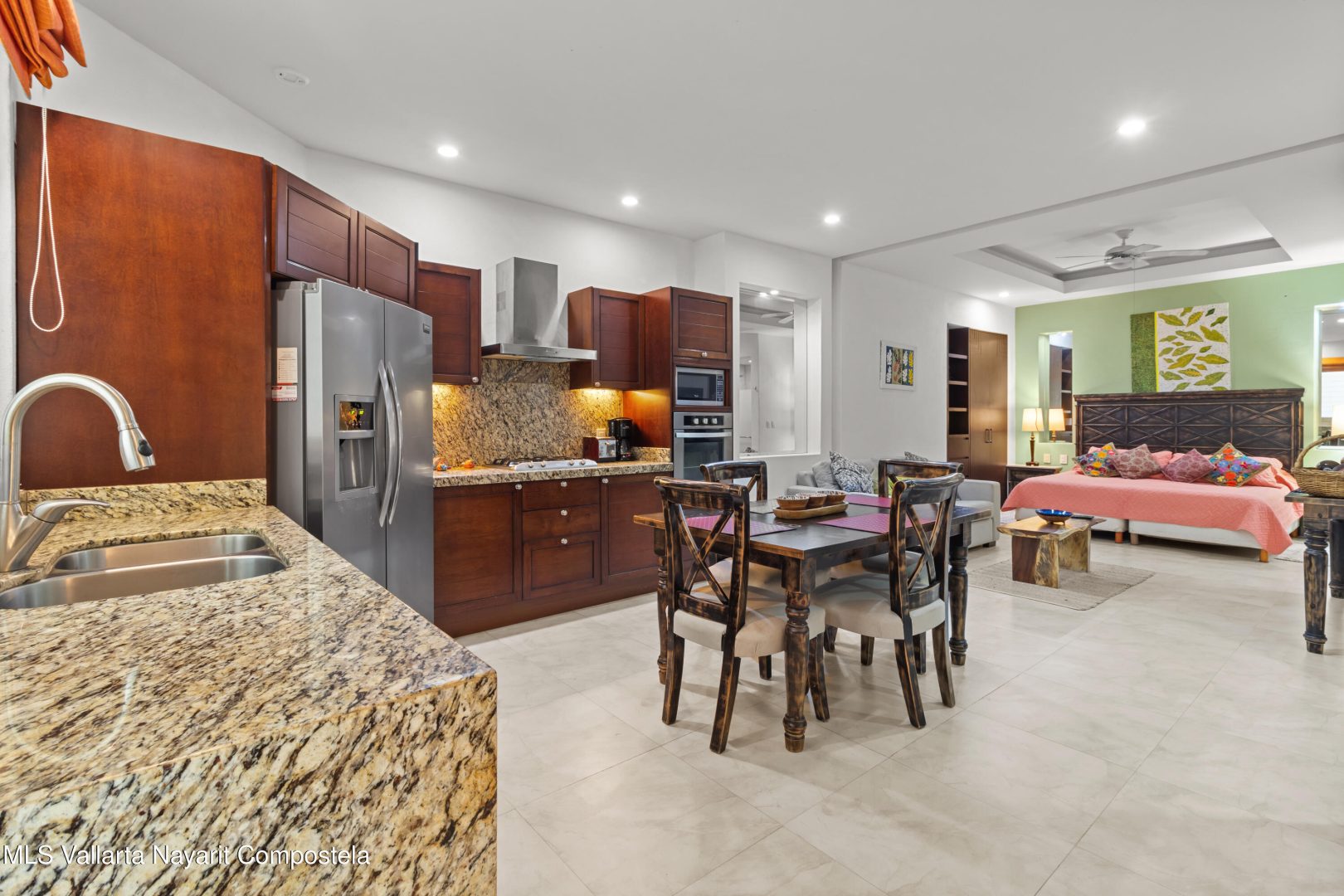 This sophisticated condo offers a perfect blend of comfort and privacy. Located on the 3rd-floor. The rooftop terrace boasts a heated infinity pool, Jacuzzi, BBQ grill, bar, and areas for dining and lounging, all with stunning 360-degree views of the Bay of Banderas, Sierra Madre Mountains, and Puerto Vallarta’s city lights. The remodeled one-bedroom, one-bath unit features a king-size bed, high-speed Wi-Fi, smart TV, air conditioning, a fully equipped kitchen, full-sized washer and dryer, and private parking and storage.