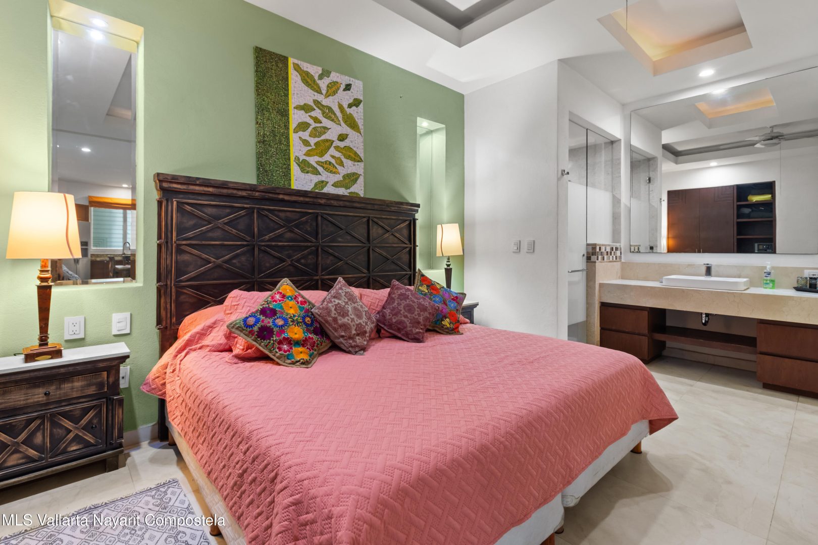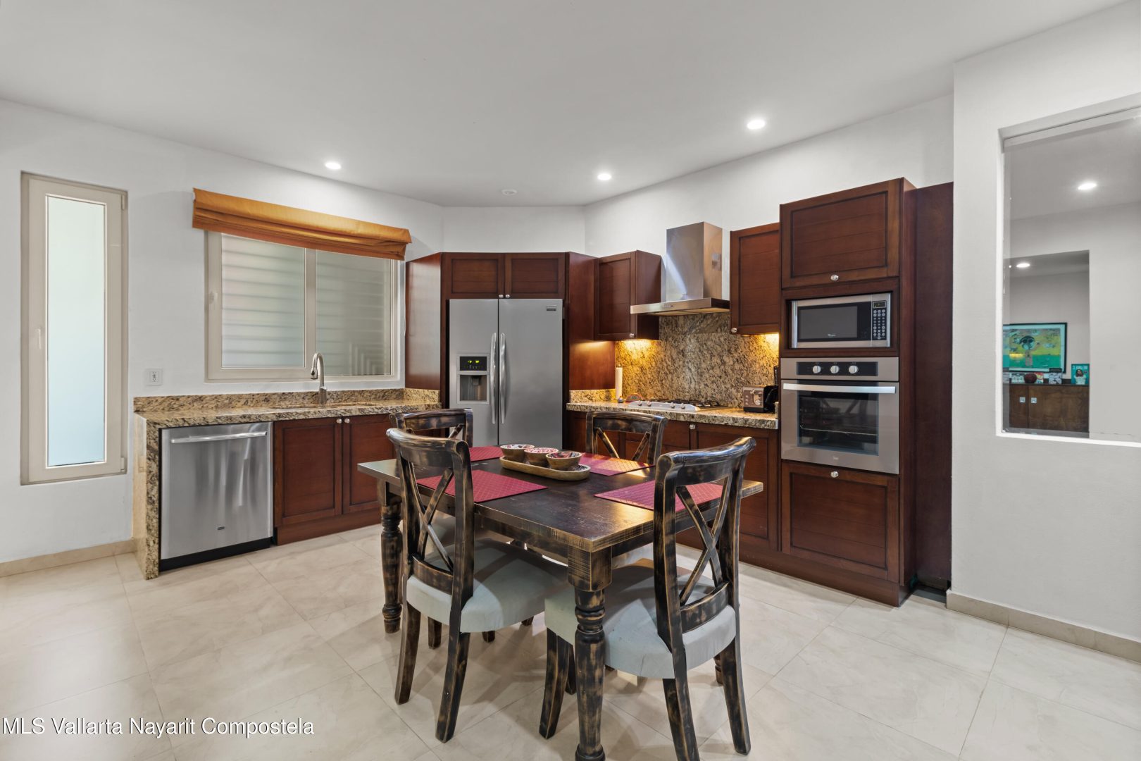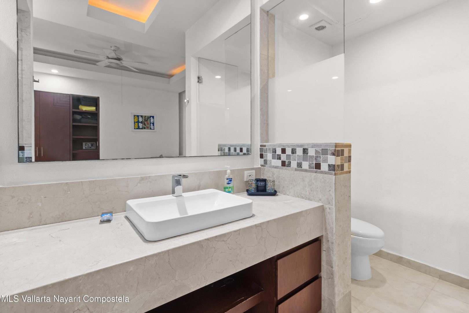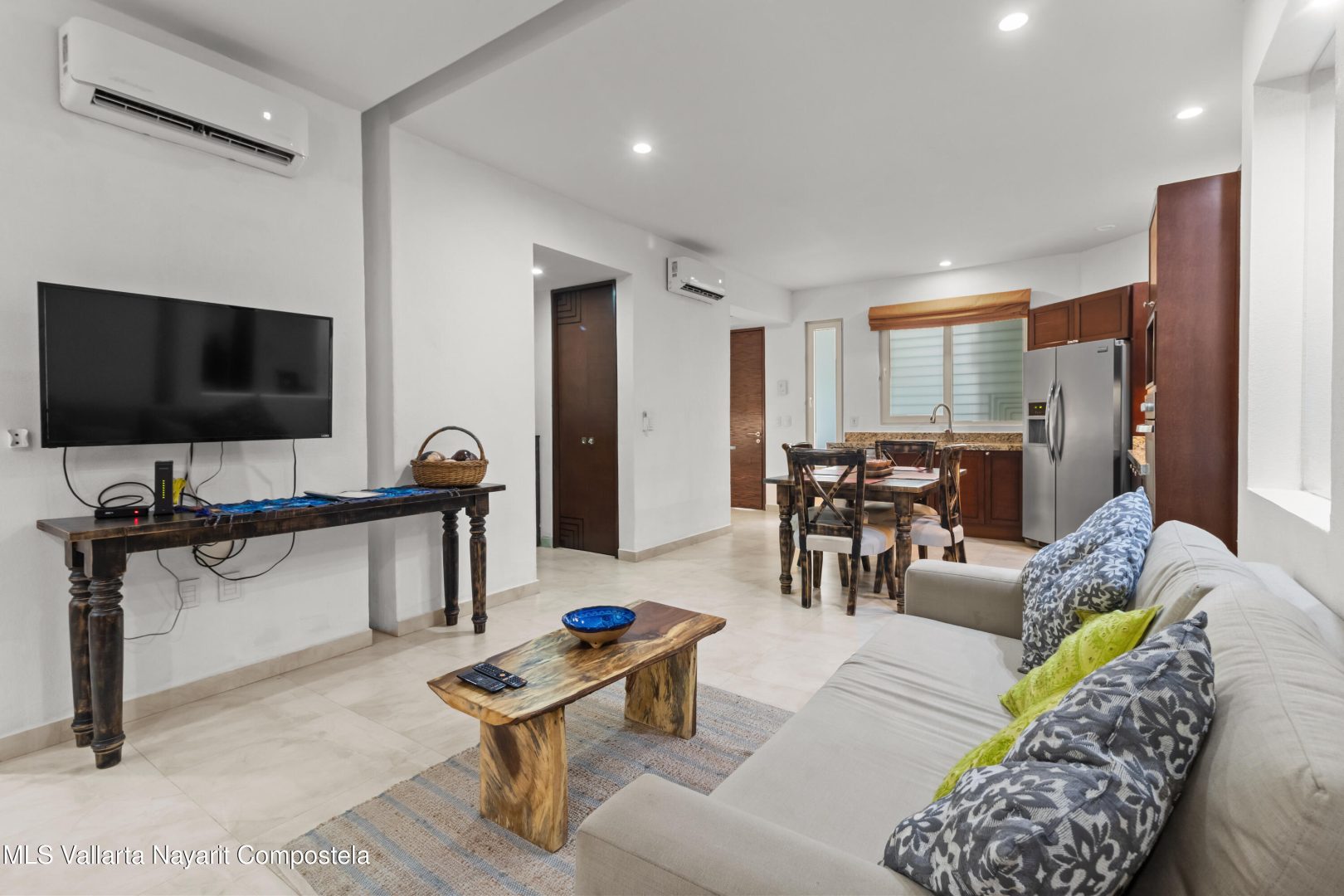 This sophisticated condo offers a perfect blend of comfort and privacy. Located on the 3rd-floor. The rooftop terrace boasts a heated infinity pool, Jacuzzi, BBQ grill, bar, and areas for dining and lounging, all with stunning 360-degree views of the Bay of Banderas, Sierra Madre Mountains, and Puerto Vallarta’s city lights. The remodeled one-bedroom, one-bath unit features a king-size bed, high-speed Wi-Fi, smart TV, air conditioning, a fully equipped kitchen, full-sized washer and dryer, and private parking and storage.