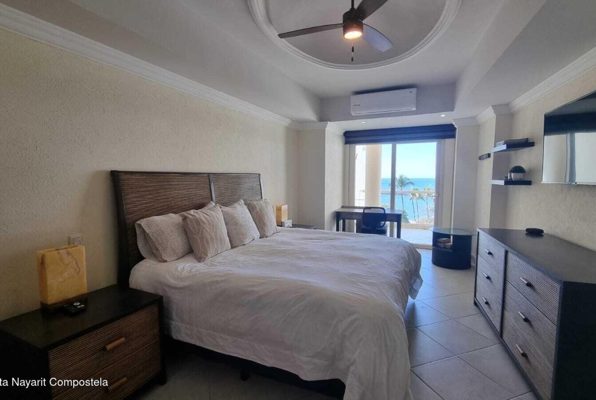 This very well maintained unit located in Nuevo Vallarta on a fourth floor; 3 bedroom 2 bathroom, ocean front unit has some of the best views of the bay. Frontal direct ocean view and its backside has the Marina view. Heated pool, best beach of the bay, and within walking distance to Nuevo Vallarta’s best restaurants. Featuring 3 spacious bedrooms, 2 full bathrooms, and a bright and airy open living area. This beautiful condominium is ideal for those looking for a relaxing home or income generator investment. This condo is absolutely turn key. This is an excellent opportunity to make this condo your home or your investment. It won’t last!