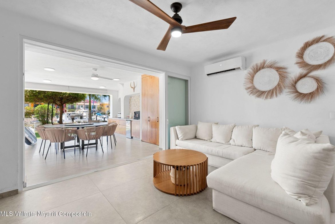 (English below)Bienvenido a esta residencia de 3 pisos, bellamente renovada, ubicada en la codiciada comunidad Puerto Iguana, un exclusivo coto privado junto a los pintorescos canales en el corazon de Marina Vallarta. Combinando la comodidad moderna con el encanto costero, esta espaciosa casa ha sido cuidadosamente renovada de arriba a abajo, incluyendo nuevo cableado electrico, plomeria, pisos, paredes y paneles solares, lo que garantiza eficiencia energetica y tranquilidad.Al entrar, descubre un diseno abierto y sin interrupciones donde la cocina y la sala de estar se integran a la perfeccion con un exuberante patio privado con vista al tranquilo canal. Es el entorno perfecto para cenar al aire libre, relajarse con un cafe por la manana o contemplar los veleros pasar bajo el sol de