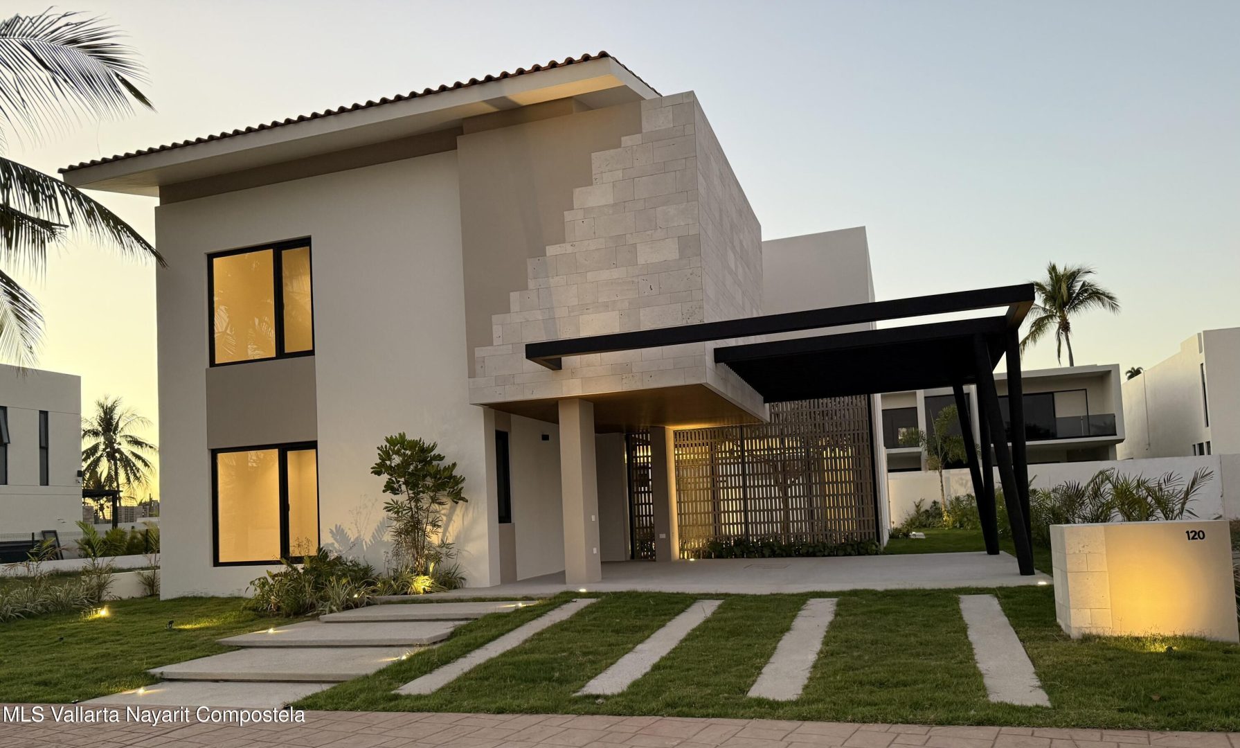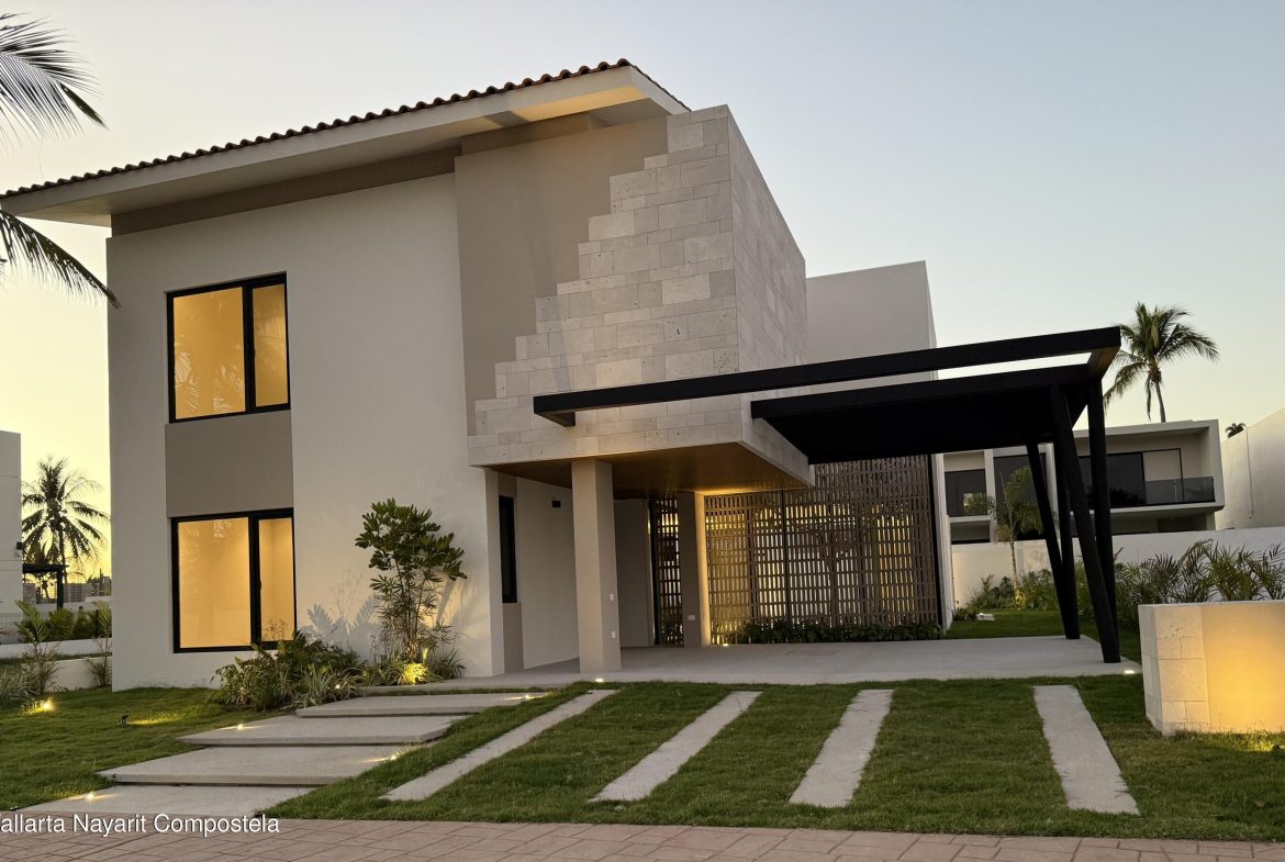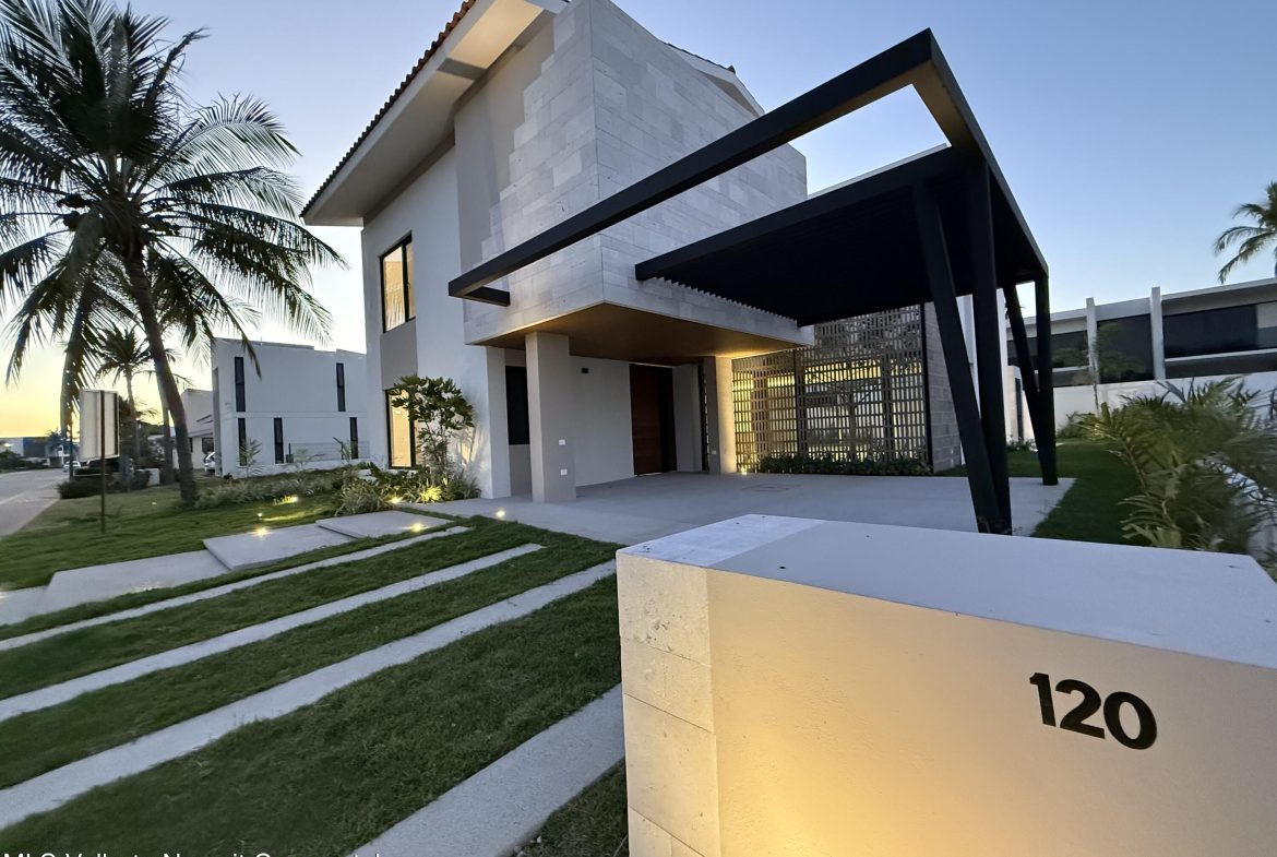 Presenting Villa Acacia 120 located inside the prestigious community of Los Tigres in Nuevo Vallarta. This sumptuous Villa has 4 bedrooms, 5 full bathrooms, pool and whirlpool tub, 4 vehicle garage, with two covered. This residence was designed and planned with a luxurious vision to accommodate the most demanding family. The Villa’s modern facade with stone and fiorito marble finishes, partially covered pergola abuts on an interior garden. Equipped kitchen with state of the art efficient quality appliances; the living room opens to the terrace and pool, incorporating interior and exterior areas. The Villa was conceptualized and designed by renowned architect Paulo Rojo who is known for his unique and original designs. Only the best quality materials available were utilized.
