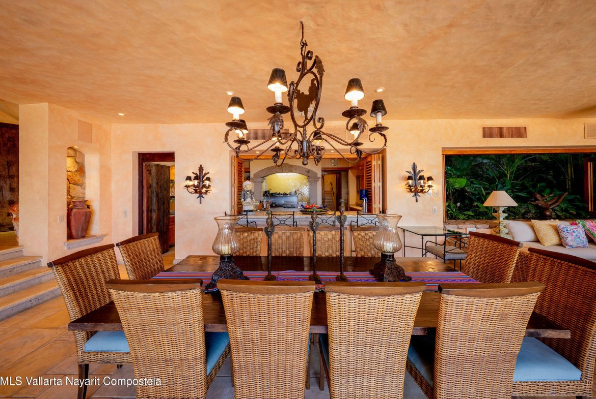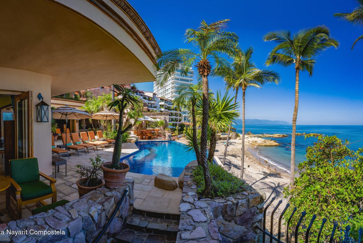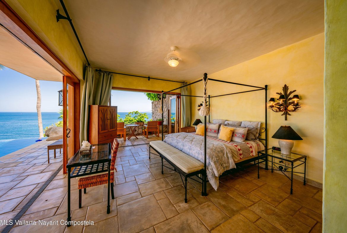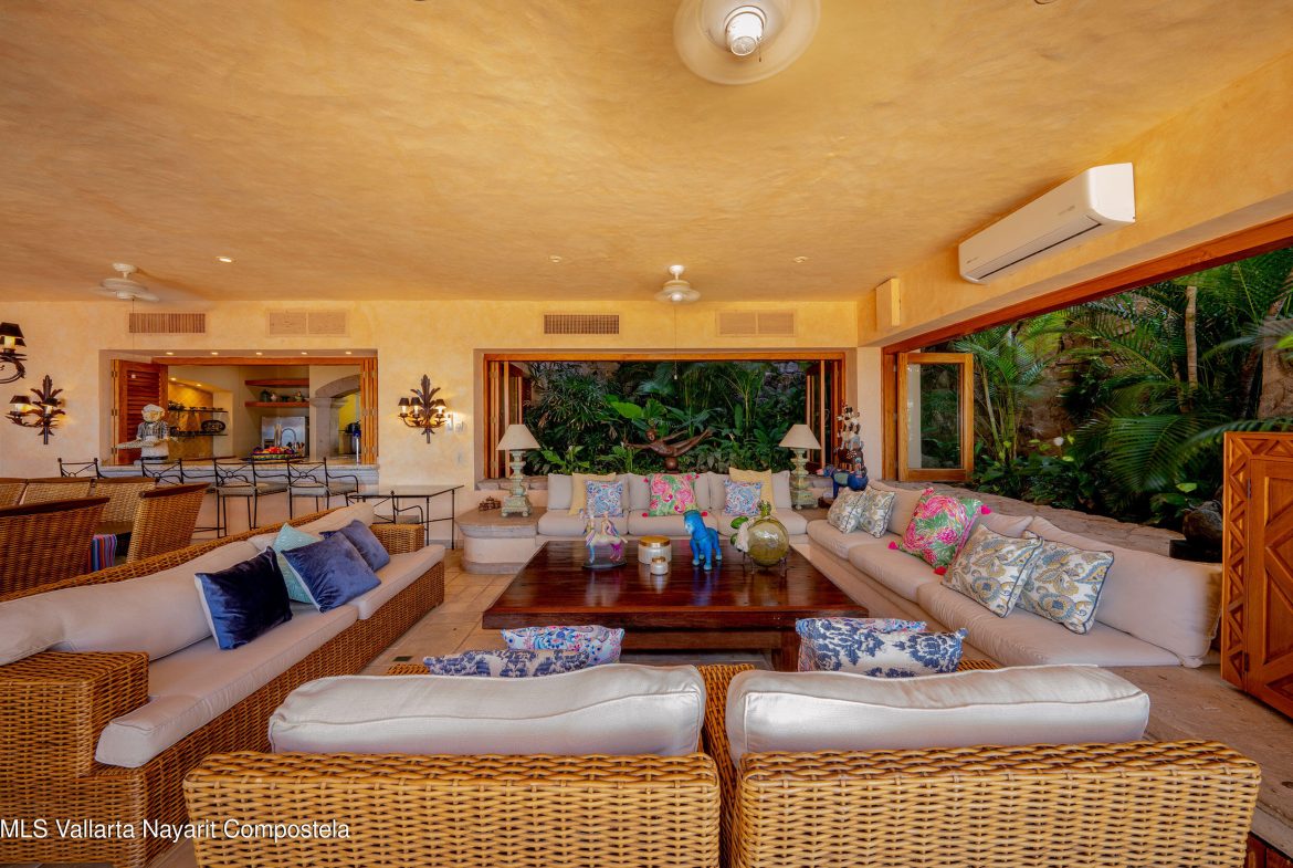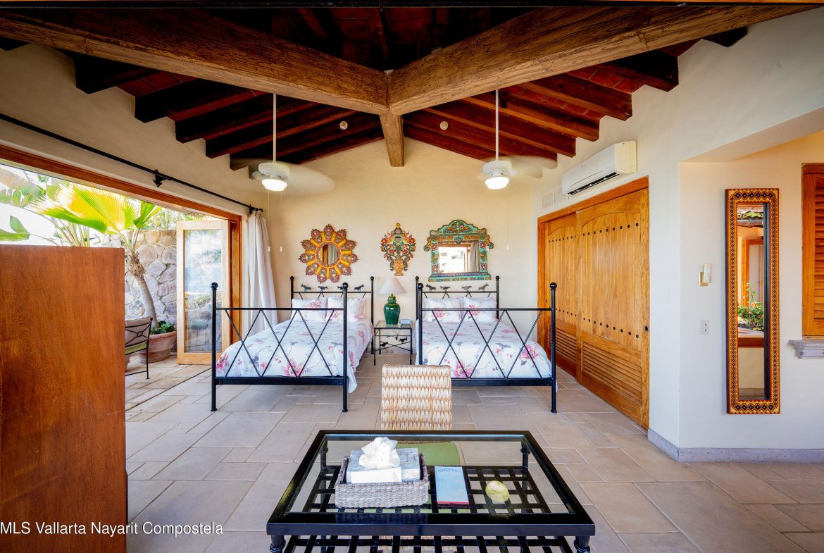 Villa Amapas I – North VillaPuerto Vallarta, Lower Conchas ChinasThere’s a version of Puerto Vallarta that people imagine when they first fall in love with the idea of it–and this is it. Villa Amapas I is the kind of home that has watched decades of golden sunsets slide into the Pacific. It’s perched just above the sand in Lower Conchas Chinas, close enough to town to walk, but far enough that the only sound at night is the surf below.Inside, the villa is layered with the kind of detail that doesn’t happen by accident. Vaulted red-tile roofs with exposed beams. Walls of warm stone. Niches tucked with sculpture. Murals. Arches. Ironwork. Peter Bowman, named one of Architectural Digest’s top 100 designers, left his signature in several corners!