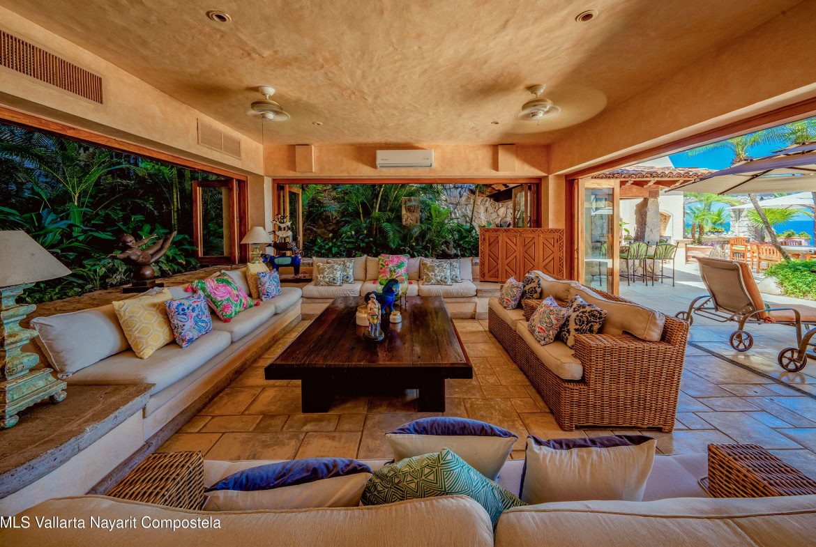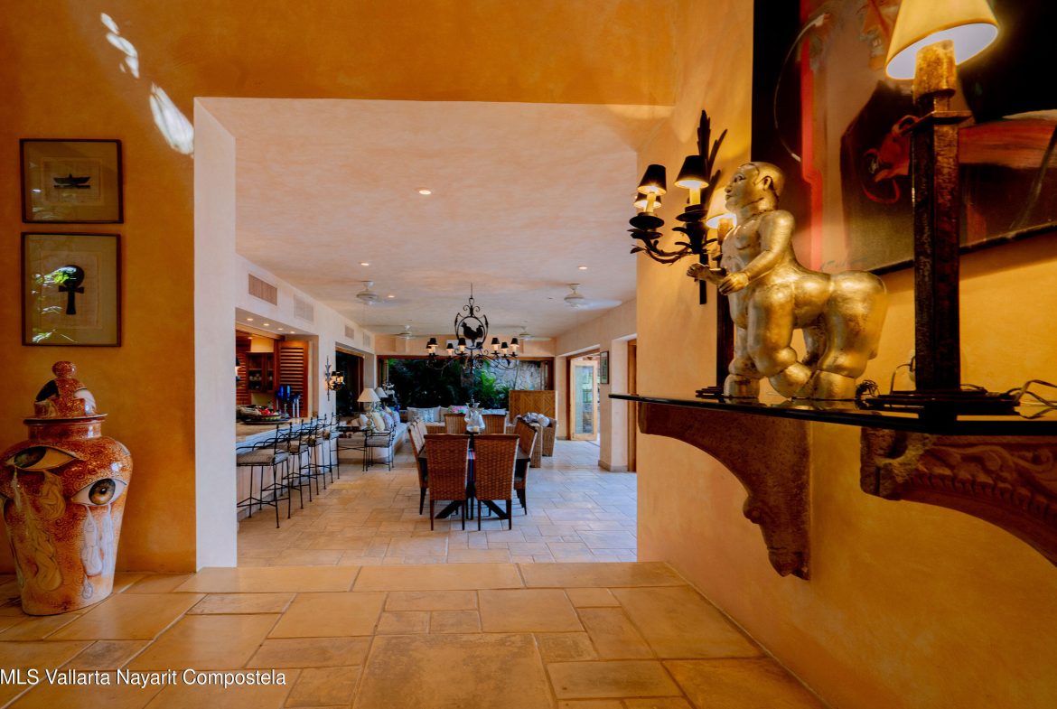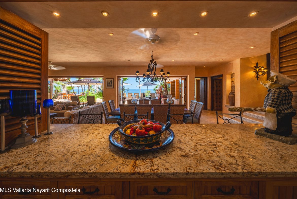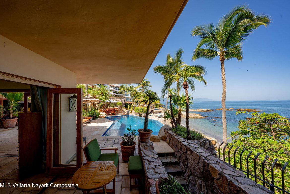 Villa Amapas I – North VillaPuerto Vallarta, Lower Conchas ChinasThere’s a version of Puerto Vallarta that people imagine when they first fall in love with the idea of it–and this is it. Villa Amapas I is the kind of home that has watched decades of golden sunsets slide into the Pacific. It’s perched just above the sand in Lower Conchas Chinas, close enough to town to walk, but far enough that the only sound at night is the surf below.Inside, the villa is layered with the kind of detail that doesn’t happen by accident. Vaulted red-tile roofs with exposed beams. Walls of warm stone. Niches tucked with sculpture. Murals. Arches. Ironwork. Peter Bowman, named one of Architectural Digest’s top 100 designers, left his signature in several corners!
