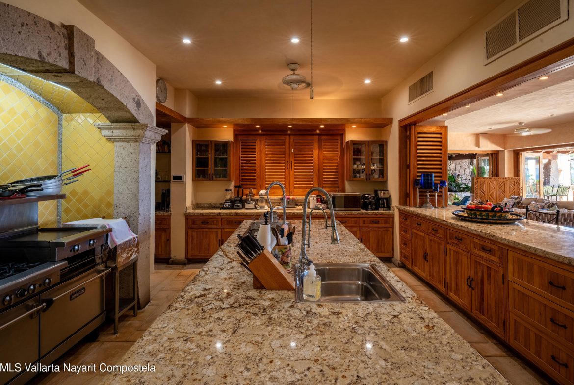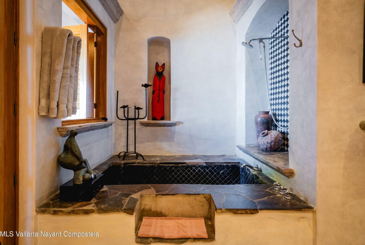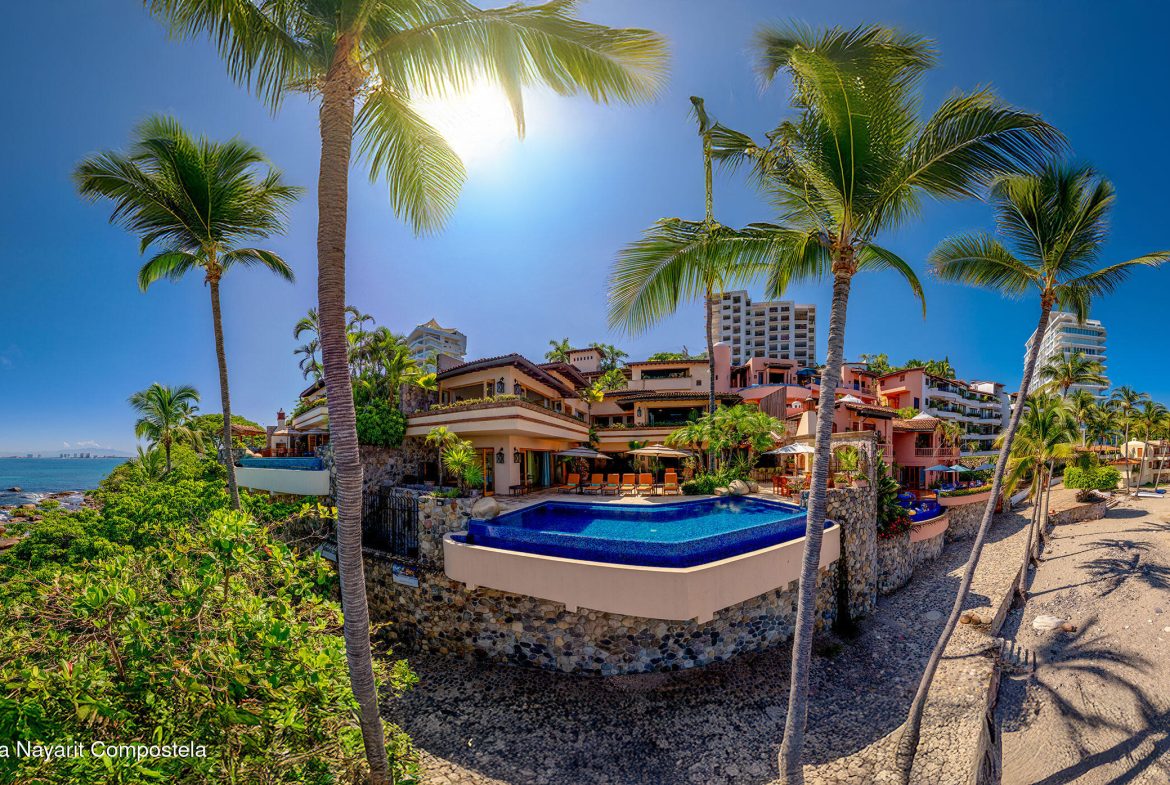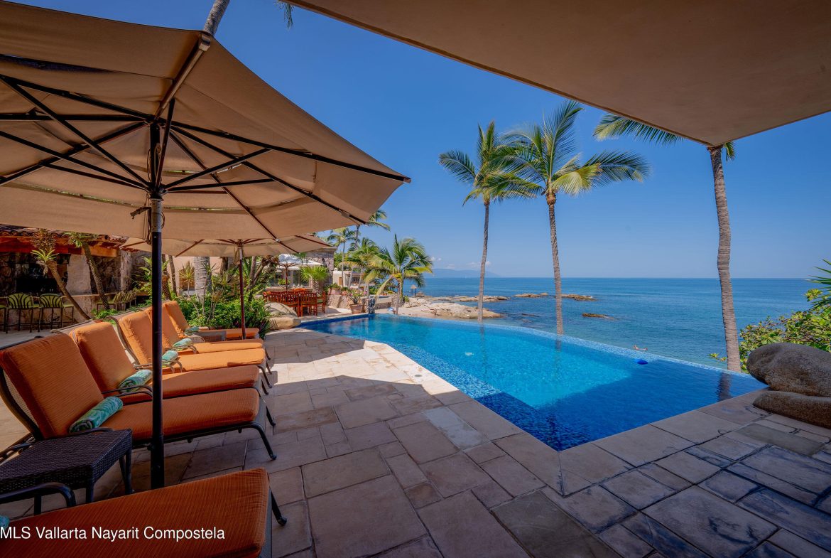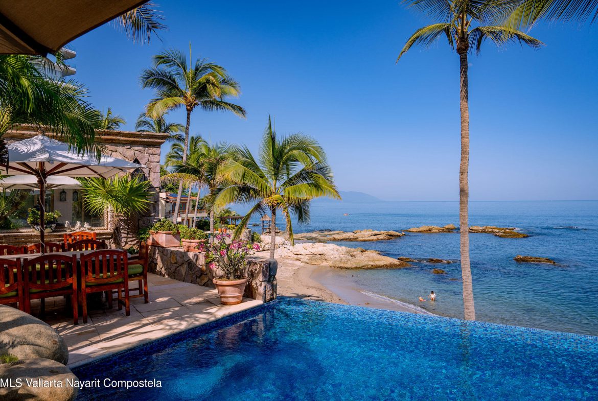 Villa Amapas I – North VillaPuerto Vallarta, Lower Conchas ChinasThere’s a version of Puerto Vallarta that people imagine when they first fall in love with the idea of it–and this is it. Villa Amapas I is the kind of home that has watched decades of golden sunsets slide into the Pacific. It’s perched just above the sand in Lower Conchas Chinas, close enough to town to walk, but far enough that the only sound at night is the surf below.Inside, the villa is layered with the kind of detail that doesn’t happen by accident. Vaulted red-tile roofs with exposed beams. Walls of warm stone. Niches tucked with sculpture. Murals. Arches. Ironwork. Peter Bowman, named one of Architectural Digest’s top 100 designers, left his signature in several corners!