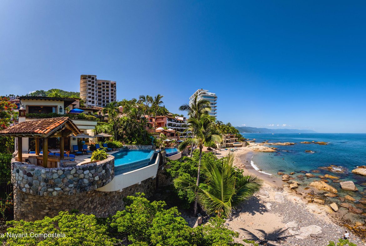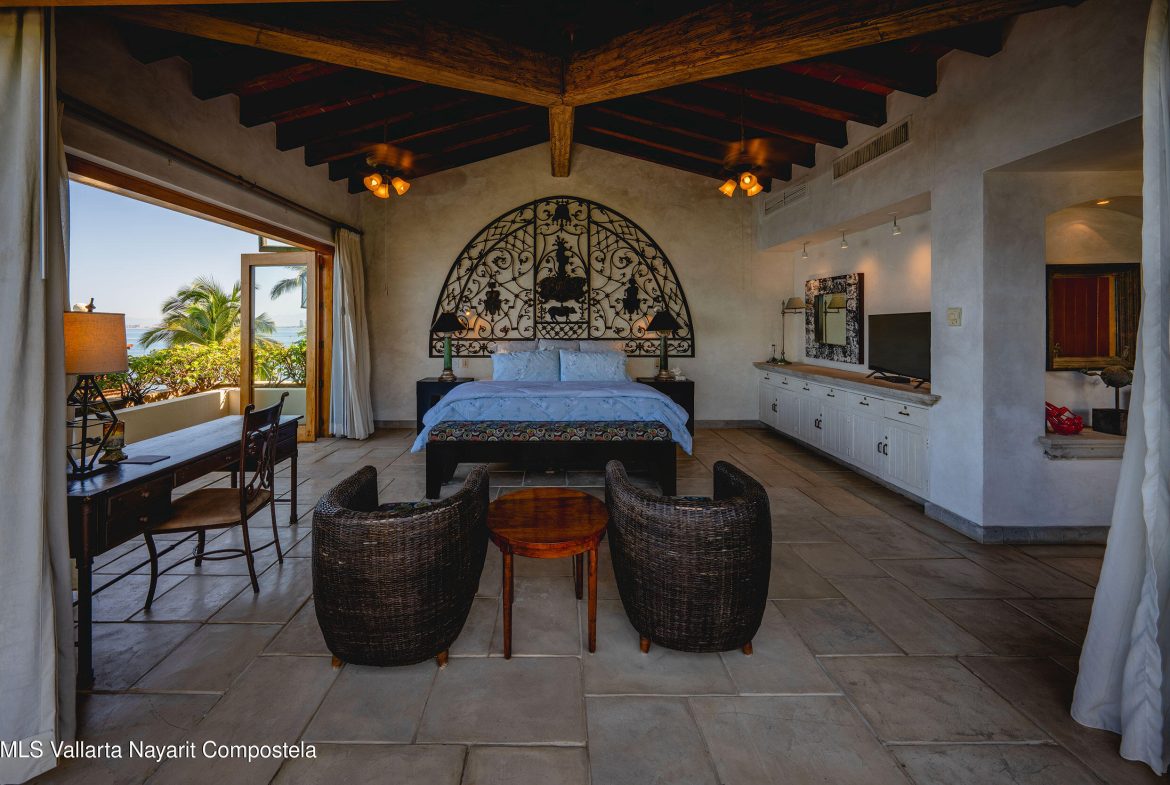 Villa Amapas II – South VillaBeachfront Comfort | Lower Conchas Chinas, Puerto VallartaWith a generous layout and a prime beachfront location, Villa Amapas II offers the kind of easy, indoor-outdoor living that defines classic Puerto Vallarta. Just a short walk from the Romantic Zone, the home stretches across nearly 7,000 square feet, with four oceanview suites, open-plan living areas, and a wide terrace that steps down to the sand.The interiors were finished by Peter Bowman, whose artistic touches bring warmth and personality to the home–original murals, playful sculpture, hand-painted tile, and thoughtfully placed color. It’s a relaxed, welcoming space, made for families, couples, and small groups.
