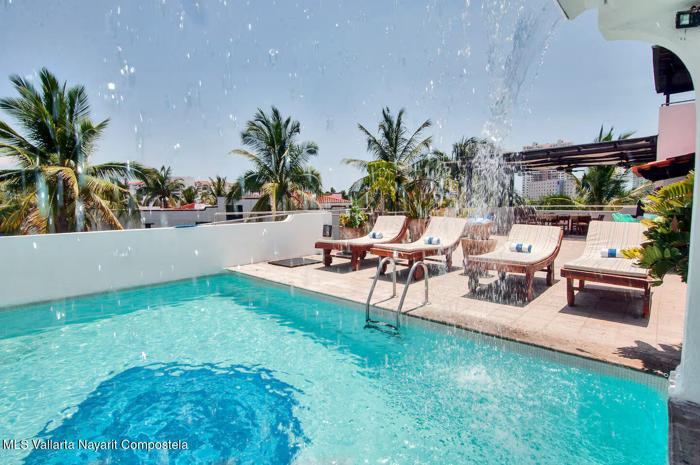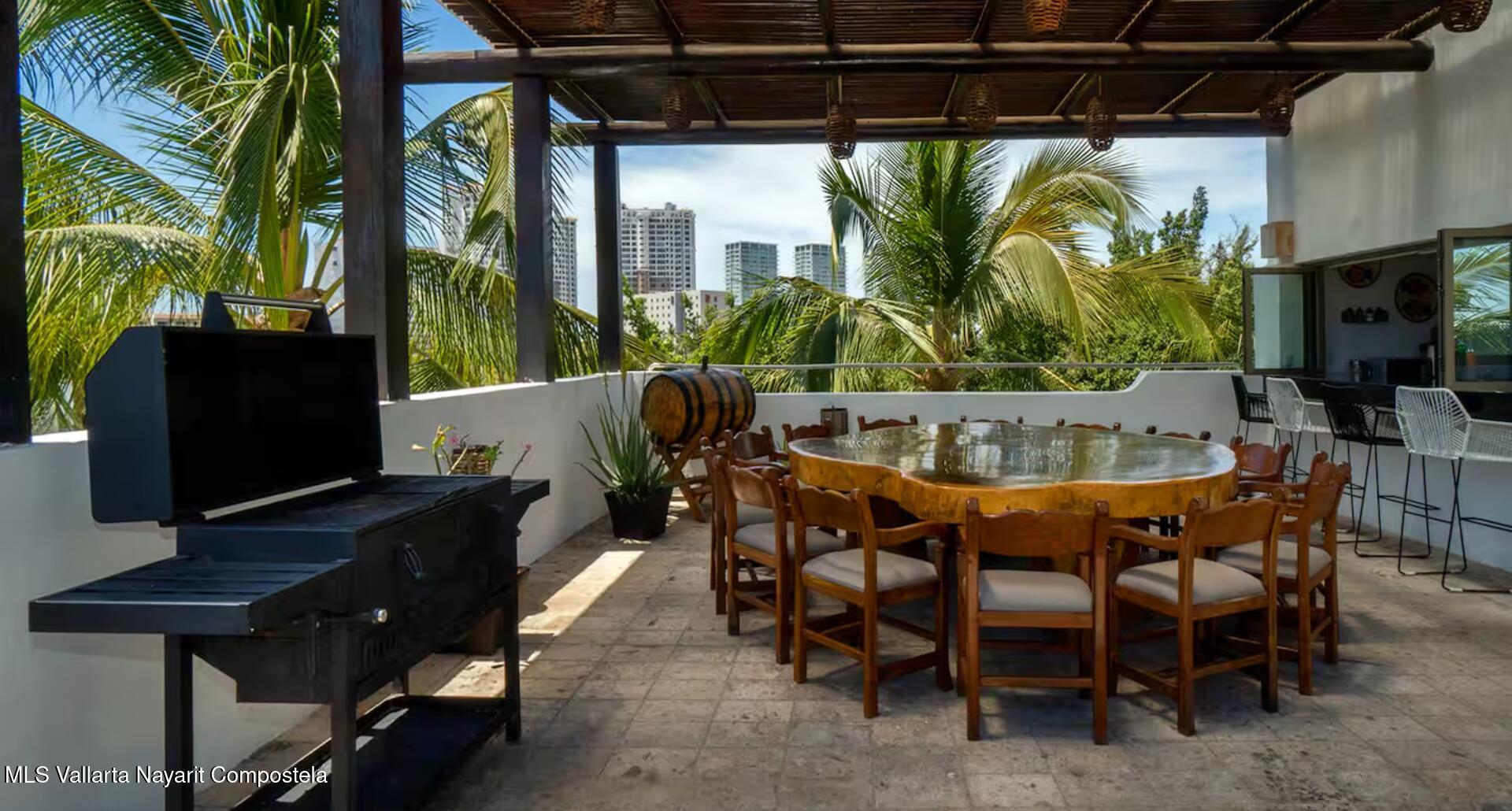 Spacious 7-bedroom, 7.5-bathroom villa in a gated community, just across from the boulevard and steps from the beach. It boasts over 650 m of construction (with 90m2 to be added at closing), 2 deeded parking spaces; located on fourth floor (no elevator) of a secure complex with 24/7 security, a public pool, and an on-site restaurant.It includes 2 large private terraces with shaded areas, private pool, a grill, an outdoor bar, and gorgeous mountain views. This high-potential investment property retains beautiful Mexican colonial details such as arches, a spiral staircase, and a brick dome. Each bedroom includes a full bathroom.Currently operating as an Airbnb with steady income and professional manager, the new owner can generate income from day one.Espanol abaho.