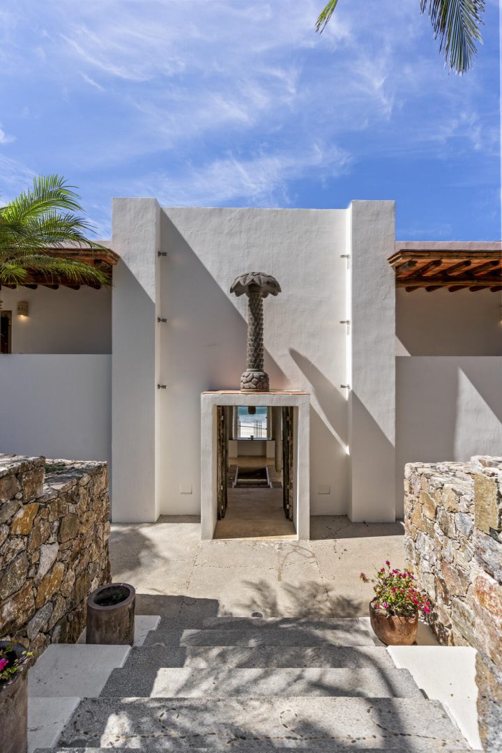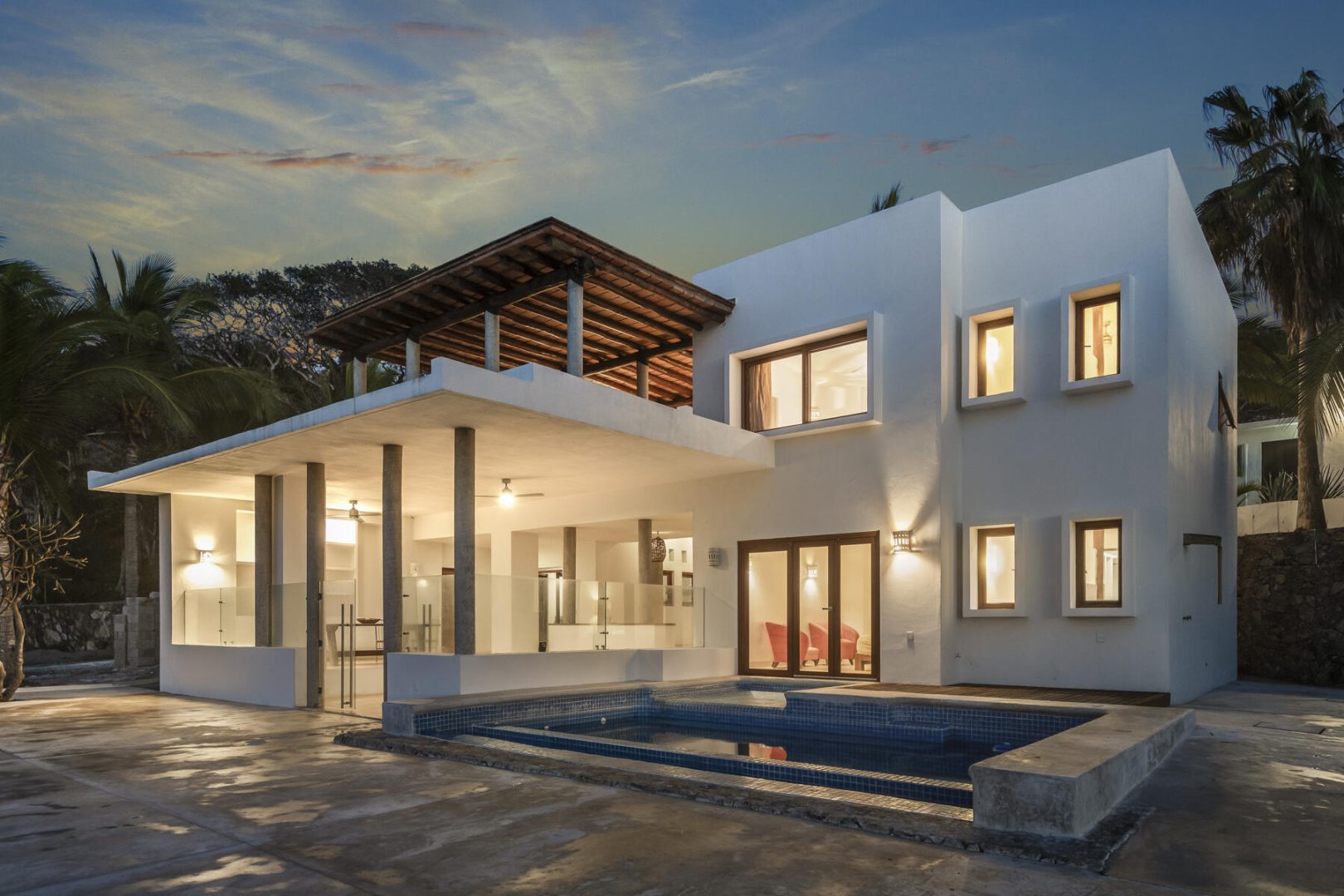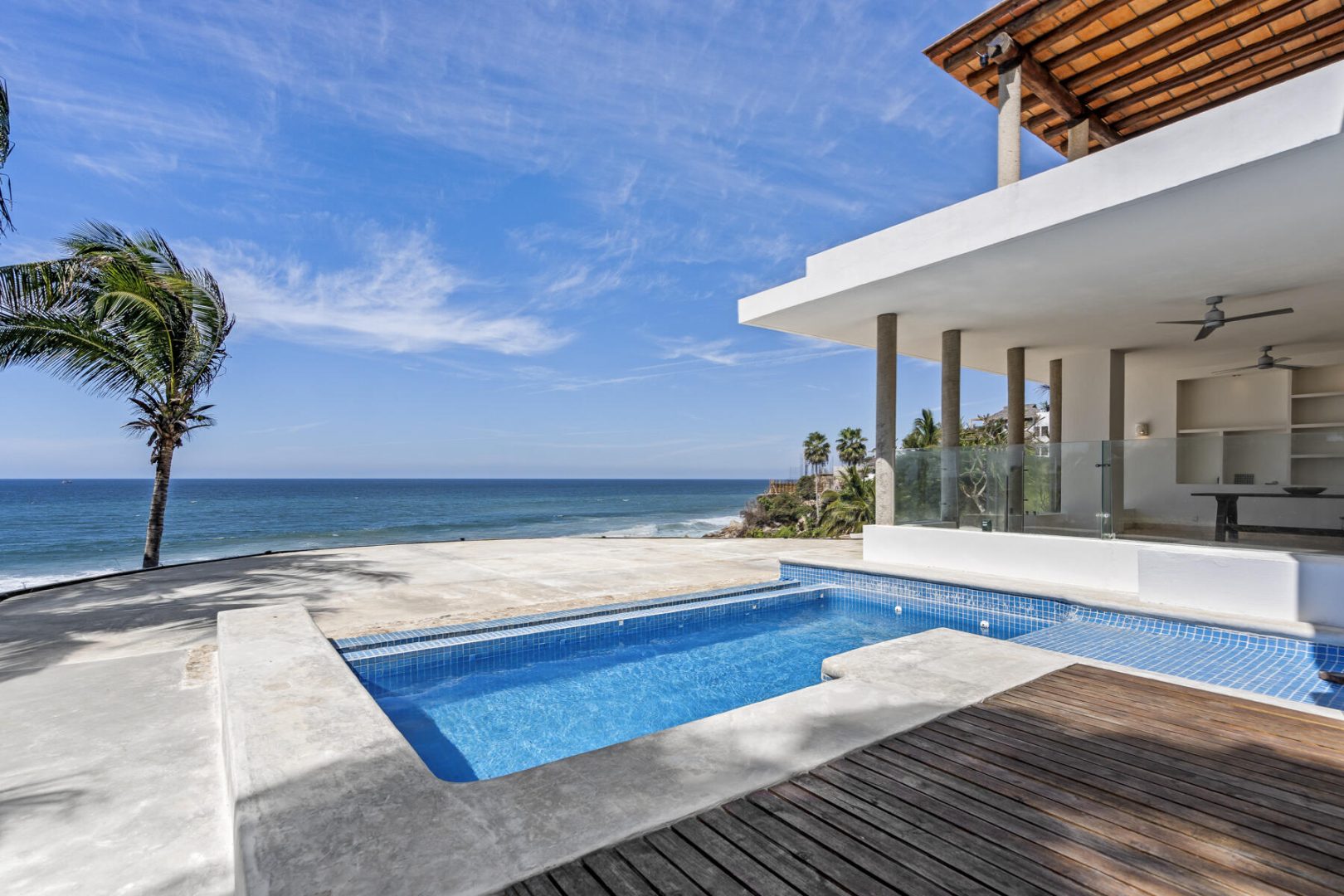 (English below) Villa Cormoran se encuentra ubicada en una maravillosa locacion en primera linea de playa. La arquitectura de la casa resulta muy interesante, con proyecto que evoca un aire mexicano- colonial, a la vez muy contemporaneo, que ofrece una sensacion de apertura al oceano pacifico e integrado al bello entorno natural.La ubicacion y disposicion de la planta han sido disenadas para evitar el calor, aprovechando los vientos alisios, con maravillosas vistas. La terraza mas cercana al mar, se encuentra asentada sobre un acantilado donde se puede gozar todos los dias de un espectaculo de gaviotas que sobrevuelan la orilla de una pequena playa privada.La propiedad cuenta con tres lotes unificados que dan un total de mas de 3,000 metros