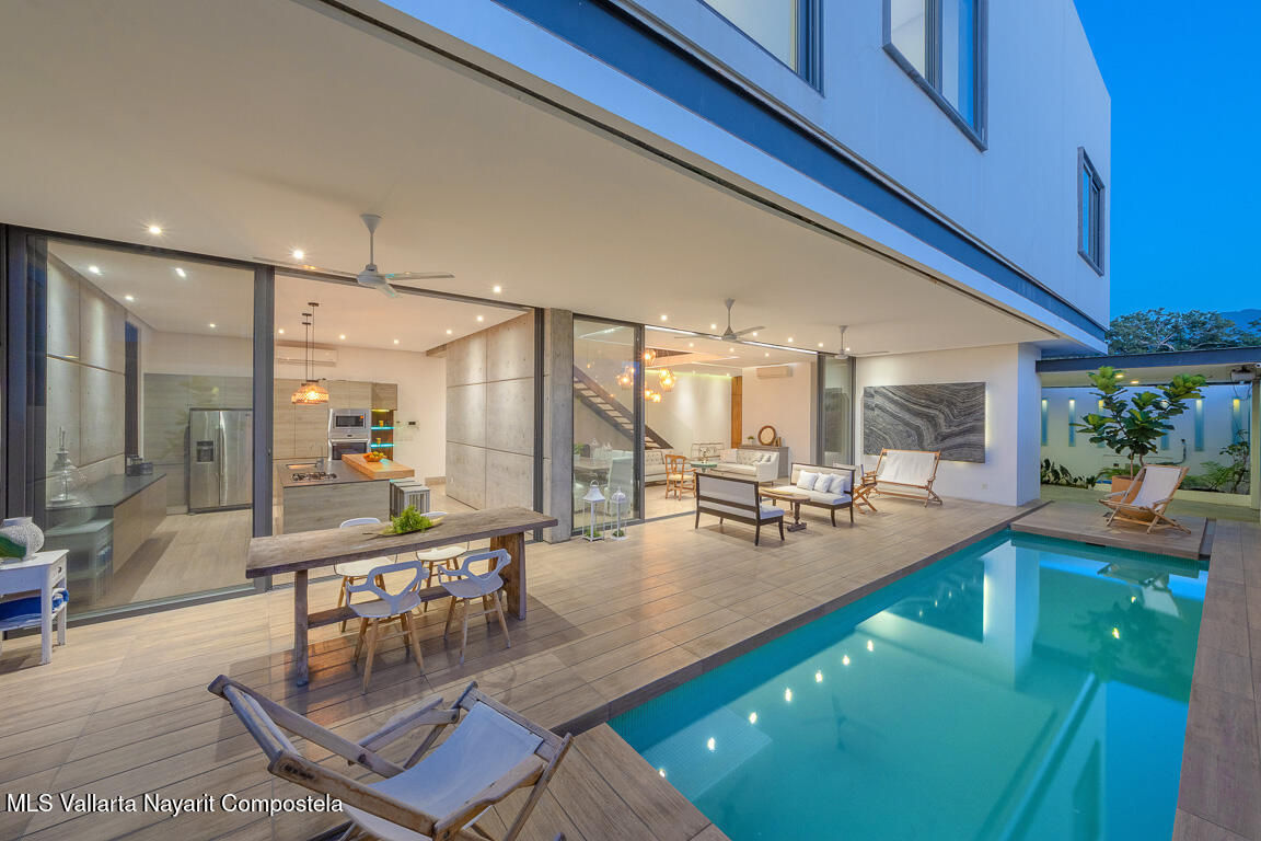 Villa Ensueno, a large beautiful 5 bedroom, 5.5 bath family home located in a quiet residential side street in Fluvial Vallarta. Gorgeous details and high-end finishes throughout including wide entry hall, spacious dinning/living inside and outdoor terrace/pool areas, one bedroom and full bath in the first level. Very modern and fully equipped kitchen and covered garage. Enjoy all touches of sophisticated luxury in a comfortable family setting.