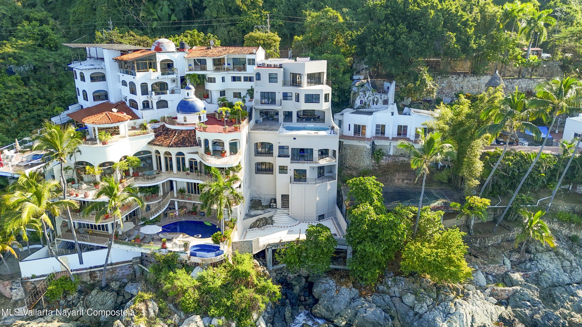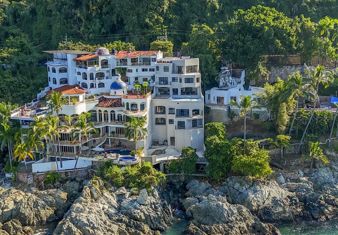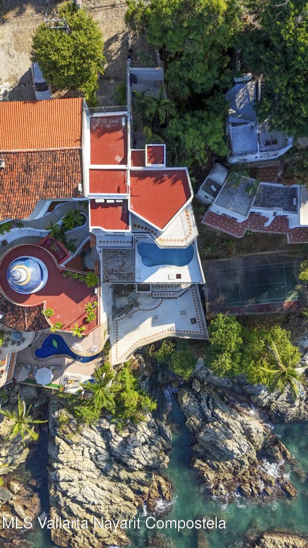 Espectacular villa frente al mar en Conchas Chinas, Villa Entre Rocas es una casa de 446.53 m, cuenta con 7 recamaras, 9 banos y piscina frente al mar. La villa cuenta con recamaras con bano privado, vistas a la bahia, ascensor, estacionamiento y sala de juegos en la mejor zona residencial.