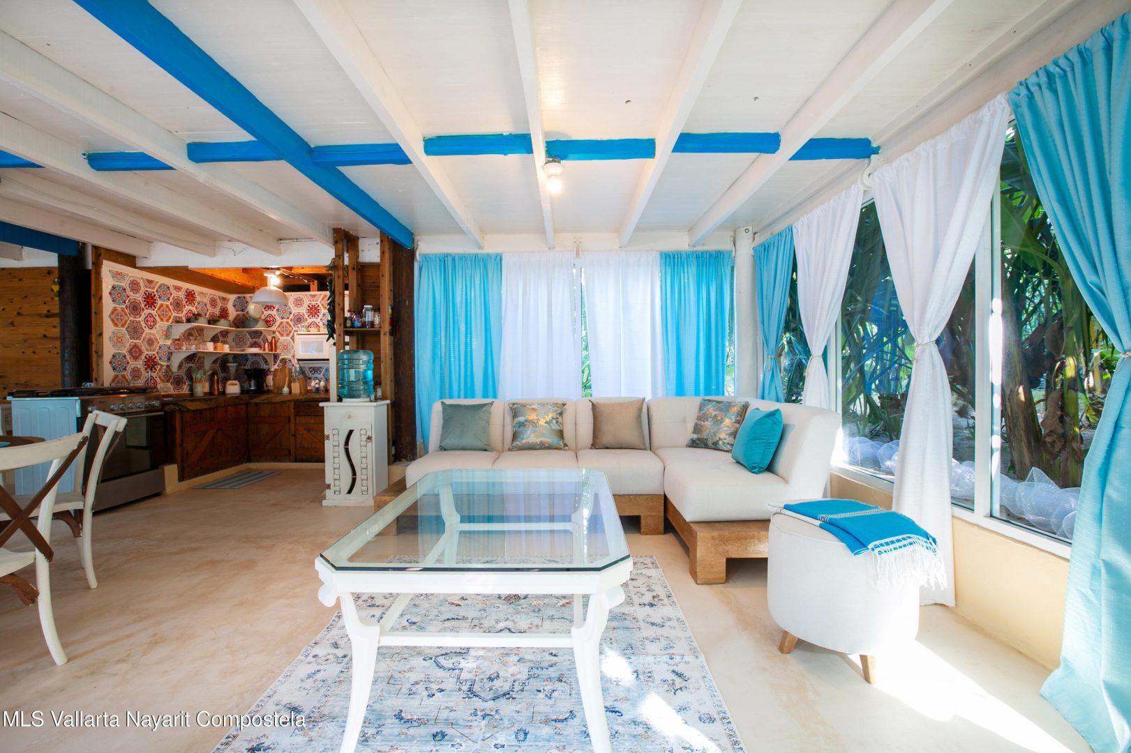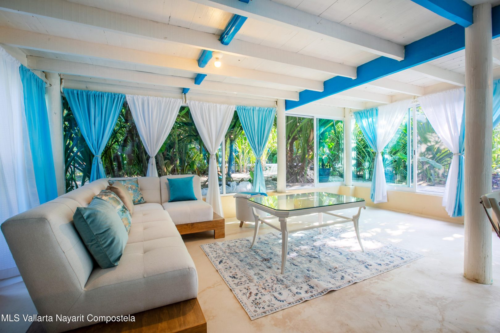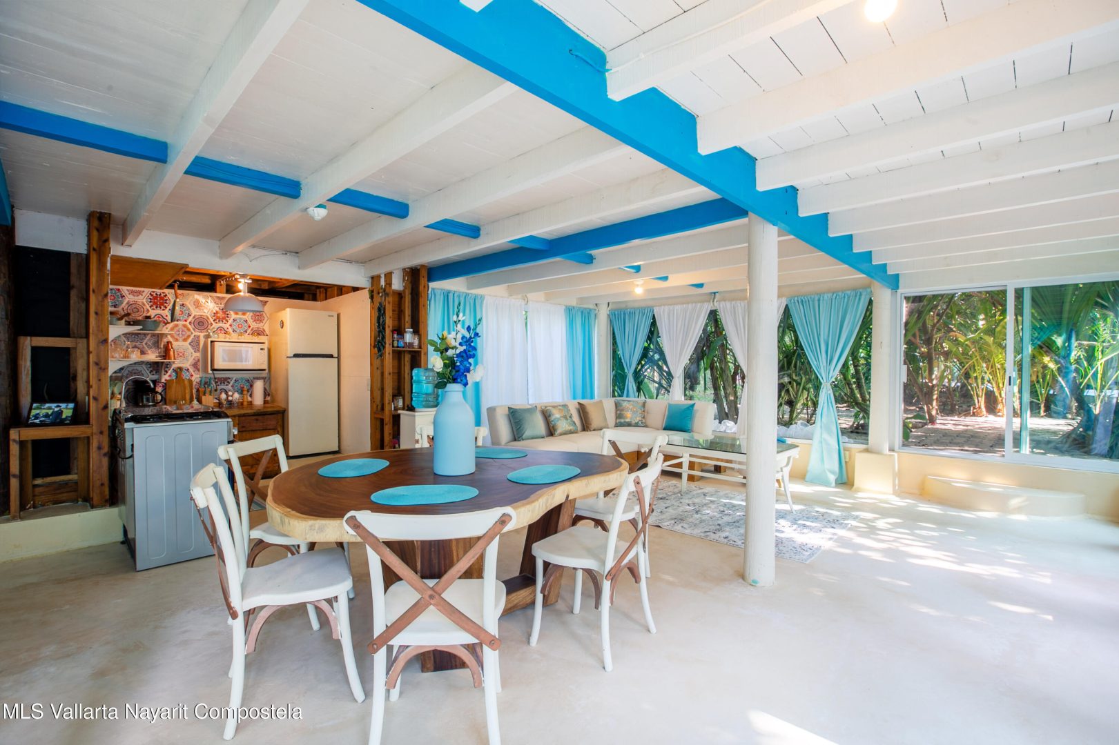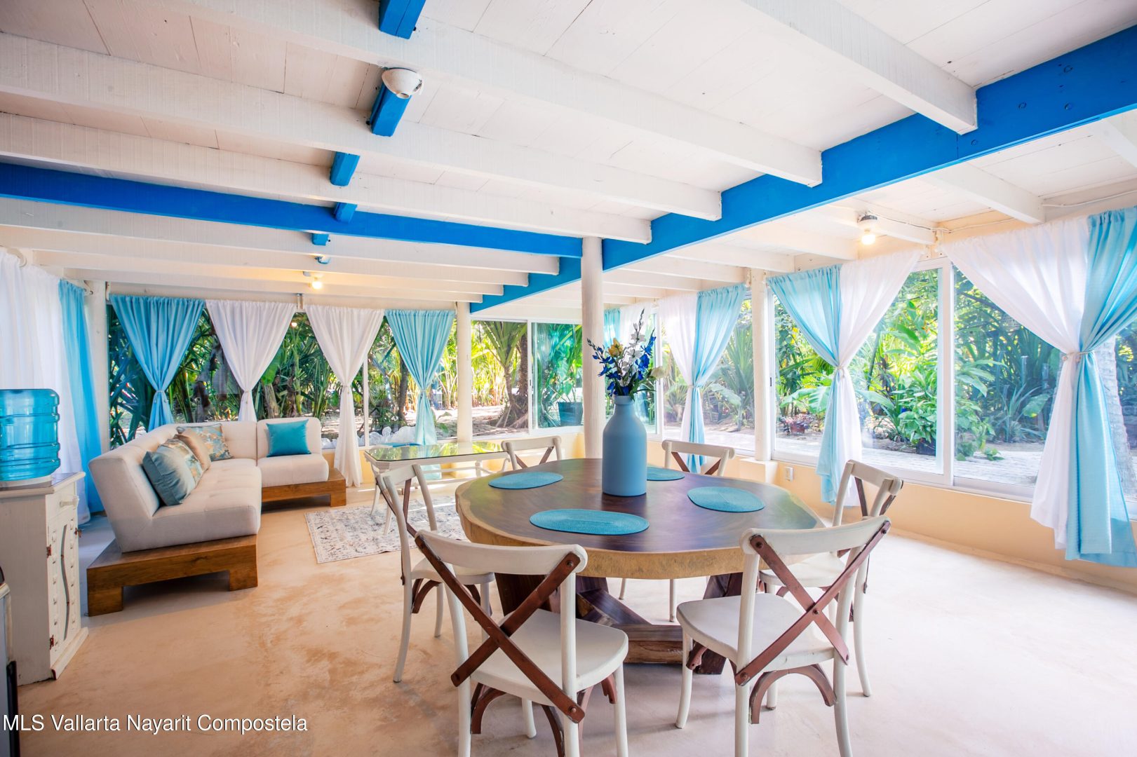 Nestled amidst lush tropical vegetation, Villa Entre Palmeras is a sanctuary of tranquility and refined design. This two-story retreat invites you to experience the perfect harmony of natural beauty and cultural sophistication inside the Amanpur Eco Living gated community, in the beach town of Barra de Navidad. Built on a generous 440 sq meter lot–more than double the size of the average homes in the area–this villa offers ample space and privacy Ground Floor: Open EleganceStep into an open-layout space where every detail whispers serenity. The living room, kitchen, dining area, and an inviting open bedroom are seamlessly connected, all adorned with white wood and fine blue accents that echo the charm of Greece.