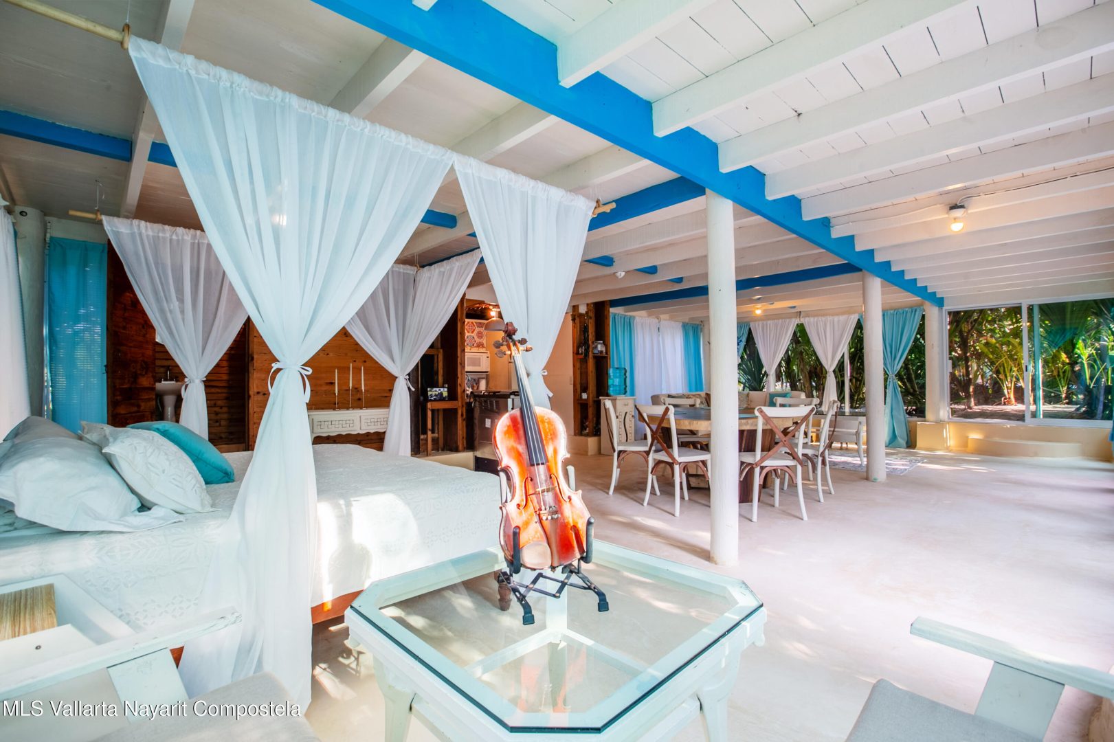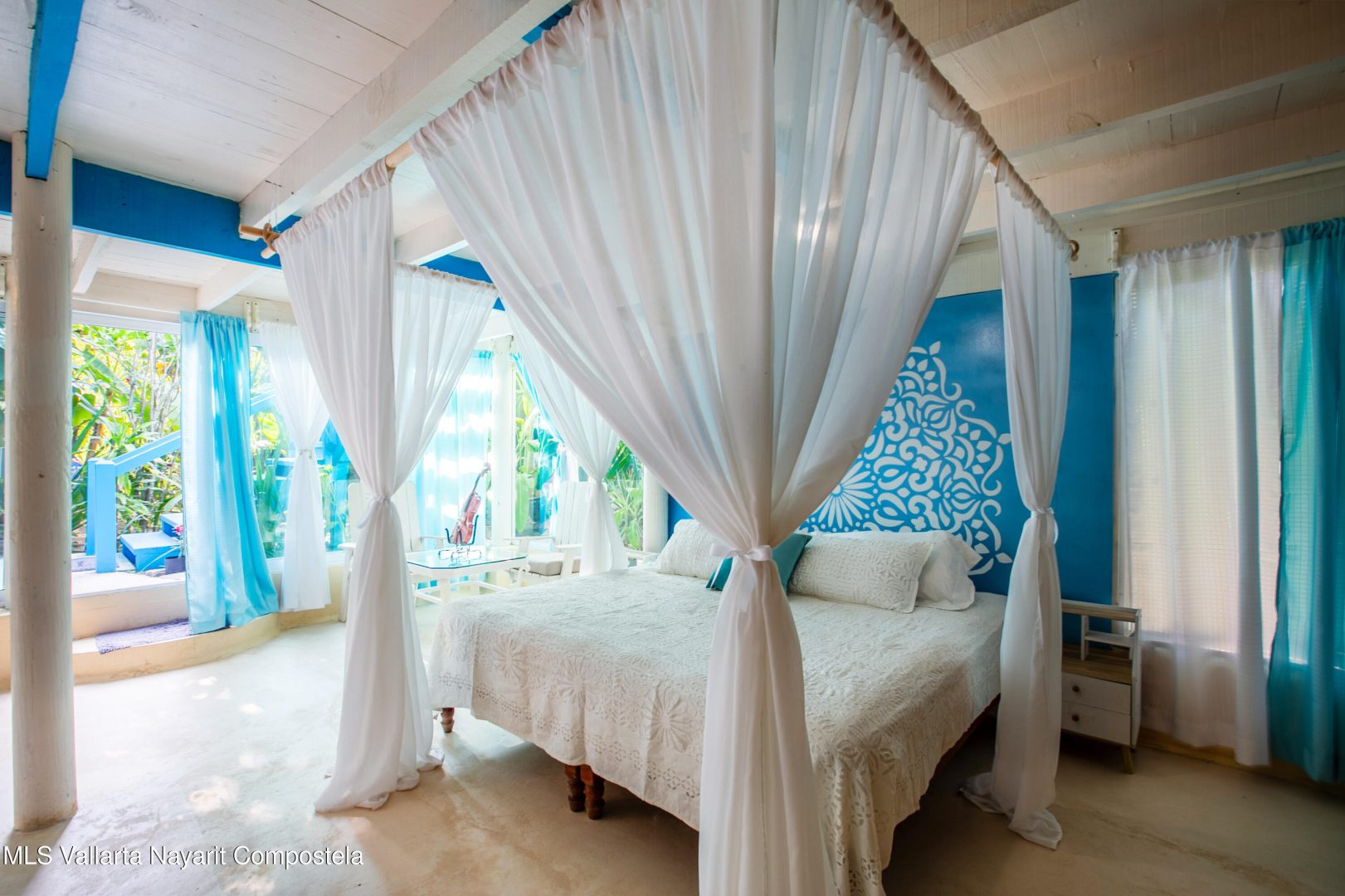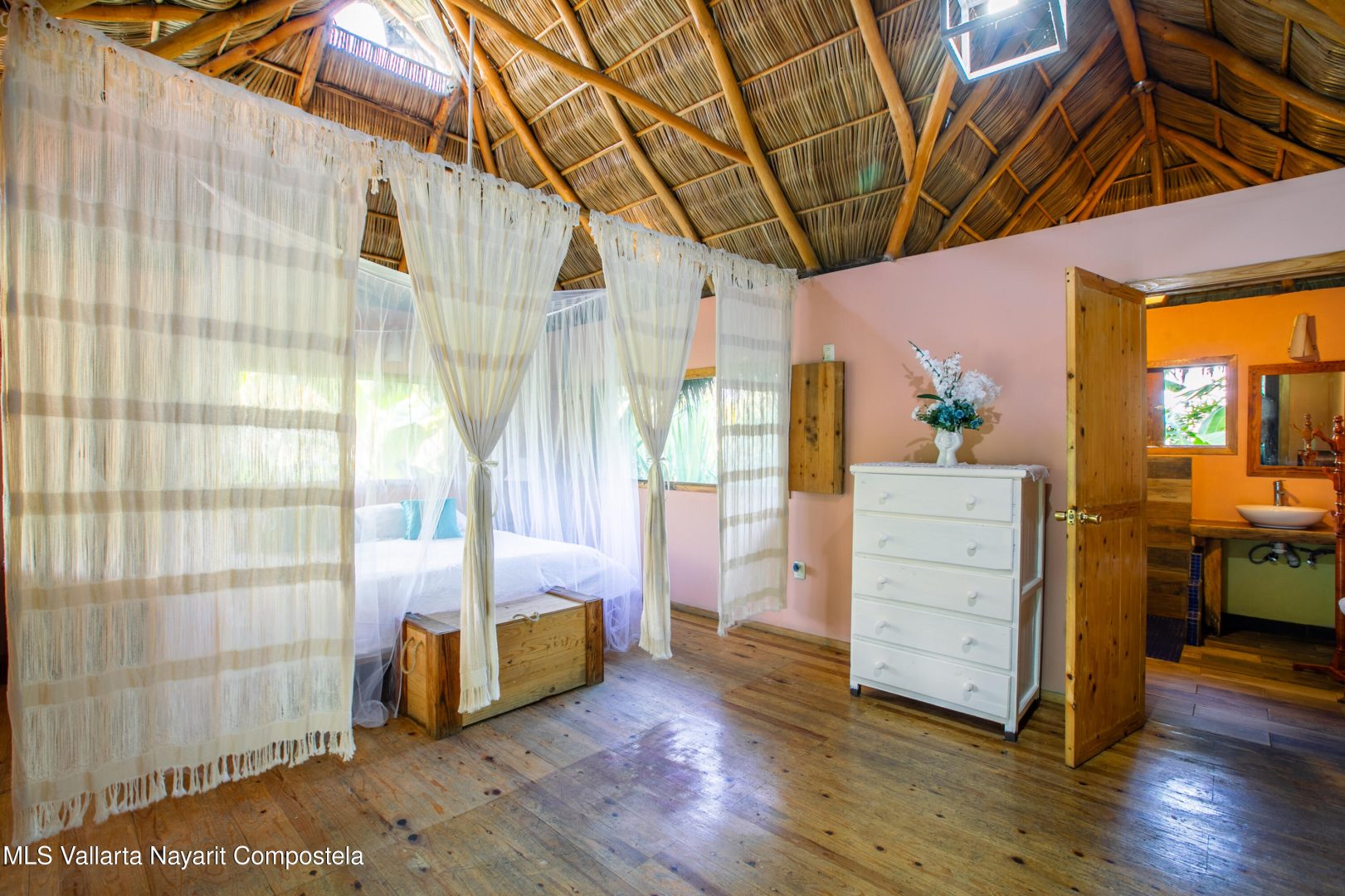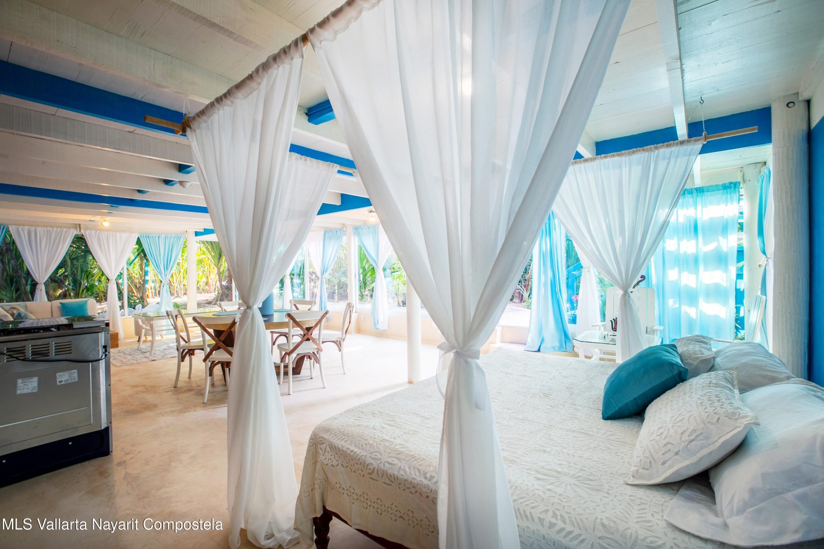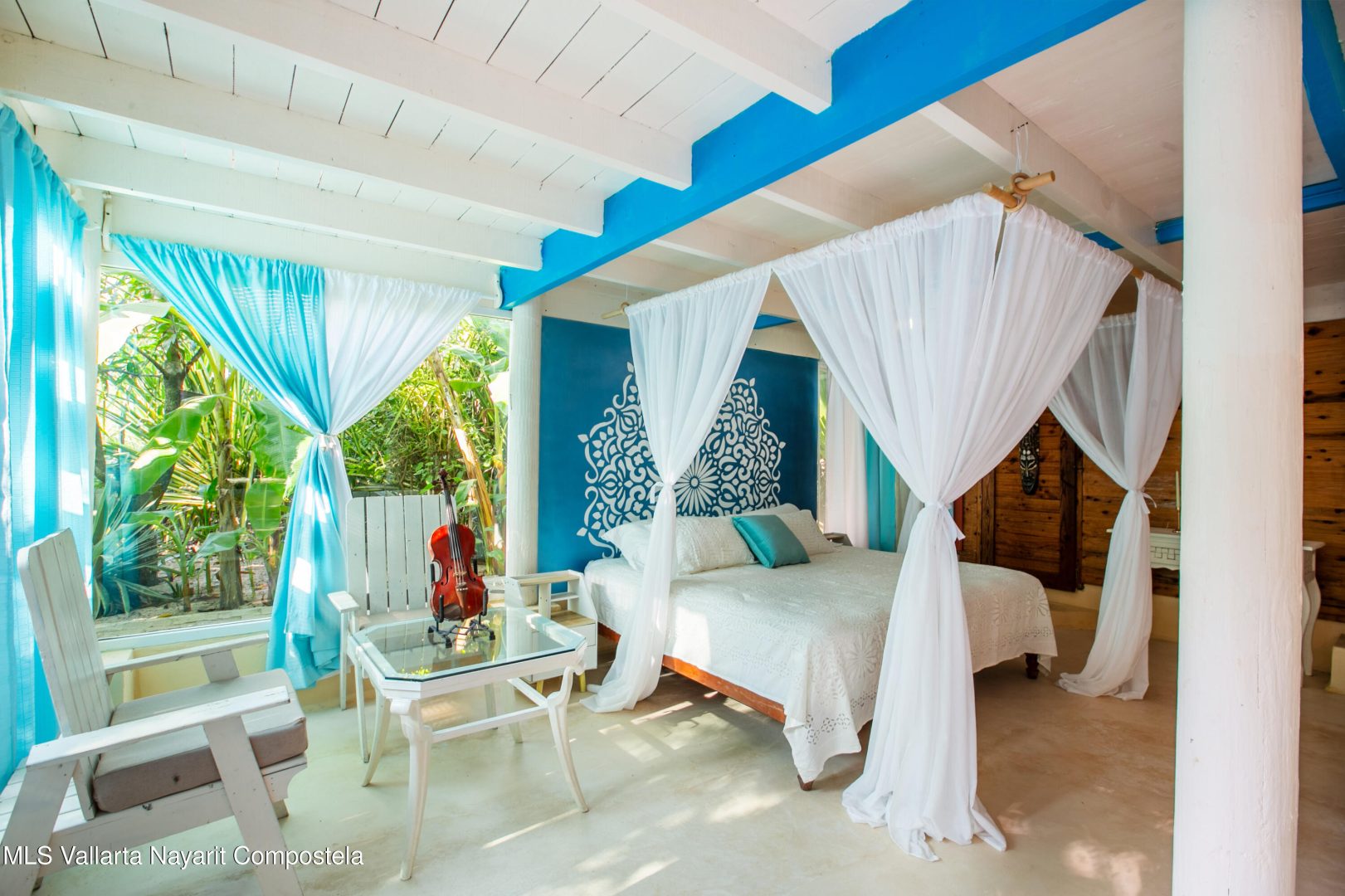 Nestled amidst lush tropical vegetation, Villa Entre Palmeras is a sanctuary of tranquility and refined design. This two-story retreat invites you to experience the perfect harmony of natural beauty and cultural sophistication inside the Amanpur Eco Living gated community, in the beach town of Barra de Navidad. Built on a generous 440 sq meter lot–more than double the size of the average homes in the area–this villa offers ample space and privacy Ground Floor: Open EleganceStep into an open-layout space where every detail whispers serenity. The living room, kitchen, dining area, and an inviting open bedroom are seamlessly connected, all adorned with white wood and fine blue accents that echo the charm of Greece.