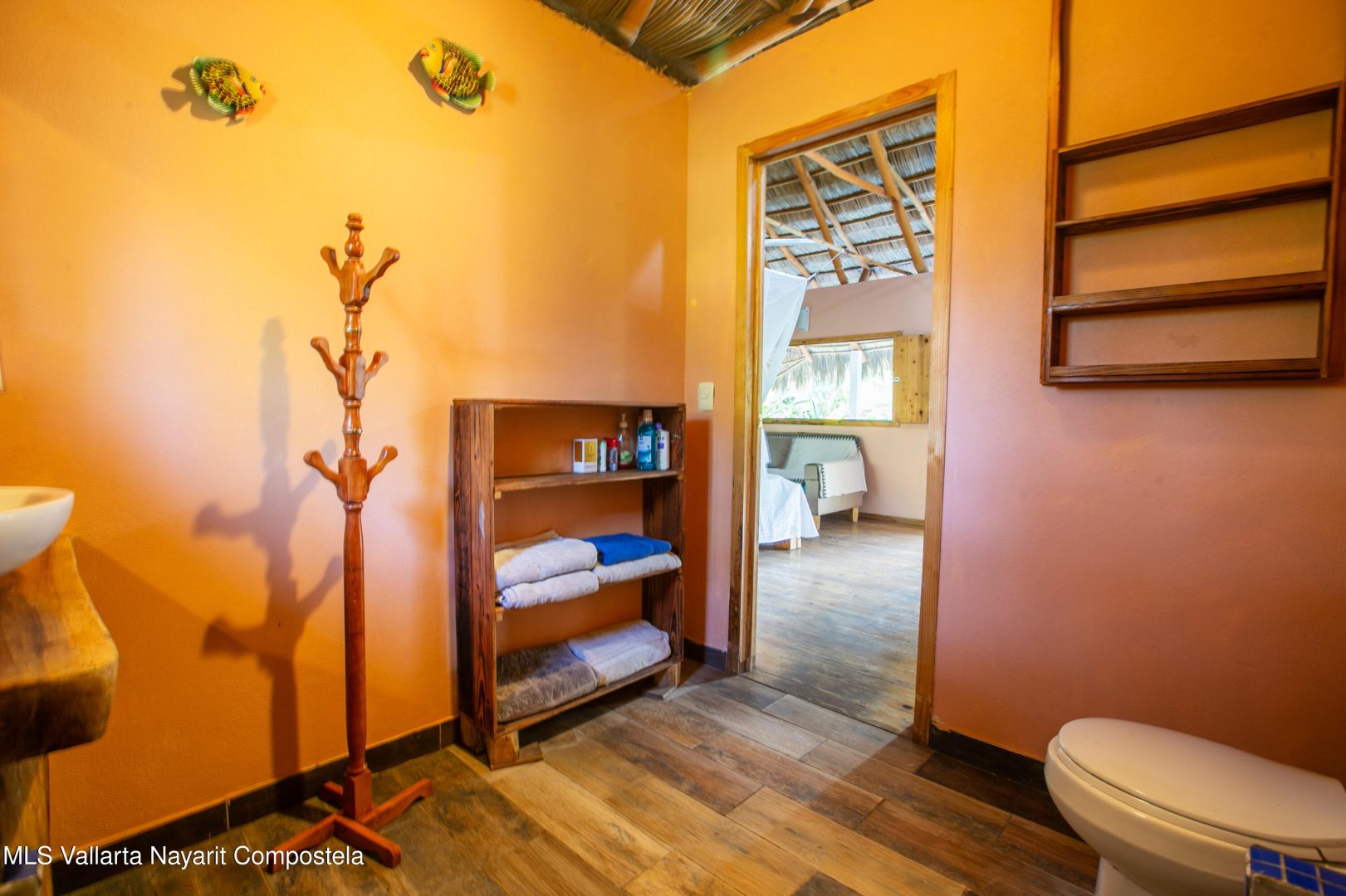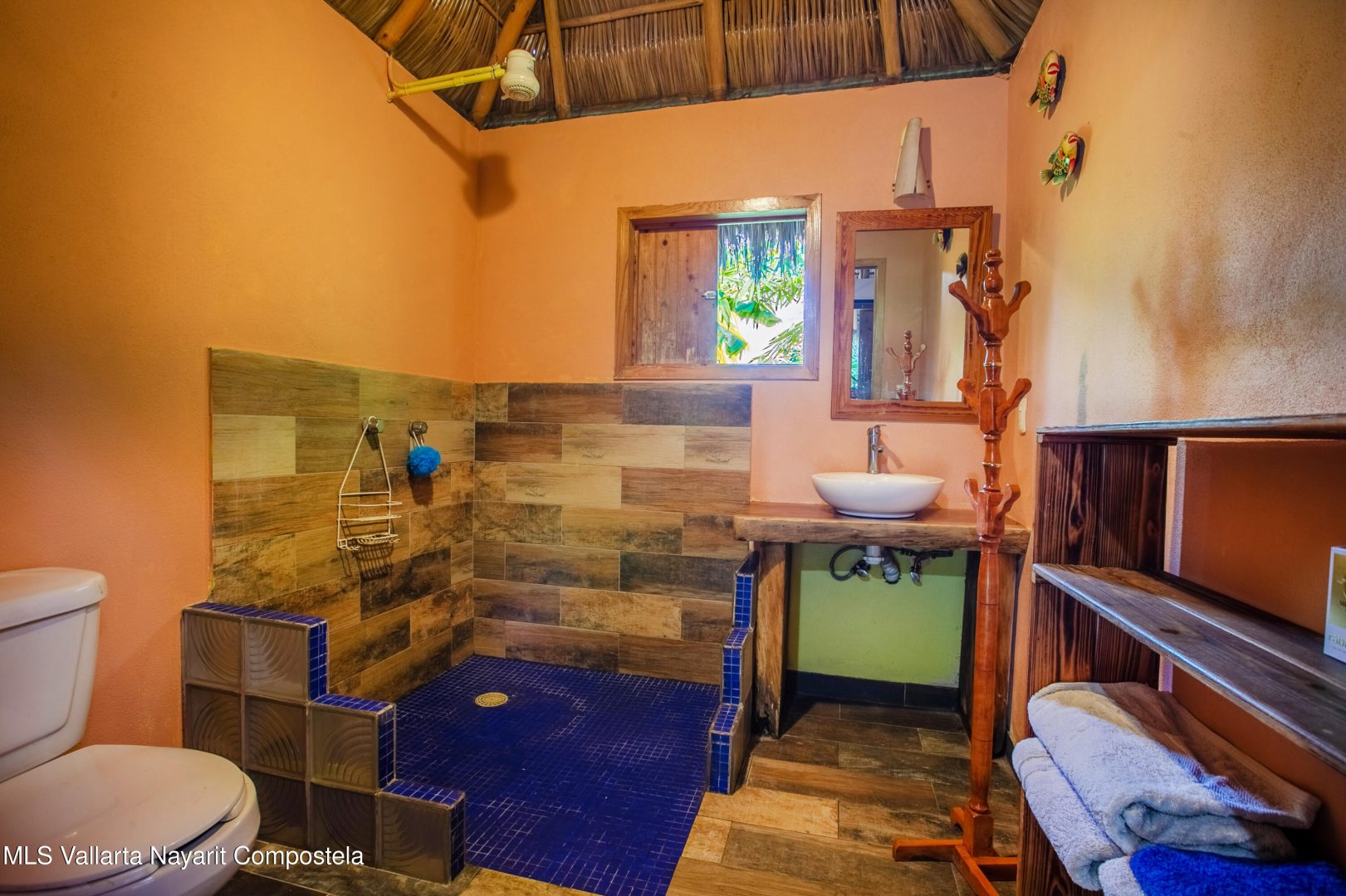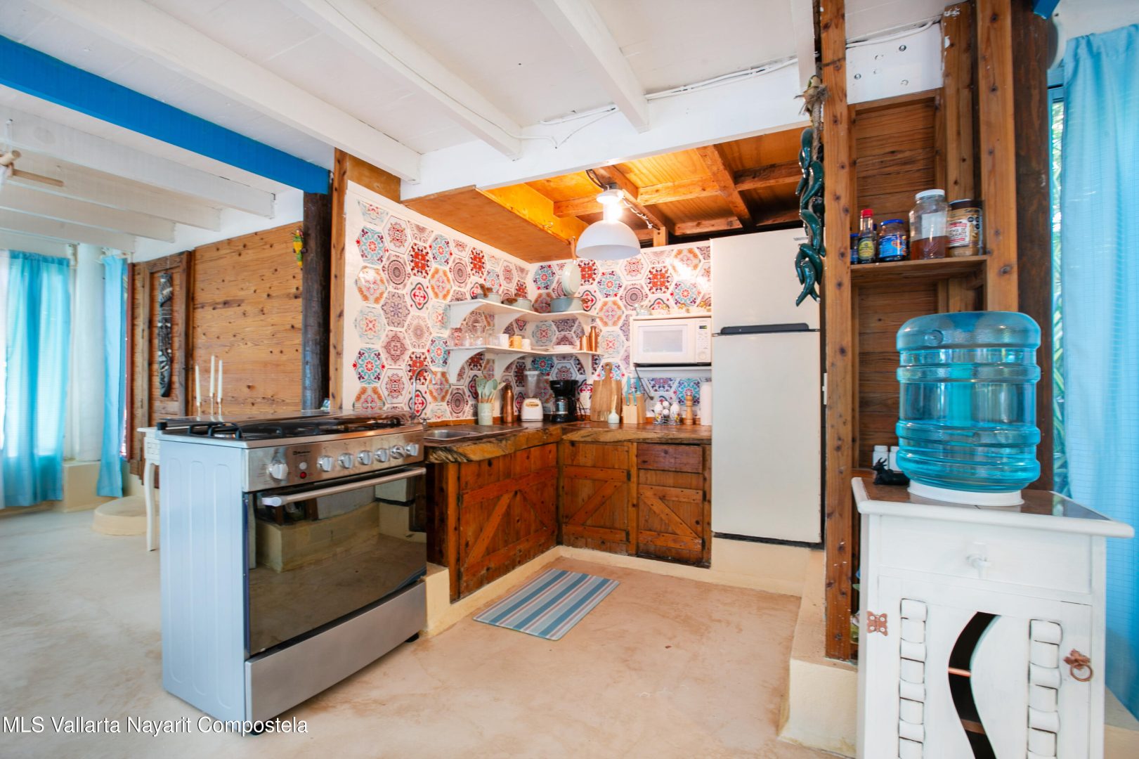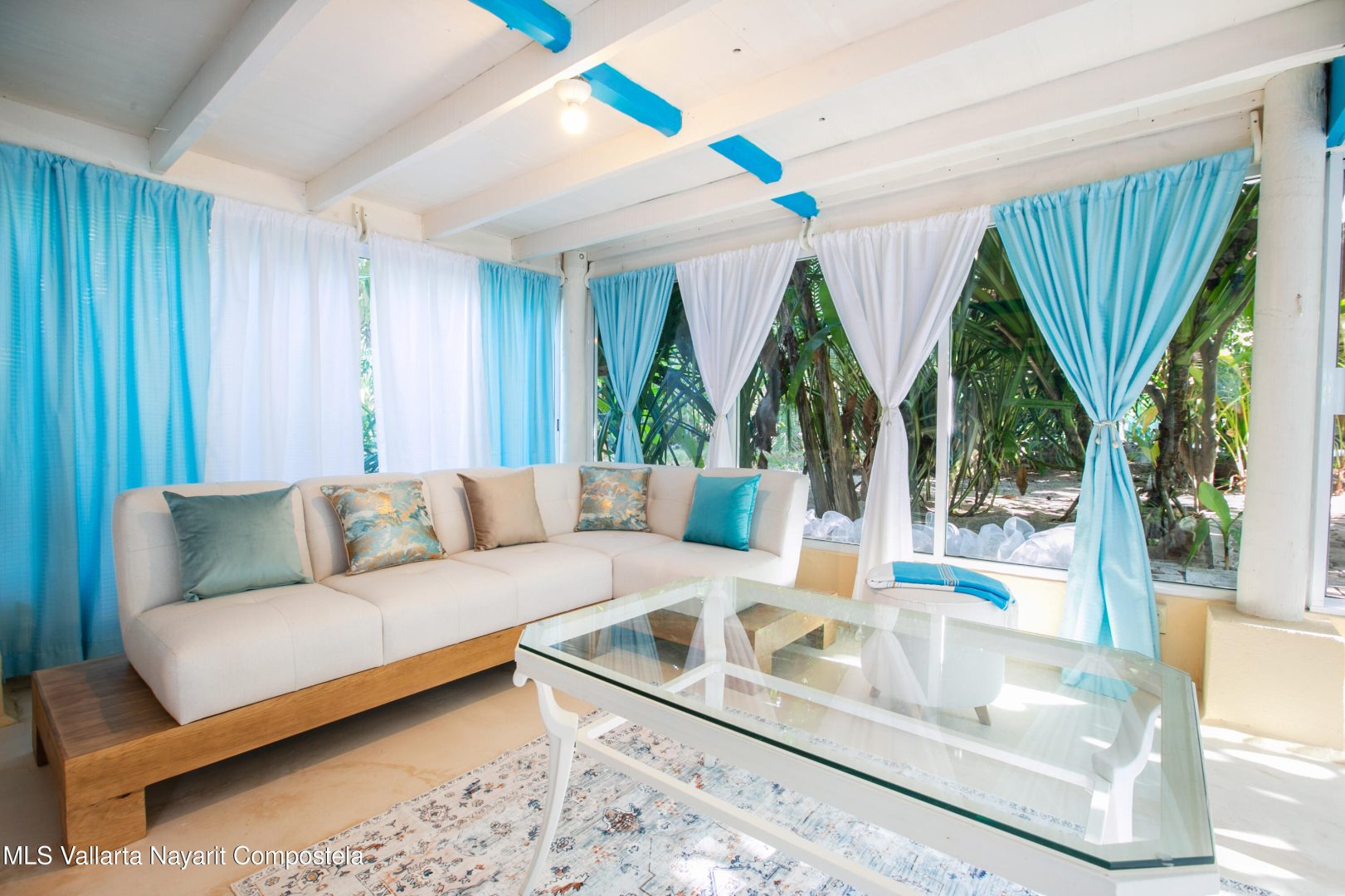 Nestled amidst lush tropical vegetation, Villa Entre Palmeras is a sanctuary of tranquility and refined design. This two-story retreat invites you to experience the perfect harmony of natural beauty and cultural sophistication inside the Amanpur Eco Living gated community, in the beach town of Barra de Navidad. Built on a generous 440 sq meter lot–more than double the size of the average homes in the area–this villa offers ample space and privacy Ground Floor: Open EleganceStep into an open-layout space where every detail whispers serenity. The living room, kitchen, dining area, and an inviting open bedroom are seamlessly connected, all adorned with white wood and fine blue accents that echo the charm of Greece.